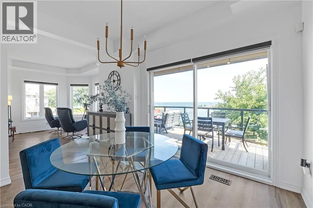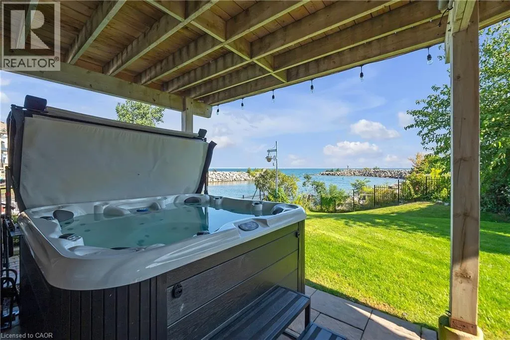 Wake up to uninterrupted views of the marina and Lake Ontario. This executive waterfront end-unit townhome at Newport Yacht Club is now available for lease, offering a rare opportunity to enjoy luxury lakeside living without the commitment of ownership. With panoramic water views from every level, this beautifully renovated home is designed for both comfort and entertaining. The open-concept kitchen flows seamlessly into the living area, complete with a built-in 65-inch TV, creating an inviting space to relax or host guests. Step out onto the expansive glass terrace off the kitchen and enjoy outdoor dining with Lake Ontario as your backdrop. Upstairs, youâll find a dedicated office space and three bright, spacious bedrooms. The primary suite features its own private balcony and a spa-inspired 5-piece ensuite â perfect for peaceful mornings or sunset evenings overlooking the water. The fully finished walkout lower level opens to a second private terrace with a hot tub, where you can unwind while taking in serene marina views and local wildlife. As a resident, you have the opportunity to join the Newport Yacht Club, providing access to social events, a private boardwalk, and direct water access for kayaking or paddle-boarding right from your backyard. Experience resort-style waterfront living in one of the areaâs most coveted communities. (id:27476)