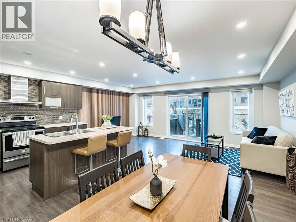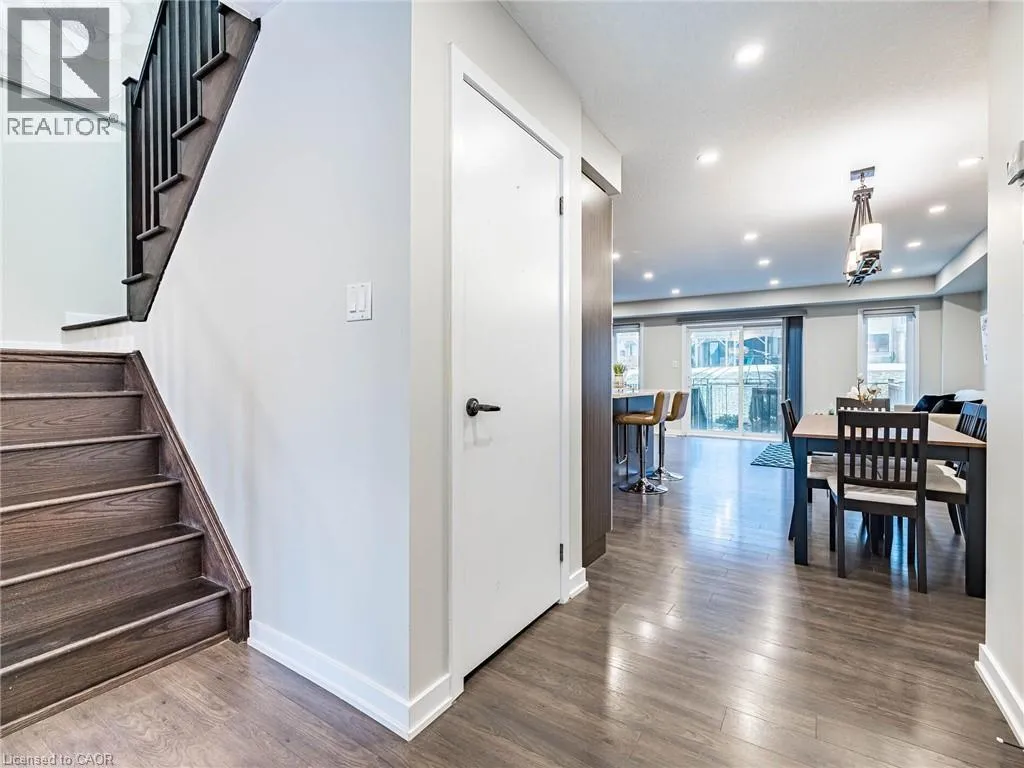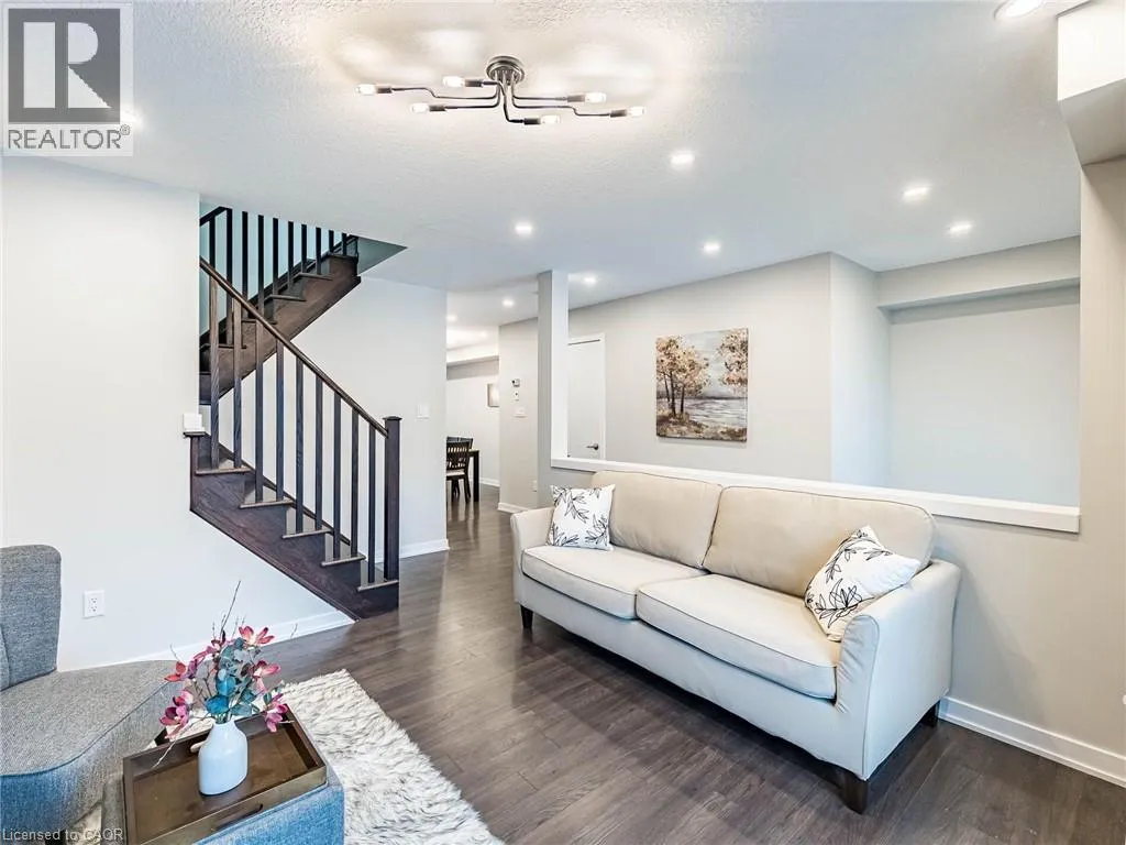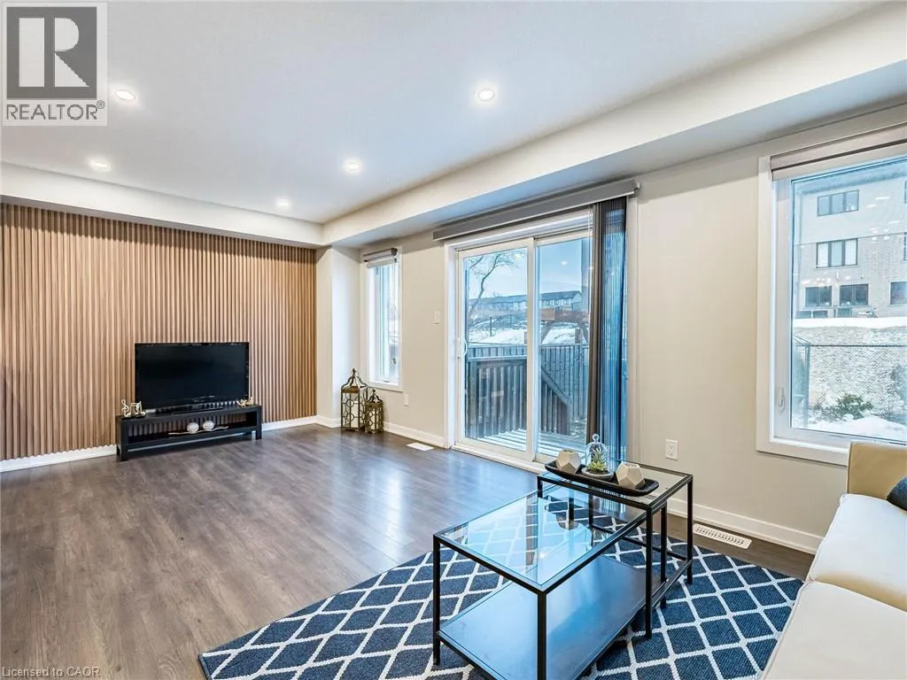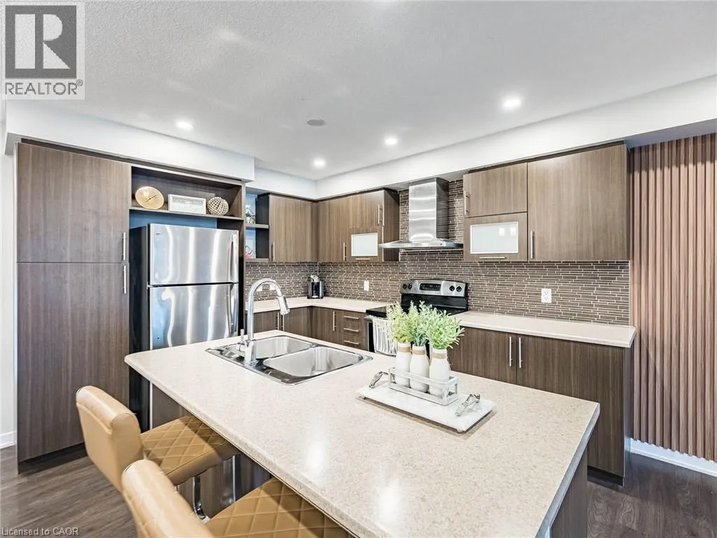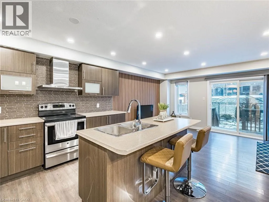 Spectacular this exquisite Freehold Townhouse, crafted by Empire Homes, is nestled in the prestigious Stoney Creek community. Spanning 1744 sqft, this stunning residence boasts 9' ceilings, 3 generously-sized bedrooms, and 3 elegant bathrooms. Step inside and be captivated by the inviting open-concept layout adorned with gleaming hardwood floors on the main level and laminate on the first floor. The spacious family/living room seamlessly flows into a sunlit, upgraded contemporary kitchen featuring stainless steel appliances, an oversized breakfast island, and direct access to a beautifully tiled patio with a gazebo perfect for entertaining guests. The master suite is your personal retreat, offering a spacious walk-in closet and a private ensuite. Enjoy the convenience of bedroom-level laundry and the elegance of upgraded light fixtures throughout. The unfinished basement offers limitless potential for future expansion. Outside, the backyard is ideal for hosting BBQs and outdoor gatherings. The water heater is owned, not rented, adding to the home's convenience and peace of mind. This home is perfectly located near major highways, schools, shopping destinations, the Go Station, golf courses, and more. Plus, it backs onto beautiful trails and waterfalls, providing a serene backdrop for relaxation and outdoor activities. Show with confidence ! (id:27476)
