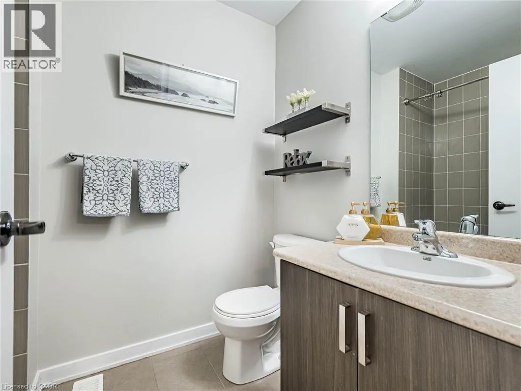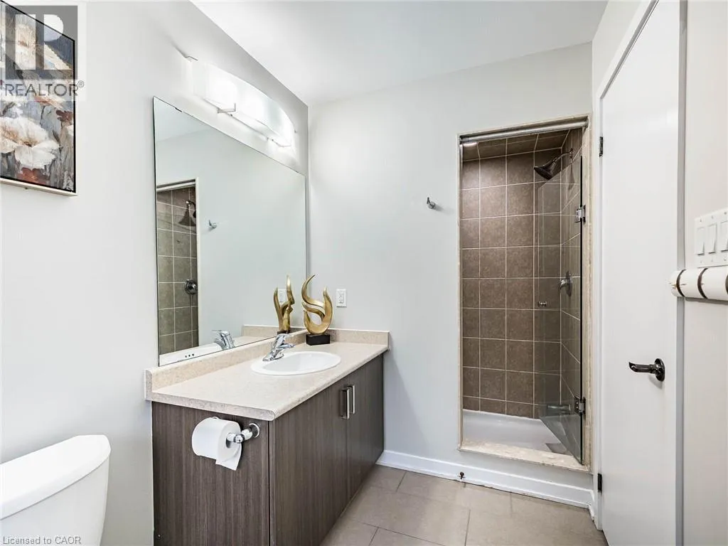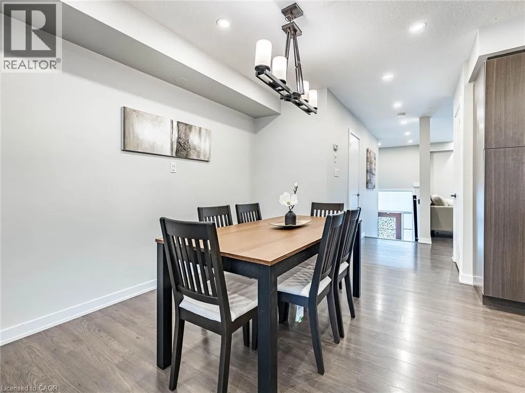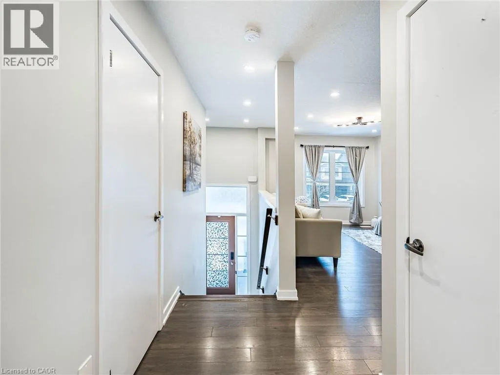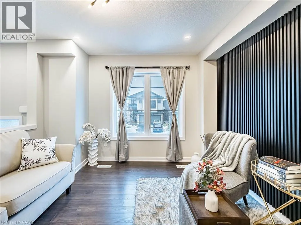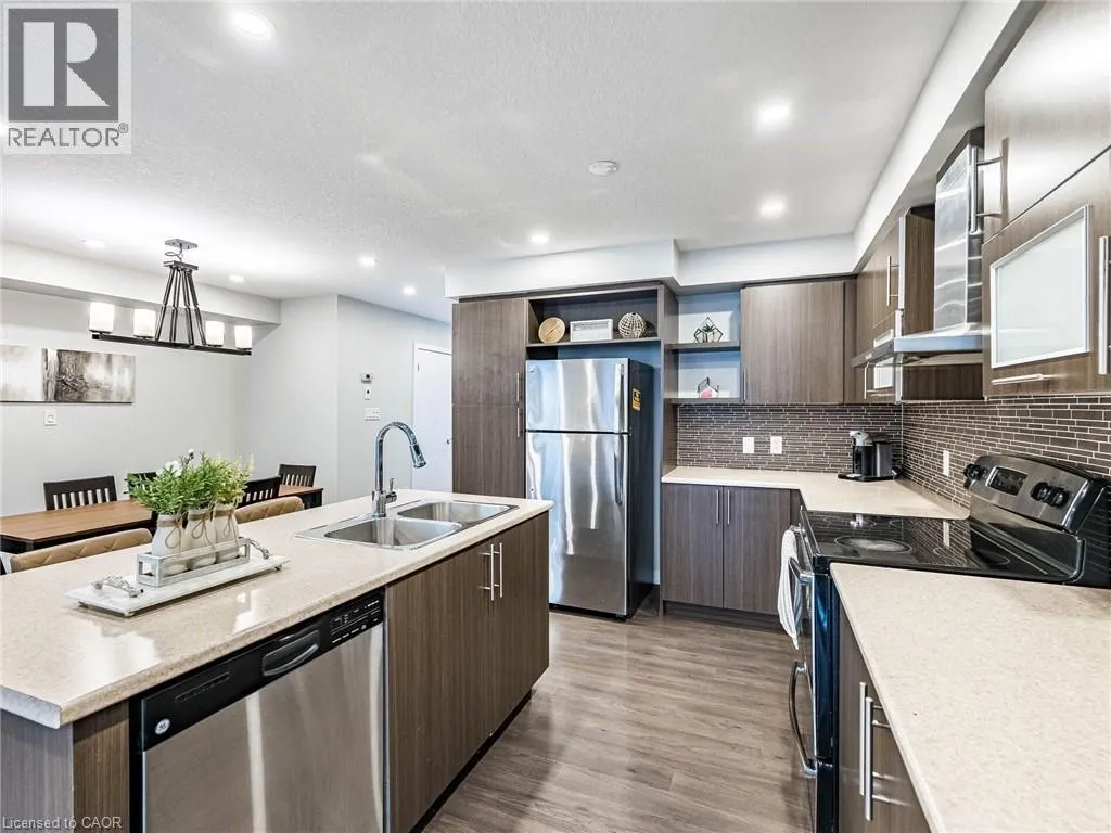 Spectacular this exquisite Freehold Townhouse, crafted by Empire Homes, is nestled in the prestigious Stoney Creek community. Spanning 1744 sqft, this stunning residence boasts 9' ceilings, 3 generously-sized bedrooms, and 3 elegant bathrooms. Step inside and be captivated by the inviting open-concept layout adorned with gleaming hardwood floors on the main level and laminate on the first floor. The spacious family/living room seamlessly flows into a sunlit, upgraded contemporary kitchen featuring stainless steel appliances, an oversized breakfast island, and direct access to a beautifully tiled patio with a gazebo perfect for entertaining guests. The master suite is your personal retreat, offering a spacious walk-in closet and a private ensuite. Enjoy the convenience of bedroom-level laundry and the elegance of upgraded light fixtures throughout. The unfinished basement offers limitless potential for future expansion. Outside, the backyard is ideal for hosting BBQs and outdoor gatherings. The water heater is owned, not rented, adding to the home's convenience and peace of mind. This home is perfectly located near major highways, schools, shopping destinations, the Go Station, golf courses, and more. Plus, it backs onto beautiful trails and waterfalls, providing a serene backdrop for relaxation and outdoor activities. Show with confidence ! (id:27476)