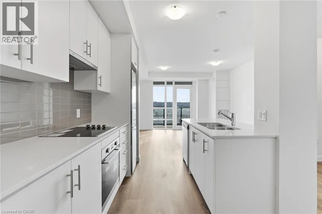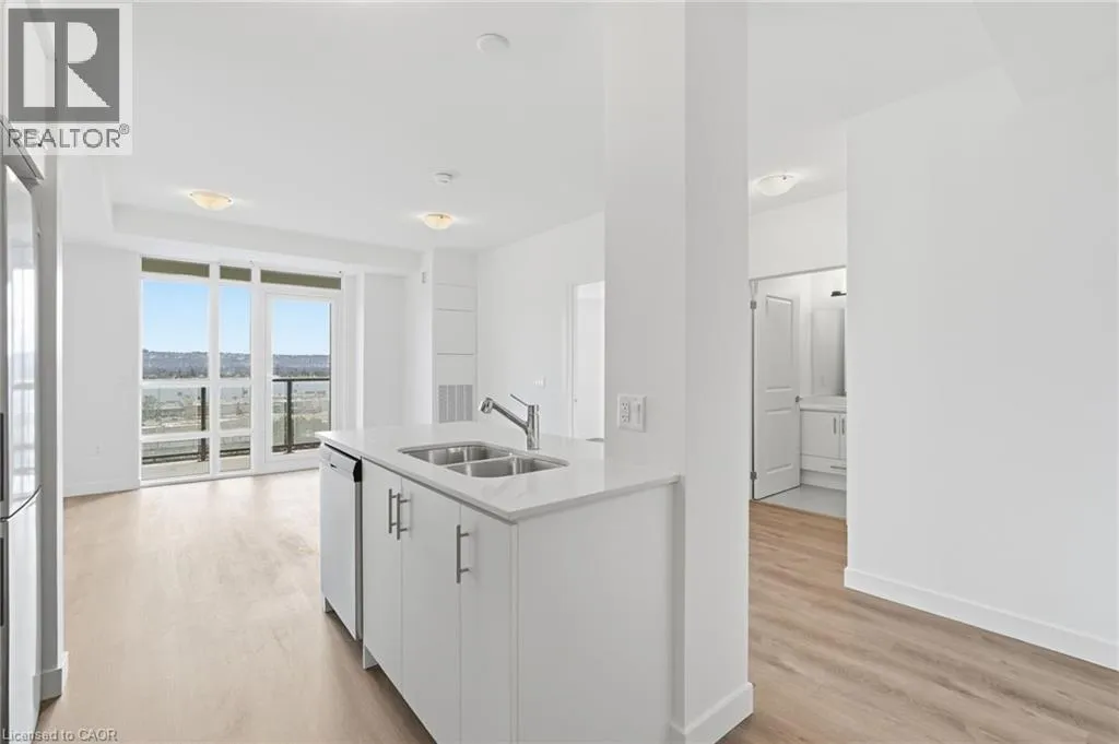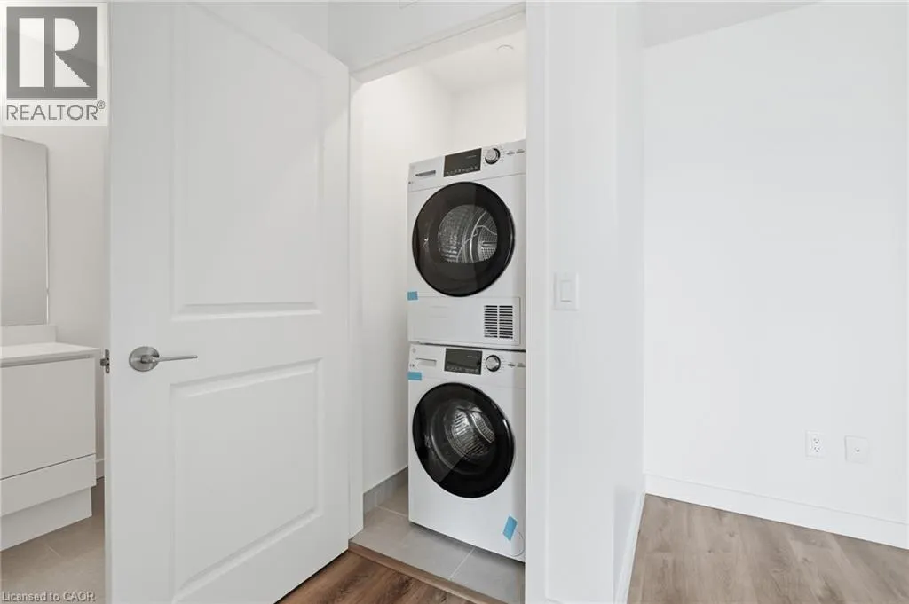 Corner of Green Rd and North Service Rd. Beautiful 8th floor suite in the brand new Muse building in lower Stoney Creek. Bright, open concept with lovely flow throughout and plenty of great sized nooks for maximum use of space. 1 bedroom with 1 underground parking space and storage locker. Efficient Geo-Thermal heating & cooling. Upgraded kitchen with quartz counters & tiled backsplash with convenient breakfast island and spacious bathroom with generous storage space. Stacked laundry in main area. High ceilings, floor to ceiling windows with custom blinds included. All appliances included. Balcony has clear views of the escarpment across the whole extra long terrace. Amenities include: exercise room, party room, rooftop patio with BBQ area for your enjoyment. Steps away from the lake and local park. Minutes to Confederation parks, trails, bike paths, and restaurants! Easy access to QEW, shopping and entertainment! (id:27476)