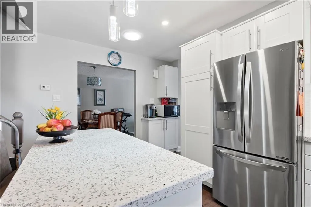 Welcome To 40 Lyton Crescent In The Heart Of Stoney Creek Mountain This Beautifully Updated And Surprisingly Spacious 4 Level Backsplit Offers Plenty Of Finished Living Space And Is Perfect For Growing Families Or Multi Generational Living. Thoughtfully Designed With A Functional Floor Plan, This Home Offers The Ideal Balance Of Open Concept Living And Private Space Separation. The Main And Upper Levels Feature Hardwood Flooring And Contemporary Finishes Throughout. The Modern Kitchen Is Complete With Quartz Countertops, A Large Island And Plenty Of Cabinet Space, Seamlessly Connecting To The Dining And Living Areas For Easy Everyday Living And Entertaining. The Main Bathroom Showcases An Updated Double Vanity For Added Comfort And Convenience. The Lower Level With Its Own Walk Up Side Entrance Is Ideal For An In Law Or Guest Suite. Currently Offering A Gym Or Office Used As A Fourth Bedroom, This Level Also Includes A Spacious Recreation Room With Updated Laminate Flooring And A Cozy Gas Fireplace, A Three Piece Bathroom With Glass Shower, Laundry Area, Cold Cellar And An Impressive Storage Room With Floor To Ceiling Shelving. Step Outside To A Rare 175 Feet Deep Private Backyard With No Rear Neighbours. This Expansive Outdoor Space Is Perfect For Family Gatherings, Relaxing Evenings And Entertaining All Summer Long. Deep garage with automatic opener! Located Just Minutes To The Paramount Hub Of Restaurants, Cafes, Shopping And Movie Theatre, With Quick Access To The Lincoln Parkway, Red Hill Valley Parkway And Major Highways. Walking Distance To Schools, Parks And Valley Park Community Centre With Pool And Rink. An Exceptional Opportunity To Own A Versatile And Meticulously Maintained Home In One Of Stoney Creekâs Most Convenient Locations. (id:27476)