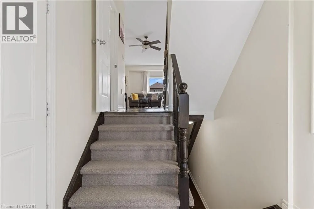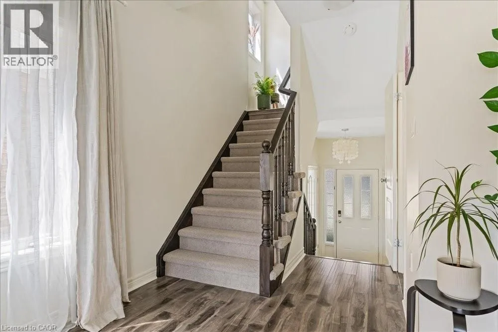 North Service Rd to Dartmouth Discover your serene oasis at 40 Dartmouth Gate in the highly desirable, family-friendly Stoney Creek neighbourhood!This spectacular corner townhouse boasts 3 spacious bedrooms plus 4 bathrooms, flooded with natural light and backing directly onto peaceful green space for added privacy and tranquility.Enjoy the fabulous location just a short walk to Lake Ontario, with quick access to the QEW, GO stations, Costco, and an abundance of shopping and amenities.Premium updates and features include:Granite countertops in the kitchen and all bathrooms, Beautiful hardwood floors throughout the main and upper levels, Generous primary bedroom with a walk-in closet and private 3-piece ensuite. Fully finished basement featuring a versatile rec room, 2-piece bath, wet bar, and bar fridge. Expansive outdoor entertainment space with a deck off the kitchen and convenient under-deck storage. Recent upgrades ensure peace of mind and move-in readiness: New roof (2022), New furnace and A/C (2023), New dishwasher (2025), New water heater and water softener. This exceptional home combines modern comfort, thoughtful updates, and an unbeatable location-truly a rare find in Stoney Creek. Don't miss the opportunity to make it yours! (id:27476)