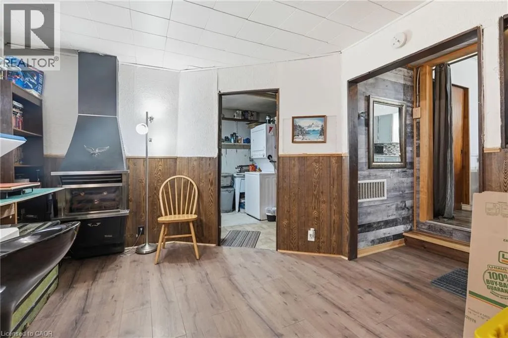 Barton St to McNeilly Rd Welcome to this cozy 3-bedroom, 1-bathroom bungalow in Stoney Creek, offering comfort, space, and versatility for a wide range of buyers. Situated on a large lot with no backyard neighbours, this home provides a private setting. The interior features a functional layout with bright living spaces and three well-sized bedrooms. This property is ideal for families, first-time buyers, downsizers, or investors. The driveway offers impressive parking for up to nine vehicles, perfect for larger households or guests. The attached garage has been converted into a recreation room, adding flexible living space for a family room, gym, or office. The original garage door remains under the siding, allowing the option to easily convert it back if desired. Conveniently located near the Queen Elizabeth Way and Red Hill Valley Parkway and close to major shopping, this home offers both privacy and accessibility. (id:27476)