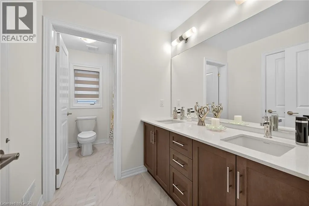 QEW/Fifty Rd/Barton St/Starfire Welcome to 67 Starfire Crescent â a stunning Branthaven-built detached home offering approximately 3,017 sq ft of beautifully designed living space in a quiet, family-friendly Stoney Creek neighbourhood with escarpment views. The bright main floor features 10 ft ceilings, hardwood flooring, a private den with French glass doors, and a spacious family room with a two-sided fireplace. The modern kitchen offers extended cabinetry, quality finishes, and a generous breakfast area ideal for everyday living and entertaining. Upstairs, enjoy the convenience of second-floor laundry and well-appointed bedrooms, including semi-ensuite access with a functional Jack & Jill layout. The primary suite features a private ensuite and a large walk-in closet. Hardwood stairs and a double-car garage complete this impressive home. Conveniently located near the QEW, Fifty Point Conservation Area, parks, schools, shopping, and dining. (id:27476)