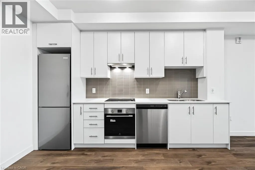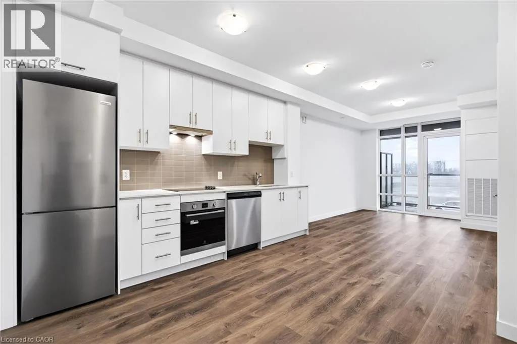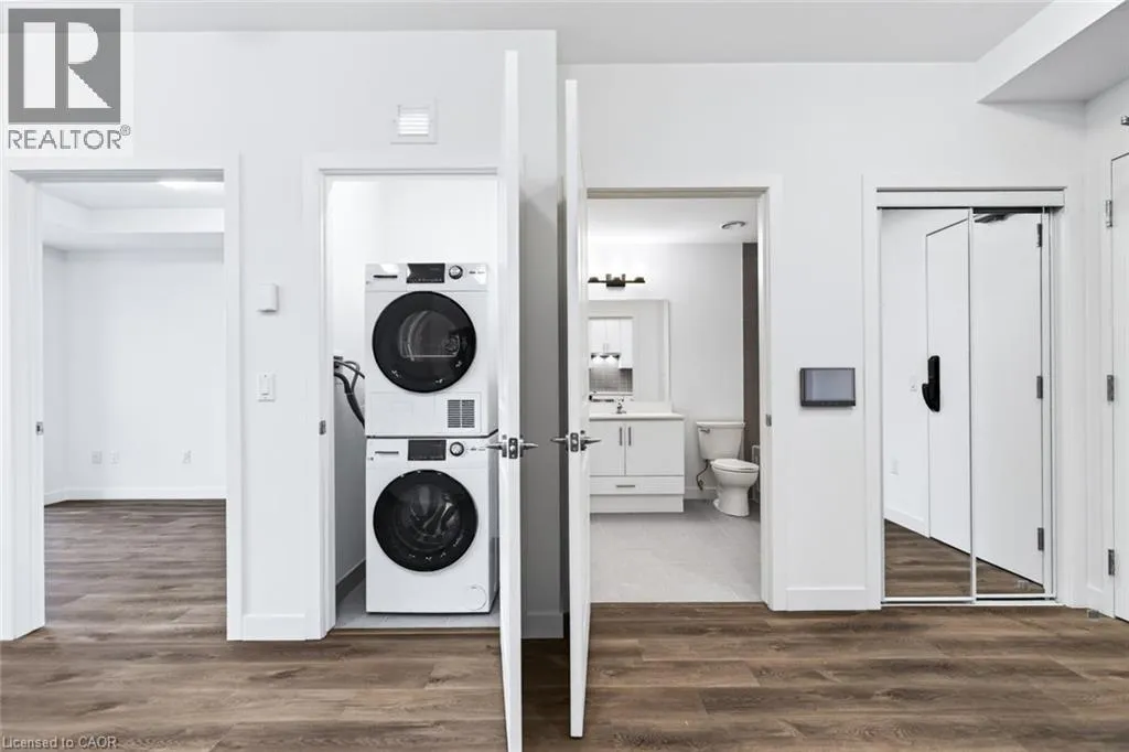Welcome to stylish condo living at Muse Condos in Stoney Creek, just steps to Lake Ontario and scenic waterfront trails! This brand new 1 bed, 1 bath suite offers a bright open-concept layout with luxury vinyl flooring throughout, a sleek kitchen with quartz countertops, stainless steel appliances, ample cabinetry, in-suite laundry, energy-efficient geothermal heating/cooling & more! 1 parking & 1 locker included. Residents enjoy access to premium building amenities including a fitness centre, party room, rooftop terrace, and visitor parking. Ideally located with easy access to the QEW. Perfect for first-time buyers, downsizers, or investors! (id:27476)