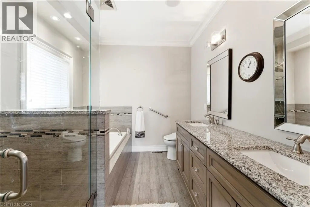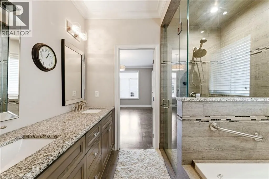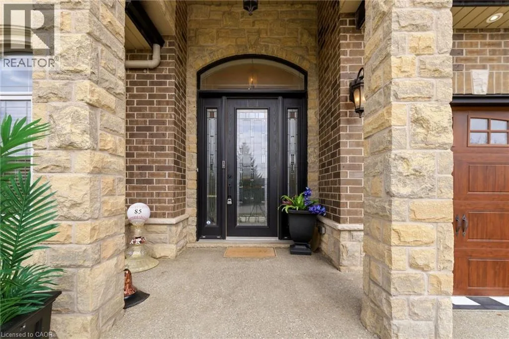 Second Road West and Hillcroft Drive Welcome to 85 Hillcroft Drive, Stoney Creek Mountain. This stunning Bungaloft located in a sought after quiet neighbourhood, featuring approx 2,498 Sq Ft of exquisite craftsmanship and finishings with thoughtfully planned living space with exceptional flow. Spacious and bright open concept main level featuring welcoming vaulted entrance., gourmet chef style eat-in kitchen with stunning cabinetry, granite countertops with complementary backsplash, large island with additional seating, stainless steel appliances. Great room with 2 Stry Cathedral ceilings., gas fireplace flanked by gardens doors out to large covered rear deck surrounded by aggregate concrete and landscape strips with hot tub with electric mechanical cover w/ light providing year round use great for entertaining,. Main level primary suite with 5pc ensuite bath, double sinks, frameless glass shower, jetted soaker tub. Additional main level bedroom/den w/dble French doors. Second level with good size loft area, bedroom w/walk in closet and 4pc bath great for accommodating family or guests. Basement has kitchenette with fridge and gas stove with approx 1700 Sq Ft of unfinished basement area great potential for new homeowners to add there finishing touches. Double car garage with swisstrax flooring. Aggregate concrete double car driveway and low maintenance landscaping with artificial grass. The home is close to all amenities with easy highway access, schools, shopping and parks. Featuring a true sense of comfort, space and style. Also great for that in-law situation or large family. Shows 10++ RSA (id:27476)