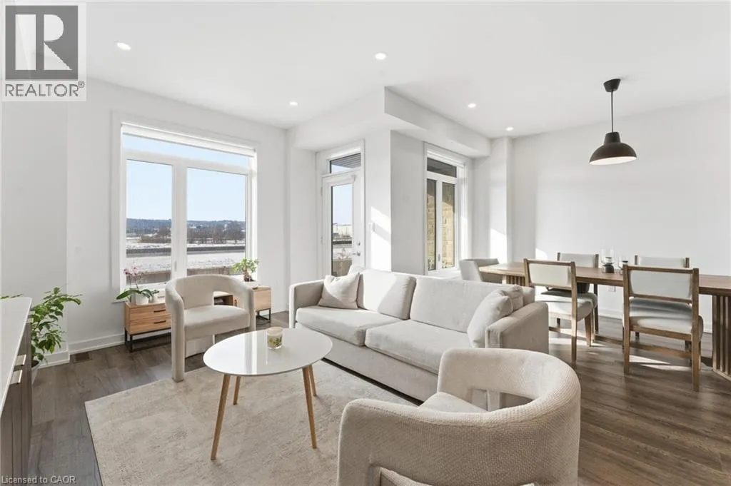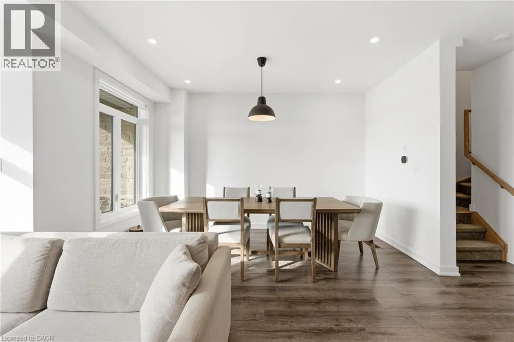 Fruitland/Lakeview/N Service Stylish freehold townhome steps from the lake. This bright, modern 2-bedroom home offers 1,310 sq. ft. above ground with 9-foot ceilings, an open-concept layout, and a sleek kitchen designed for entertaining. The sun-filled living and dining area walks out to a private balcony, perfect for morning coffee or evening drinks. Located minutes from Confederation Beach Park, the harbour, and the GO Station, this home is ideal for commuters, first-time buyers, or downsizers seeking low-maintenance living in a vibrant lakeside community. Set back within the complex for quiet enjoyment, with quick QEW access when you need it. A move-in-ready alternative to condo living â enjoy space, privacy, and ownership with no monthly fees. (id:27476)