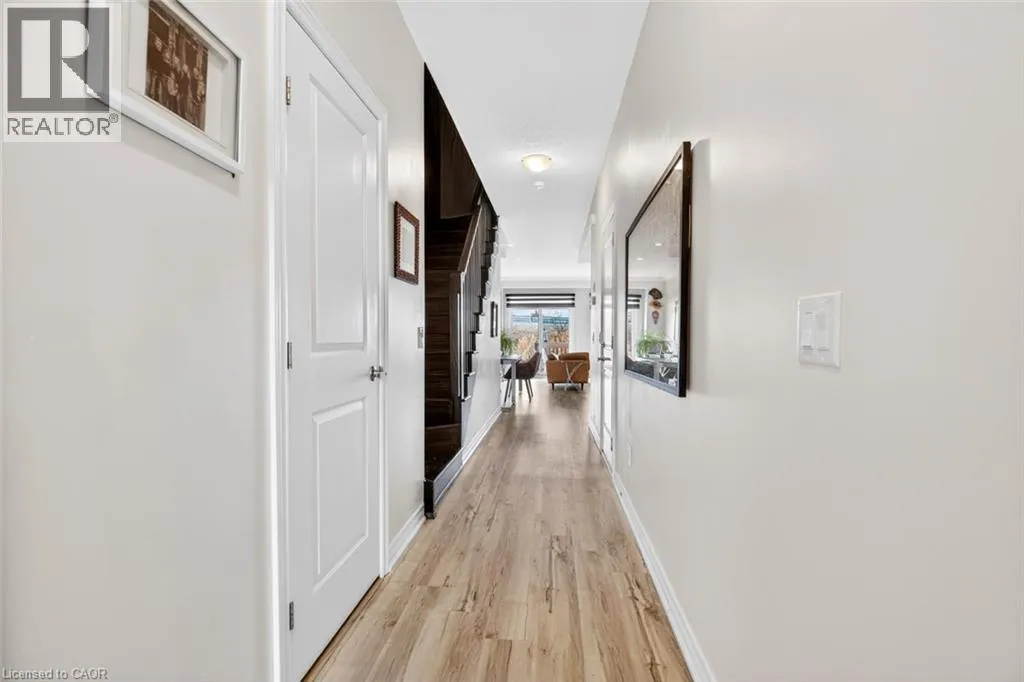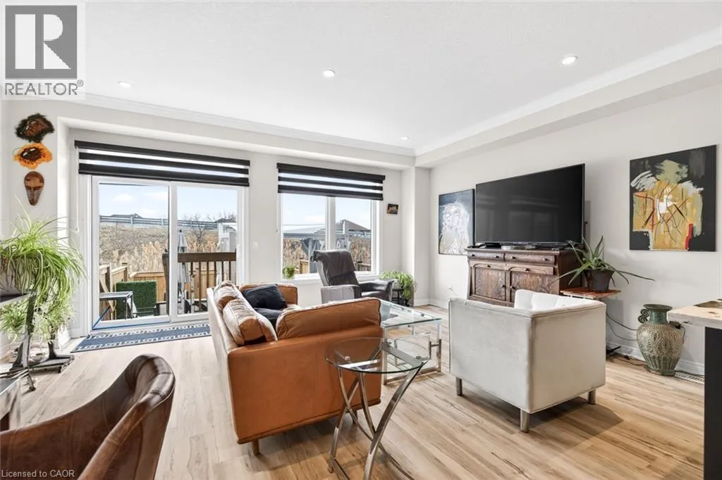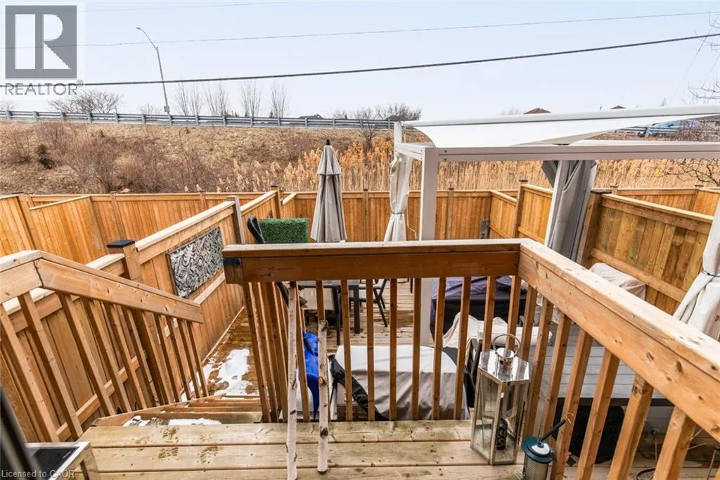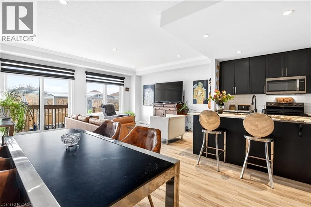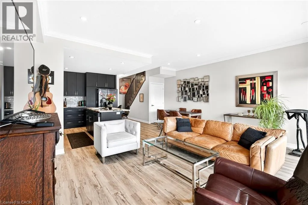 Winona Rd/Baseline Rd. Beautiful 3 bedroom, 2.5 bathroom townhome with over 2,200 sq ft of finished living space. Bright open concept main floor with modern flooring, pot lights, and spacious living and dining areas. Stylish kitchen with dark cabinetry, stone countertops, stainless steel appliances, subway tile backsplash, and large island with breakfast bar. Upper level offers a generous primary bedroom, two additional bedrooms, and convenient second-floor laundry. Finished lower level provides extra living space for a rec room, office, or gym. Private fenced backyard with deck and patio area. Attached garage with driveway parking. Great location close to parks, schools, shopping, and quick highway access. (id:27476)