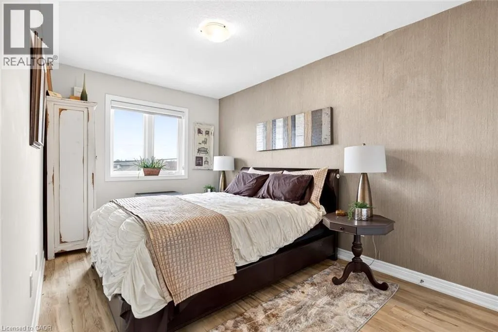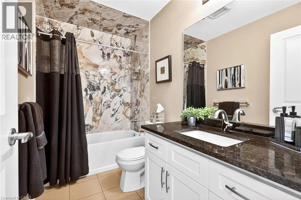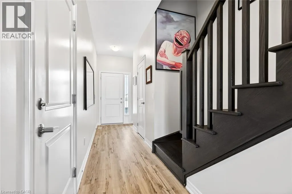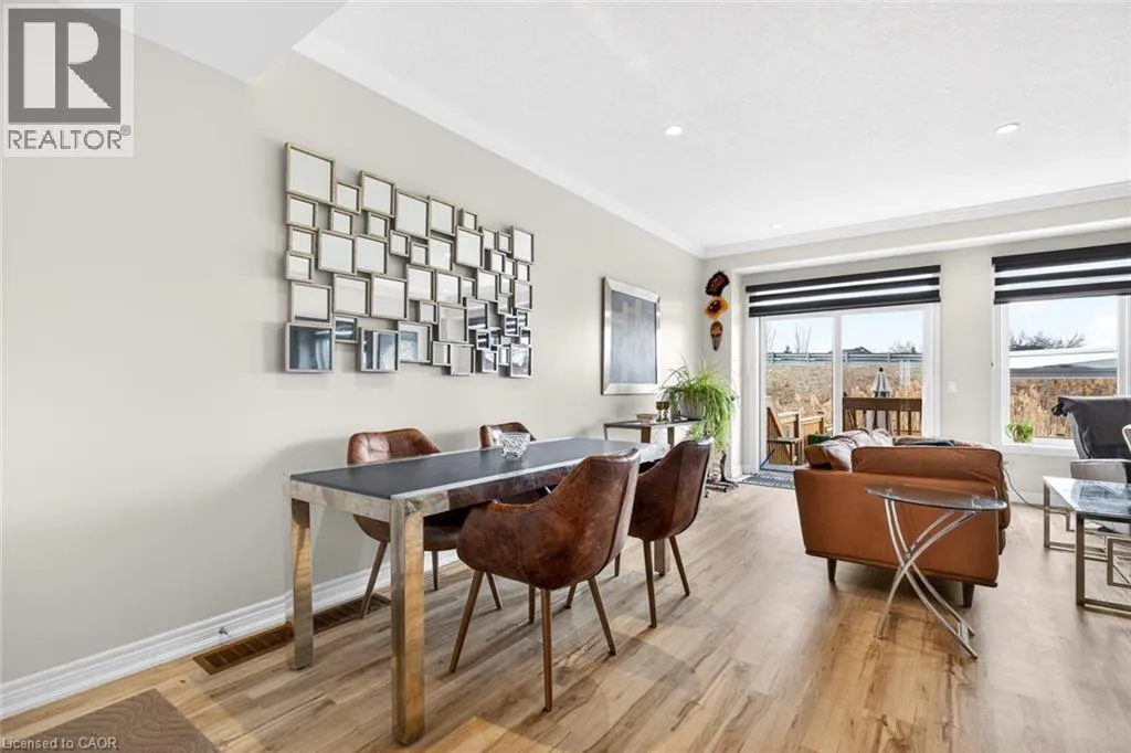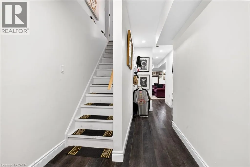 Winona Rd/Baseline Rd. Beautiful 3 bedroom, 2.5 bathroom townhome with over 2,200 sq ft of finished living space. Bright open concept main floor with modern flooring, pot lights, and spacious living and dining areas. Stylish kitchen with dark cabinetry, stone countertops, stainless steel appliances, subway tile backsplash, and large island with breakfast bar. Upper level offers a generous primary bedroom, two additional bedrooms, and convenient second-floor laundry. Finished lower level provides extra living space for a rec room, office, or gym. Private fenced backyard with deck and patio area. Attached garage with driveway parking. Great location close to parks, schools, shopping, and quick highway access. (id:27476)