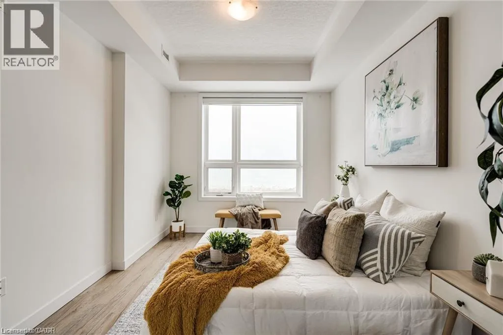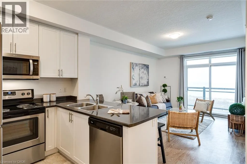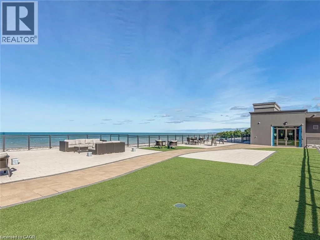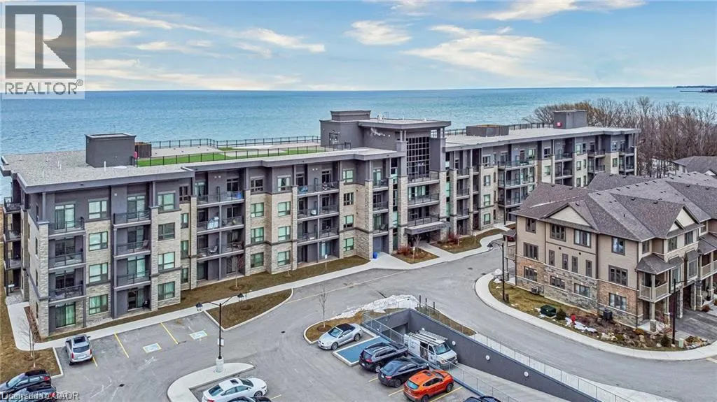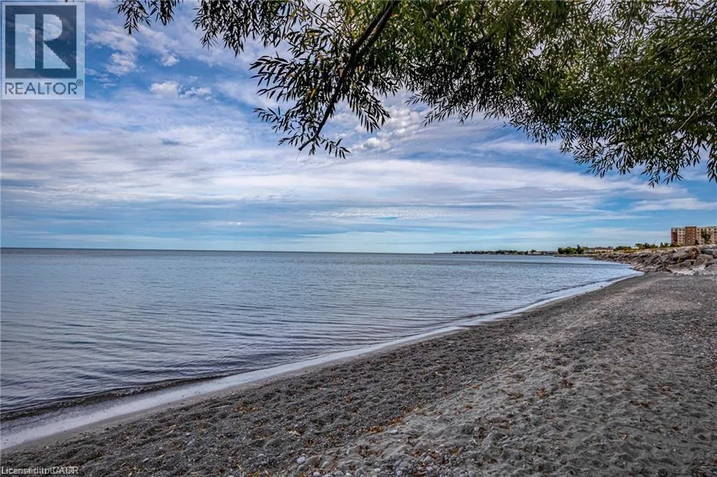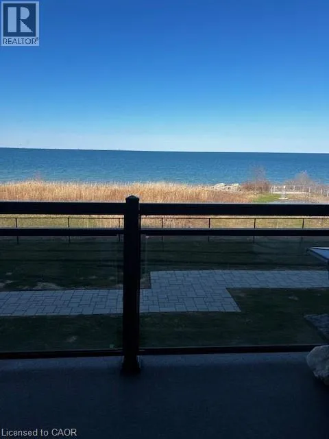Exit Centennial or Fruitland to North Service Road to Green Road, right Frances Avenue, left on Southshore Crescent. Follow to the Waterfront Trails condo building on the water / lake. Live lakeside and be inspired by direct water views in this second floor in the sought after Waterfront Trails Condo. Modern, spacious and bright one bedroom + den unit with luxury vinyl flooring, 9 foot ceilings and ample natural light. The u-shaped kitchen offers generous counter and cupboard space. The master bedroom wall to wall mirrored closet reflects the green and blue of nature outside your window. Sliding patio doors welcome you to your balcony retreat. Ultimate convenience with ensuite laundry and proximity to highways. Paved Waterfront Trail and beach are steps away. Amenities include: roof top terrace, exercise room, bike room and party room ($). Geothermal heating and cooling and water are included. Tenant to pay hydro (approximately $40 - $50 per month). One underground parking spot and storage locker included. Rental Application, Full Credit Report and Proof of Employment are required. Available immediately. Don't wait, call today to view. (id:27476)