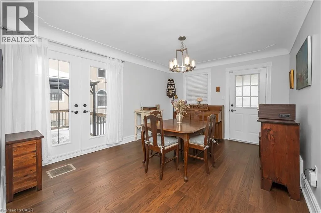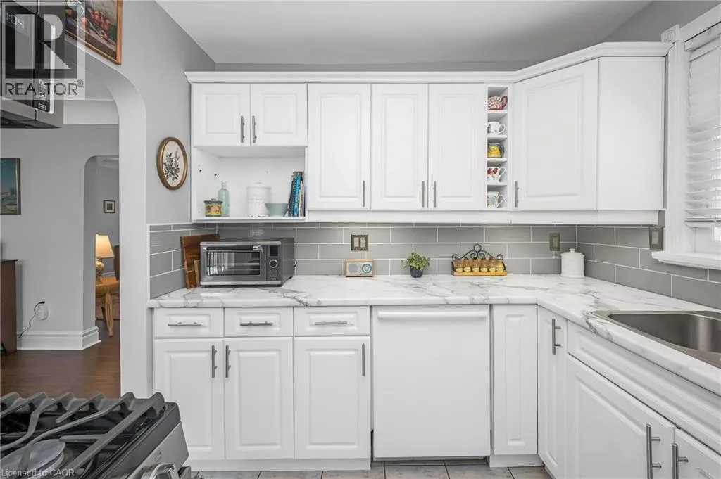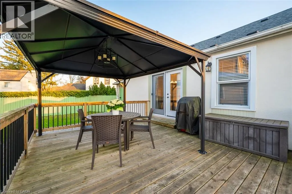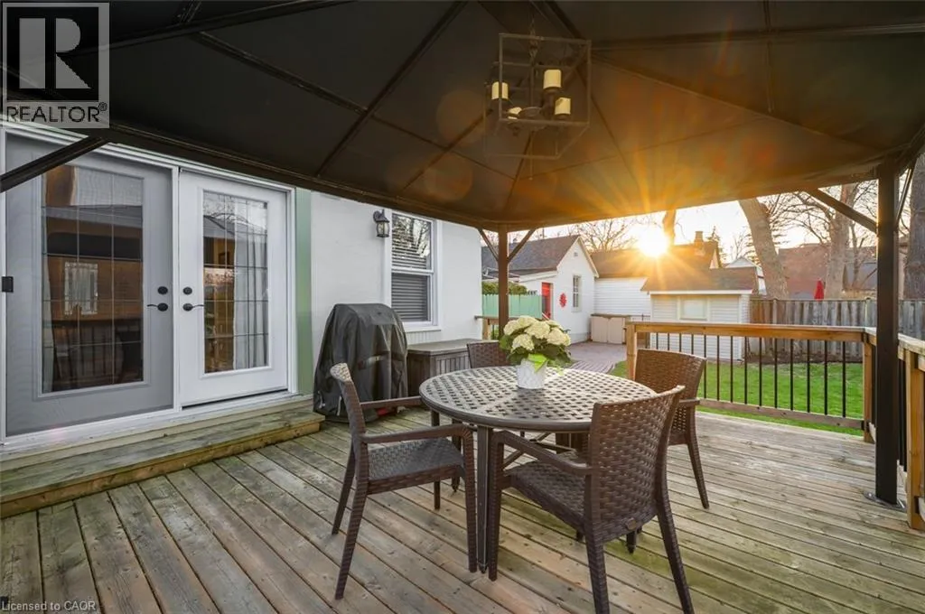 King St E to Mountain Ave S to Maple Ave Charming, comfortable, convenient! This well cared for, inviting home, which sits on a large lot just steps from downtown Stoney Creek, provides peace of mind in a quiet neighbourhood. Inside, you'll find a cozy, functional layout with good-sized principal rooms that feels warm and welcoming, while outside the fully fenced yard features plenty of space for gardening, pets, or summer entertaining. The large covered deck adds a second living space for lounging, barbecuing and sharing a meal during the warm spring and summer months. A detached garage and garden shed add valuable storage and flexibility for hobbies or projects. This house can also accommodate parking for up to 4 cars! With easy access to Confederation GO station with train service, the QEW and Red Hill Valley Parkway and close proximity to multiple shopping centres, restaurants, grocery stores, and everyday amenities, this property is ideal for first-time buyers, downsizers, or investors looking to secure a prime Stoney Creek location. NOTABLE UPDATES: 2020- new roof, furnace, A/C and deck. 2021- installed pre-finished hardwood flooring in living room, dining room and den/bedroom. 2022- insulation in attic and bedroom ceiling; 8 new windows (out of 12). 2023- painted outside of house and garage. 2024- new toilet in upstairs bathroom; planted perennial garden at side of house. 2025- new French doors to back deck; Painted all fences and gates around the proper (id:27476)