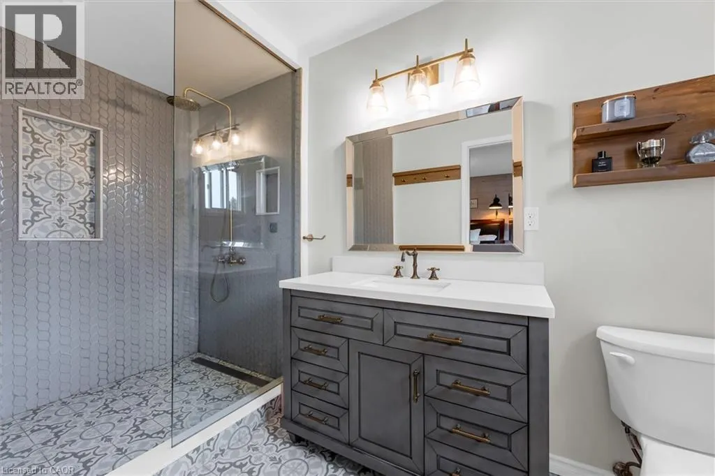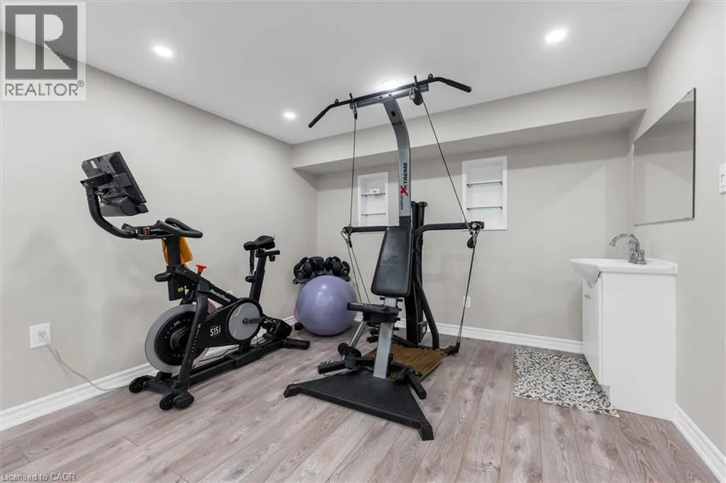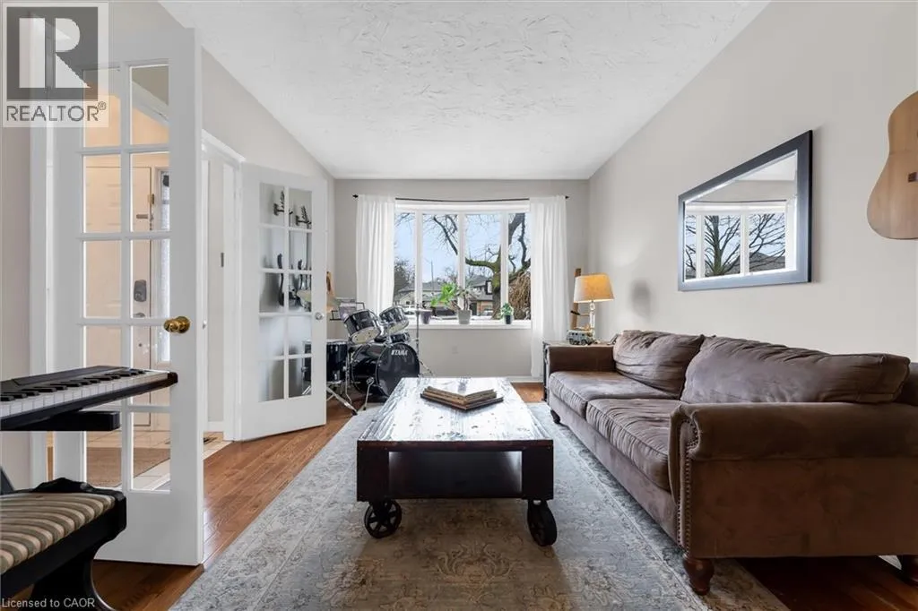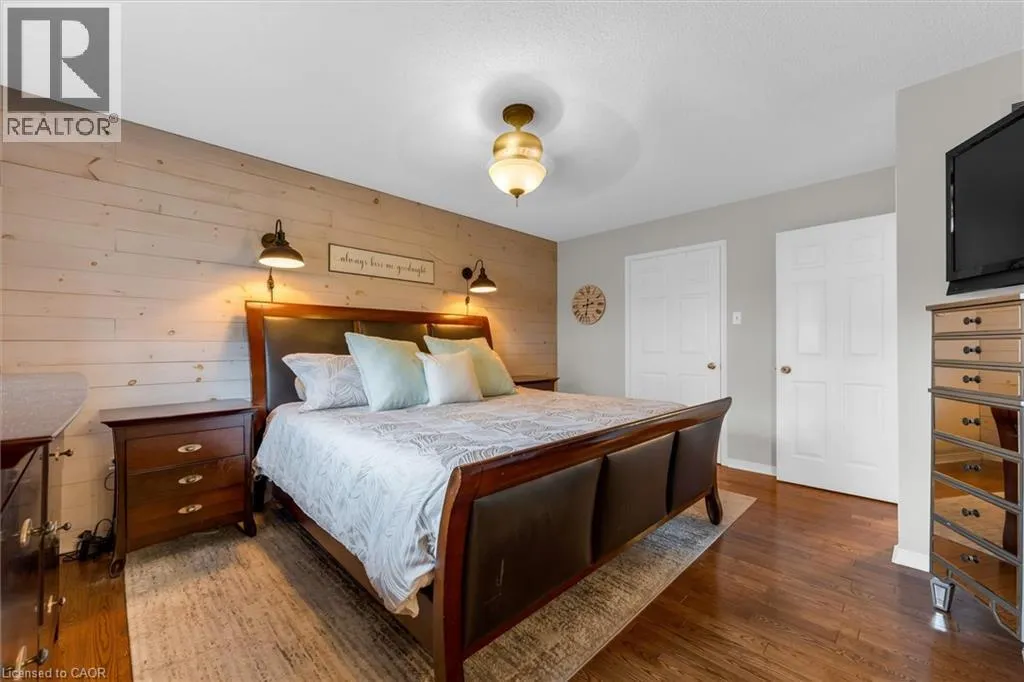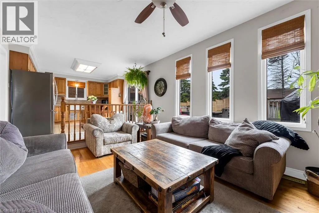 Lakeview Dr to Homeland Ave Steps to Lake Ontario in a quiet court location! Best neighbours you could have!! This beautifully maintained 2,073 sqft, 4+1 bedroom, 2.5 bathroom home showcases true pride of ownership with neutral décor and no carpeting throughout. Hardwood floors run through the living, dining, family room, and all bedrooms, with ceramics in the kitchen and bathrooms. The updated eat-in kitchen features granite countertops, oak cabinetry, and ample storage, and opens to a sunken family room with a cozy wood-burning fireplace and walkout to the backyard. Set on one of the largest and most private lots in the area, the backyard offers mature trees, is fully fenced, a spacious deck, above-ground pool (removable), and plenty of room for entertaining or family enjoyment. The primary bedroom includes a walk-in closet and a 3-piece ensuite with a large walk-in shower. The finished basement adds extra living space with a pool table/theatre room (which could be a bedroom) & a finished workout & home salon area plus storage. Numerous updates include A/C (2024), pool pump (2023), furnace (2021), pool liner (2021), windows (2012), shingles (2007) - all dates approximate. Located just a 1-minute walk to scenic lakefront trails and Cherry Beach, close to schools, shopping, parks, and with excellent highway access - only 20 minutes to Niagara or Oakville. Move-in ready and shows beautifully! (id:27476)