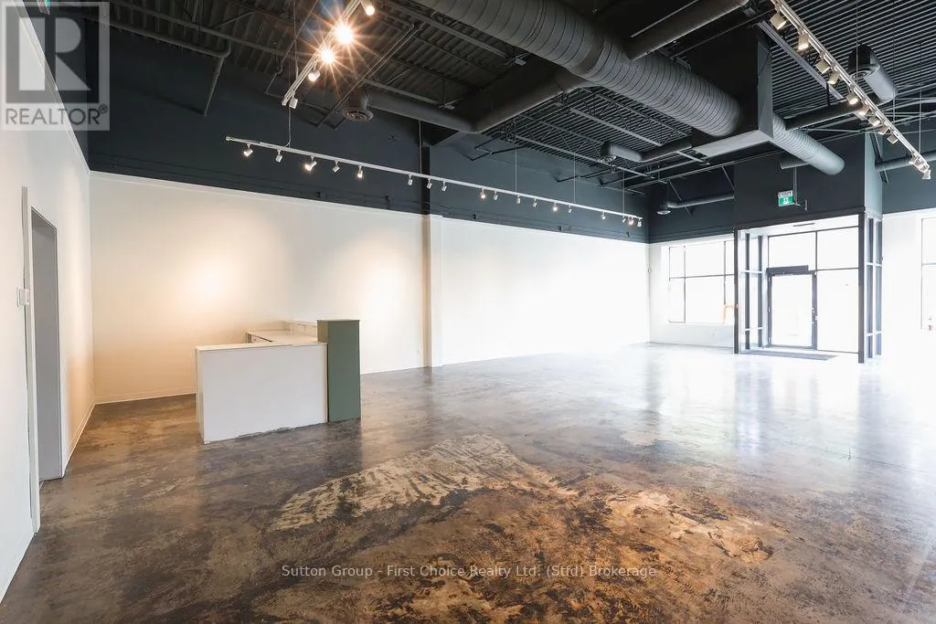 Corner of Waterloo Street and Albert Street Prime downtown corner retail location lease opportunity showcasing large windows, high ceilings, good lighting, polished concrete floors and included underground tenant parking available. 2747 square feet in same block as Stratford's iconic Rheo Thompson Candy and around the corner from the Avon and Studio Theatres provide the potential of good visibility and foot traffic. This location is most suited to retail, service and office use. (id:27476)