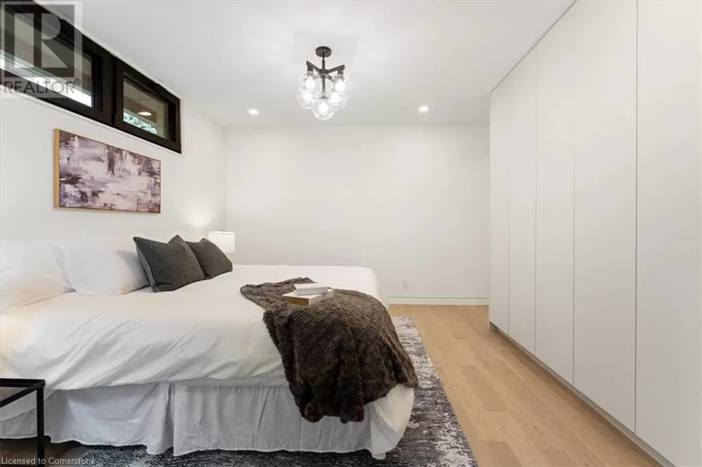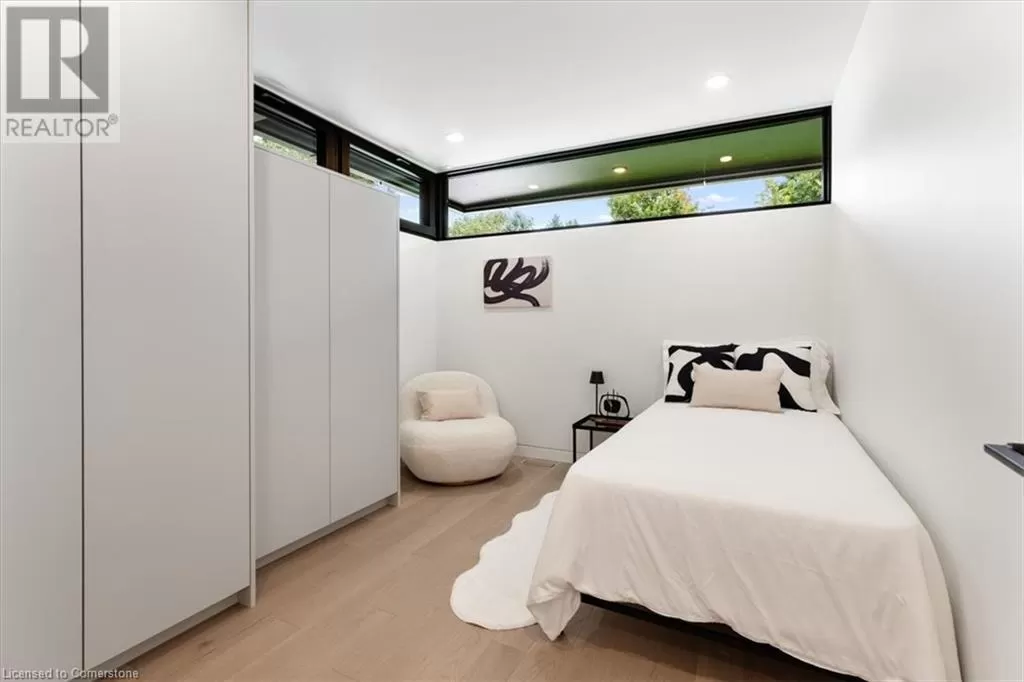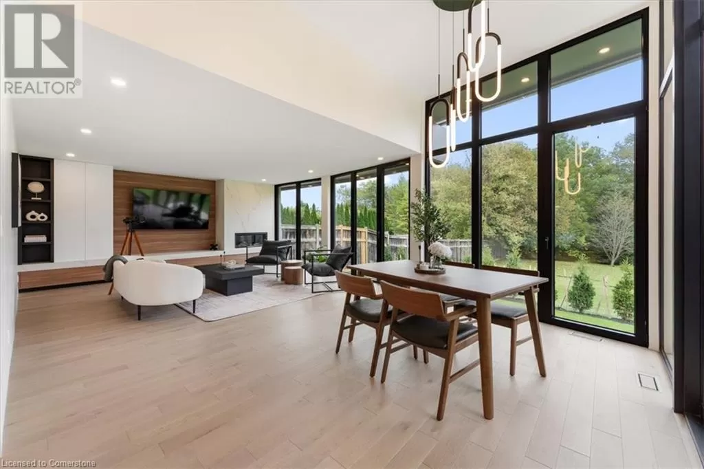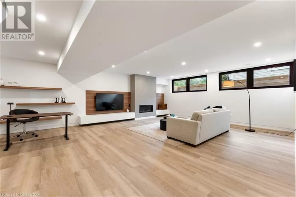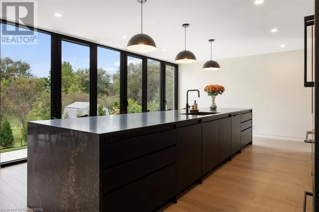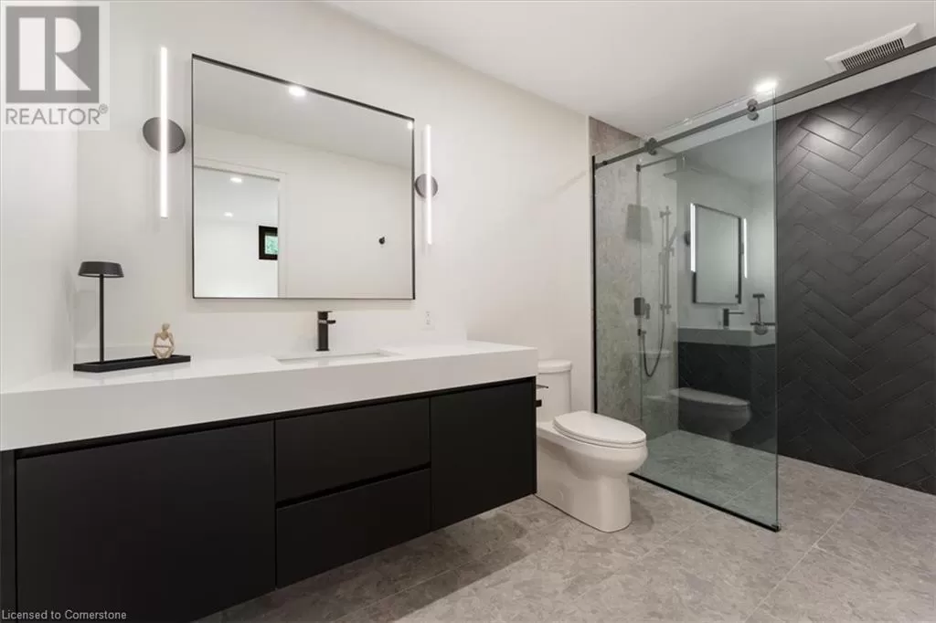 South on Mornington and East on Vivian Line 37 Seller looking for a fair market value offer. Welcome to 3207 Vivian Lineâan architectural masterpiece crafted by SMPL Design Studio, where modern design meets timeless sophistication. This one-of-a-kind residence features expansive floor-to-ceiling windows across the rear facade, flooding the home with natural light and offering a seamless connection to the outdoors. The heart of the home is the custom-designed kitchen with striking black and walnut cabinetry, a show-stopping 15-foot Vanilla Noir Caesarstone island, and a walk-in pantry for added function and style. The open-concept living and dining space is anchored by a sleek gas fireplace and light-toned engineered hardwood floors that flow throughout the main level. The home offers three main floor bedrooms, each with custom-built wardrobes. The primary suite includes a private 3-piece ensuite, while a separate 4-piece bath serves guests and family. The fully finished lower level adds a cozy rec room with a second gas fireplace, a fourth bedroom, an additional 3-piece bathroom, and ample storage. Outside, a modern concrete driveway leads to a spacious two-car garage. A perfect blend of form, function, and flairâthis home is a rare offering in a sought-after Stratford location. (id:27476)