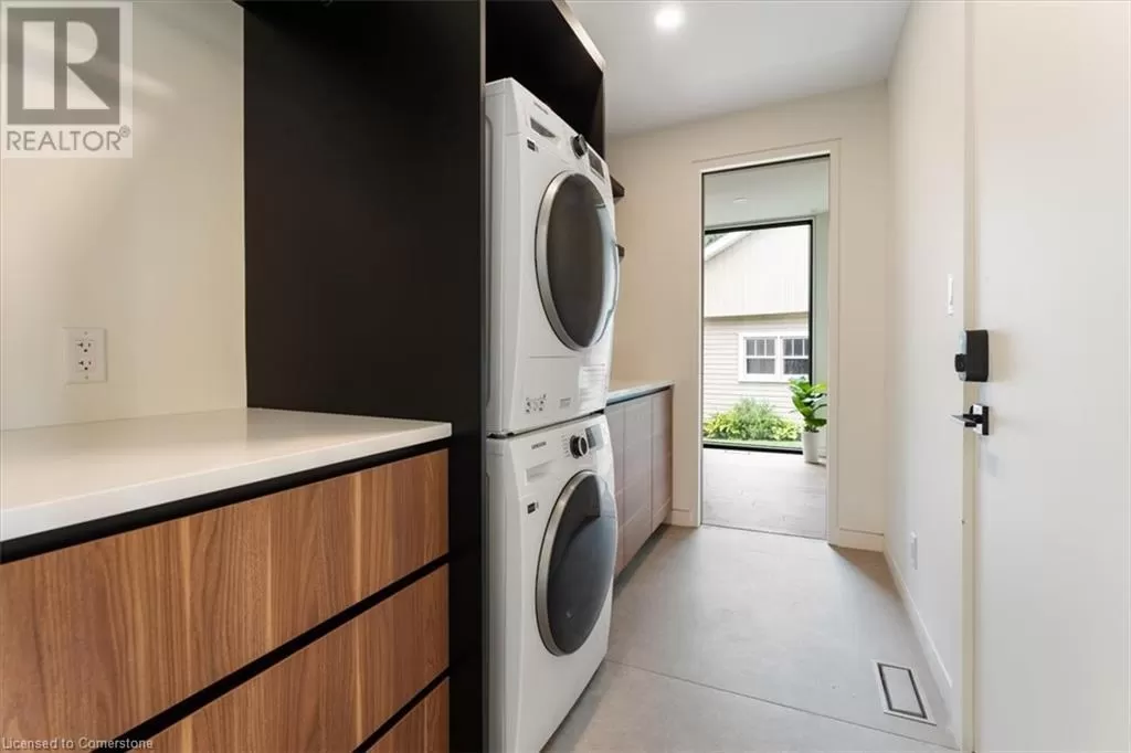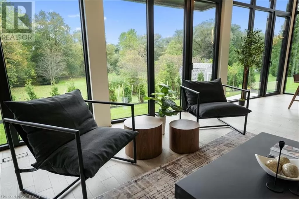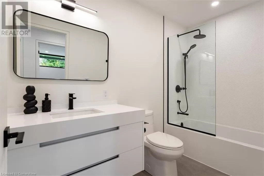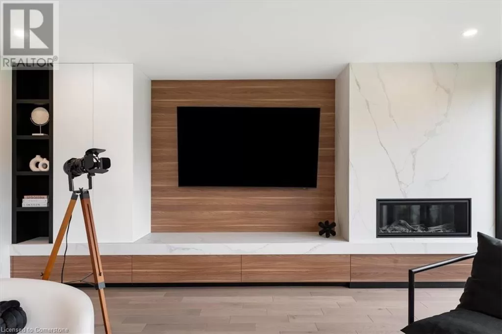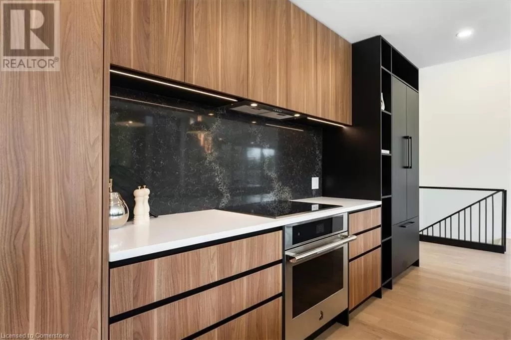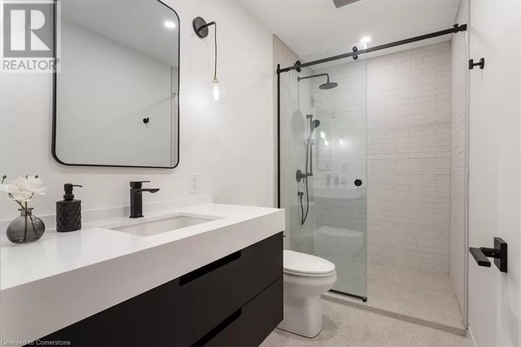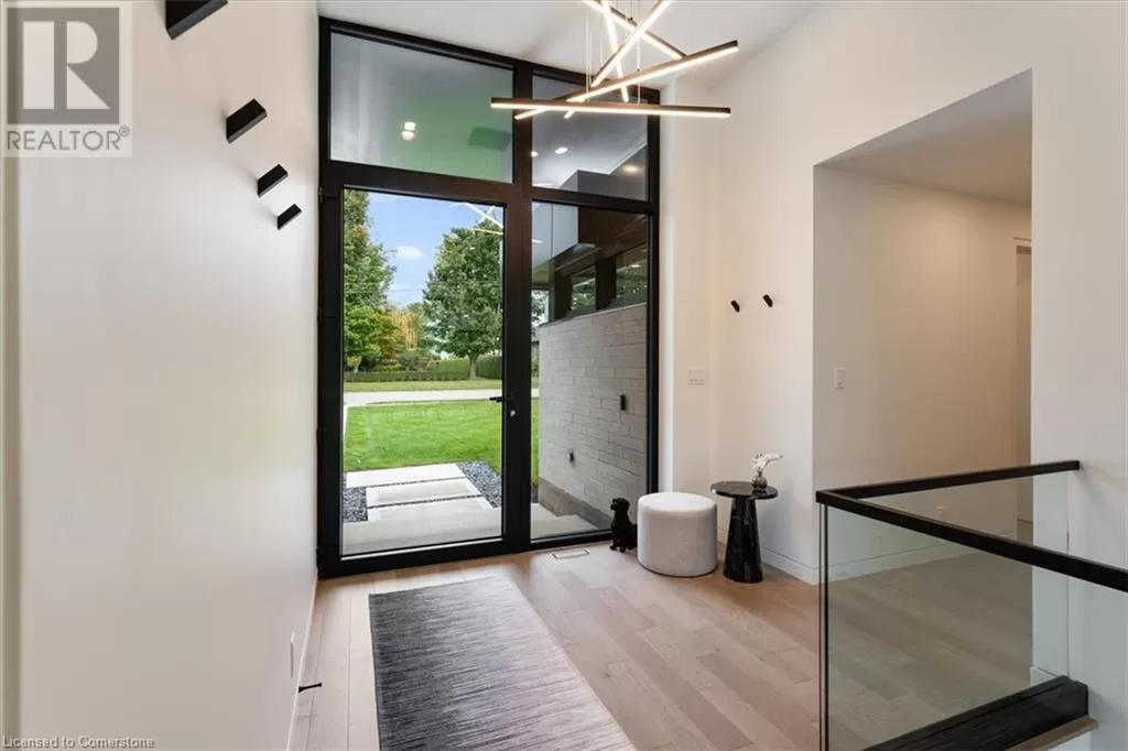 South on Mornington and East on Vivian Line 37 Seller looking for a fair market value offer. Welcome to 3207 Vivian Lineâan architectural masterpiece crafted by SMPL Design Studio, where modern design meets timeless sophistication. This one-of-a-kind residence features expansive floor-to-ceiling windows across the rear facade, flooding the home with natural light and offering a seamless connection to the outdoors. The heart of the home is the custom-designed kitchen with striking black and walnut cabinetry, a show-stopping 15-foot Vanilla Noir Caesarstone island, and a walk-in pantry for added function and style. The open-concept living and dining space is anchored by a sleek gas fireplace and light-toned engineered hardwood floors that flow throughout the main level. The home offers three main floor bedrooms, each with custom-built wardrobes. The primary suite includes a private 3-piece ensuite, while a separate 4-piece bath serves guests and family. The fully finished lower level adds a cozy rec room with a second gas fireplace, a fourth bedroom, an additional 3-piece bathroom, and ample storage. Outside, a modern concrete driveway leads to a spacious two-car garage. A perfect blend of form, function, and flairâthis home is a rare offering in a sought-after Stratford location. (id:27476)