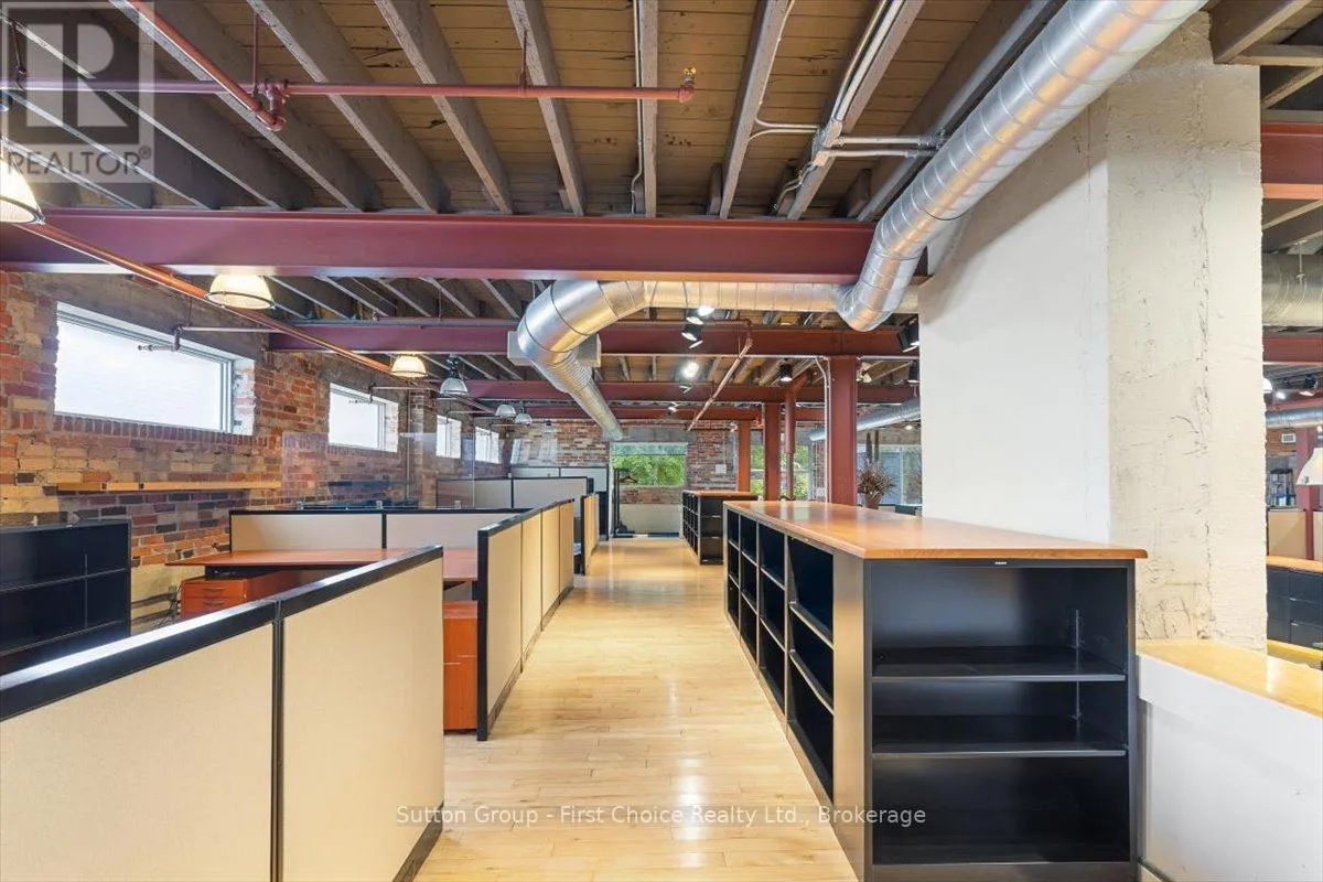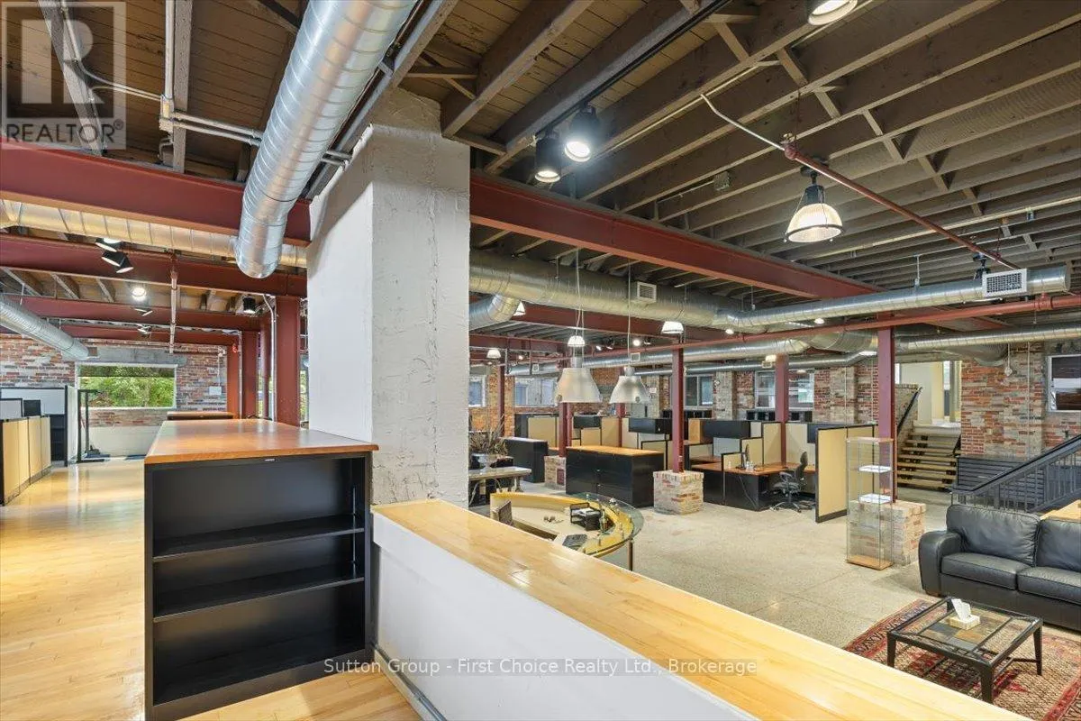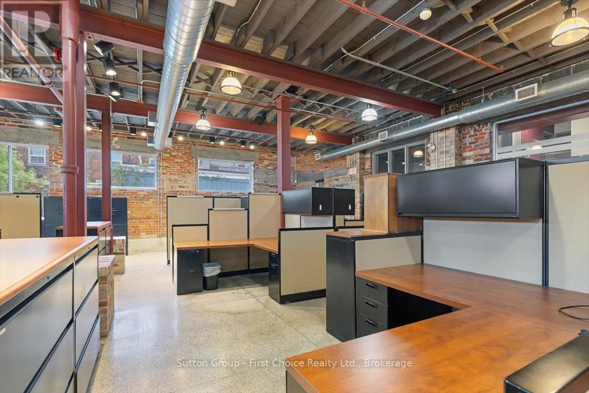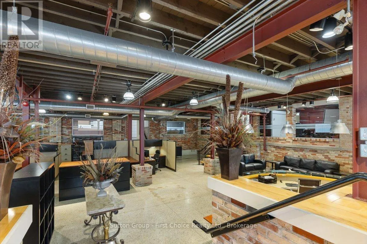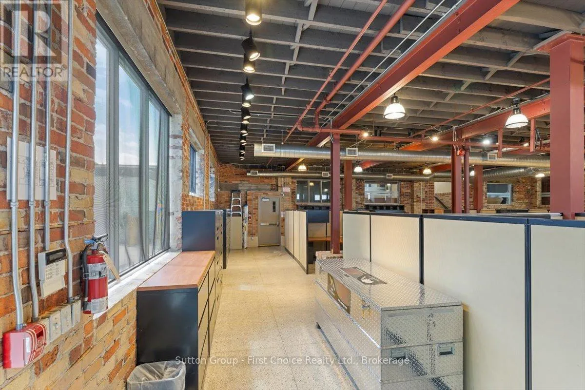 At corner of Erie & St. Patrick Streets, parking directly on corner in lot, unit entry at rear of building along alley. Available 10,235 square feet of impressive commercial space for lease with parking for 10 cars providing an incredible opportunity for your business available in downtown Stratford. Currently used as office space, however many additional uses are applicable under C3 zoning. Private exterior access, open concept office with appealing decor and high ceilings, private offices with glass and fully walled, board room, and meeting spaces, kitchenette, washrooms, and file storage are currently in place along with a backup generator should be needed. If you seek an outstanding opportunity for your business, book your private showing through your trusted REALTOR to view this offering. (id:27476)