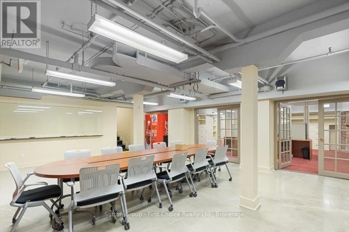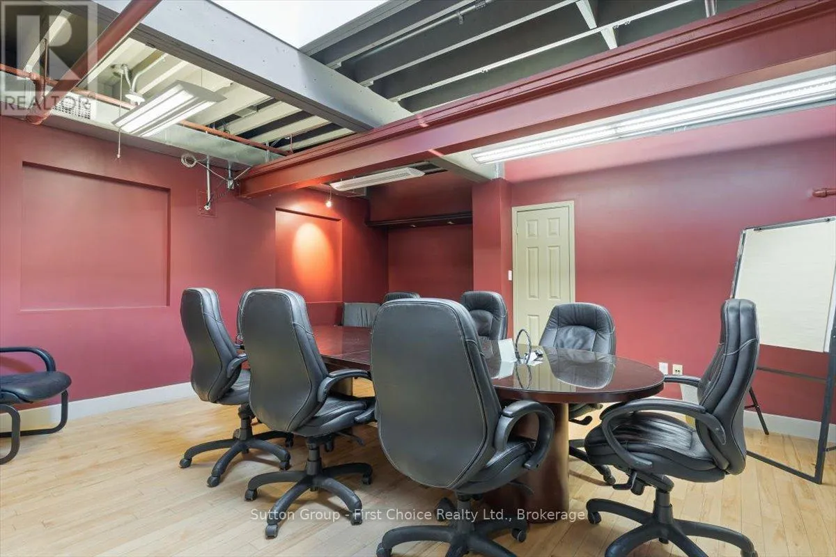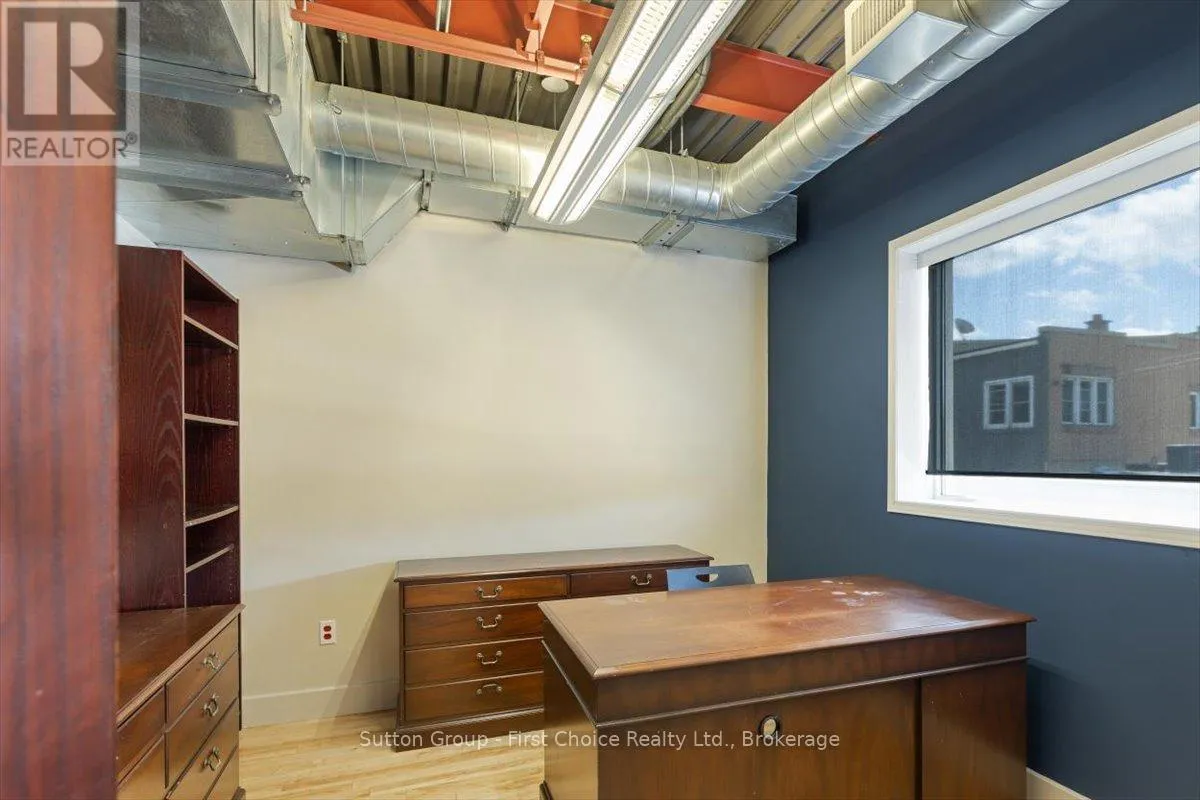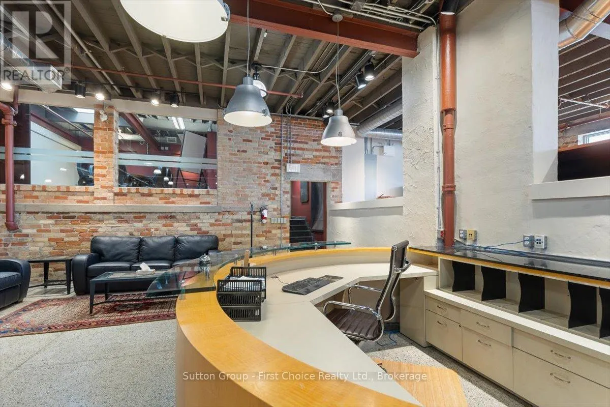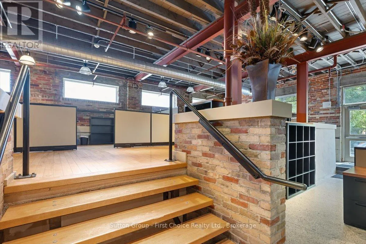 At corner of Erie & St. Patrick Streets, parking directly on corner in lot, unit entry at rear of building along alley. Available 10,235 square feet of impressive commercial space for lease with parking for 10 cars providing an incredible opportunity for your business available in downtown Stratford. Currently used as office space, however many additional uses are applicable under C3 zoning. Private exterior access, open concept office with appealing decor and high ceilings, private offices with glass and fully walled, board room, and meeting spaces, kitchenette, washrooms, and file storage are currently in place along with a backup generator should be needed. If you seek an outstanding opportunity for your business, book your private showing through your trusted REALTOR to view this offering. (id:27476)