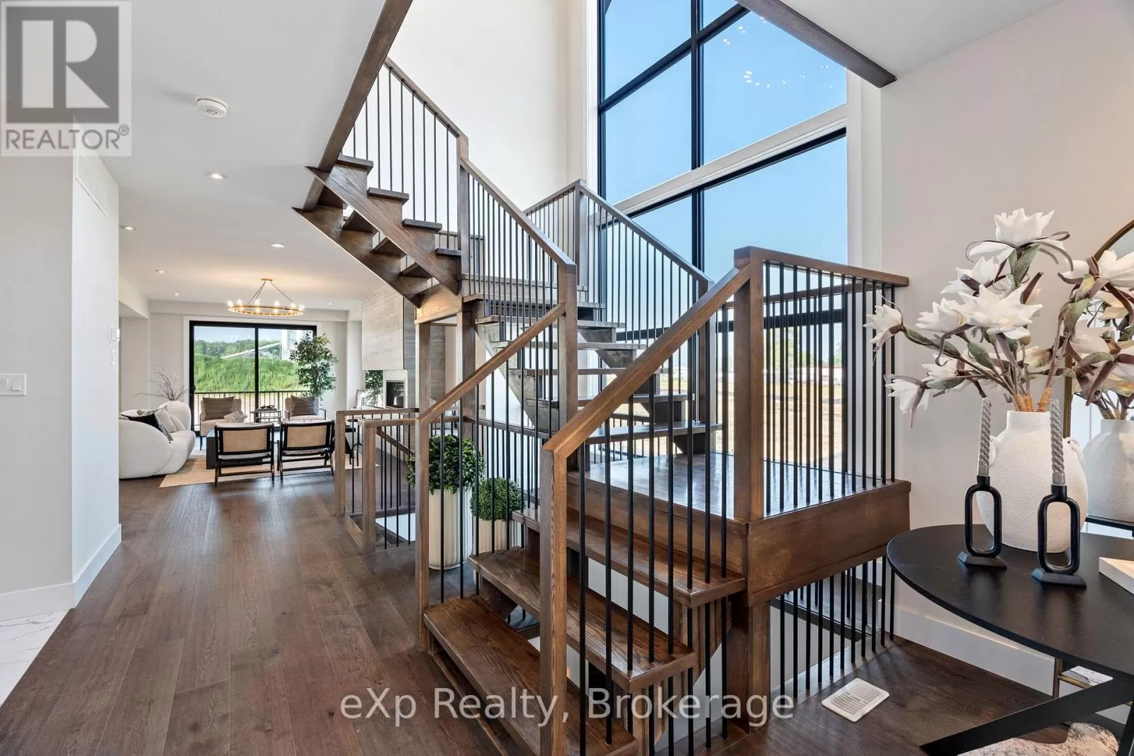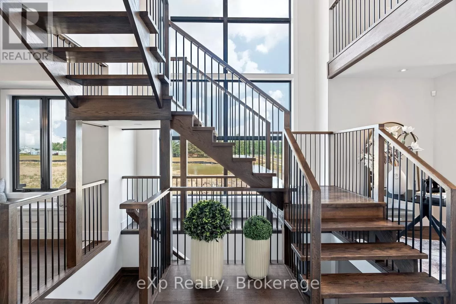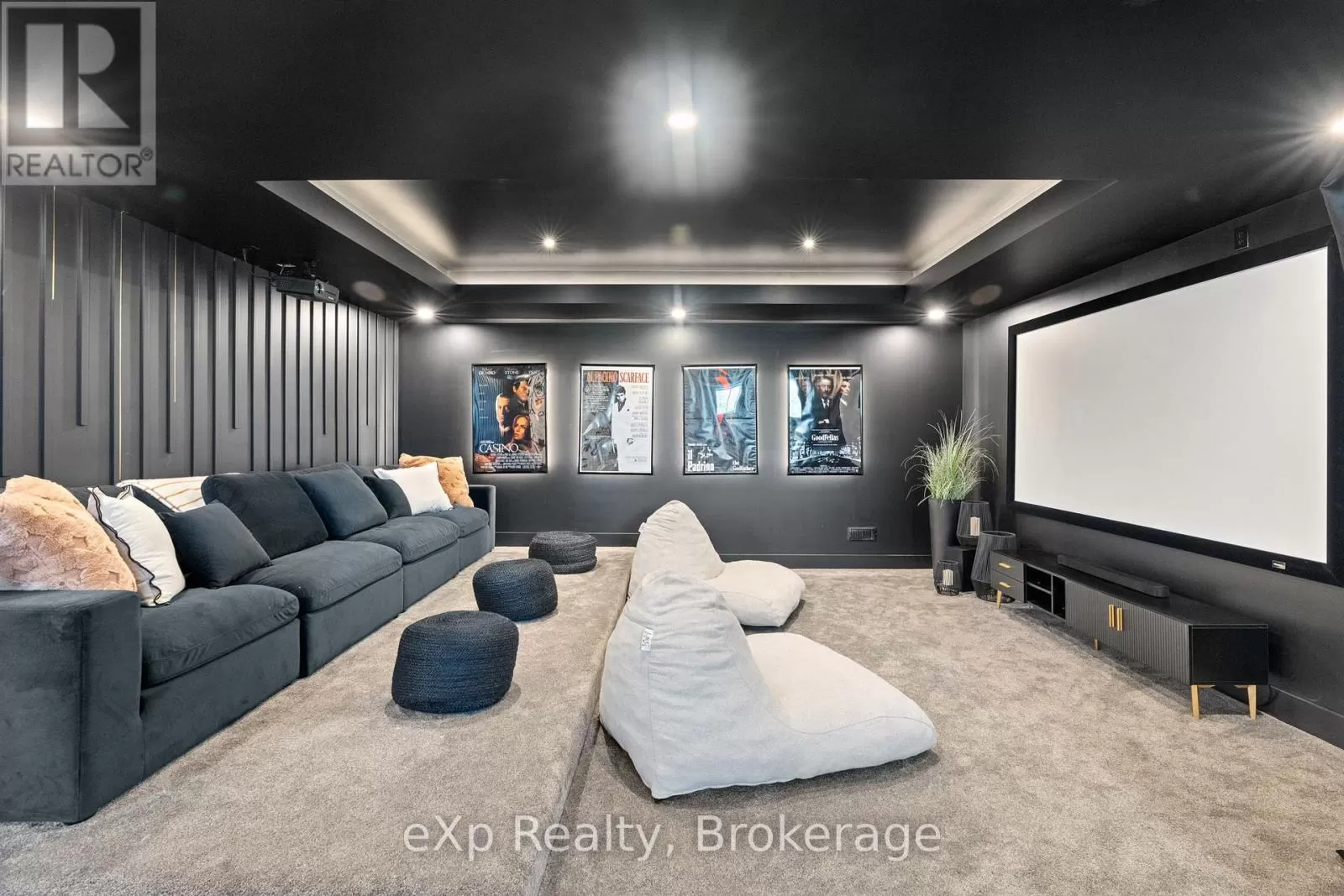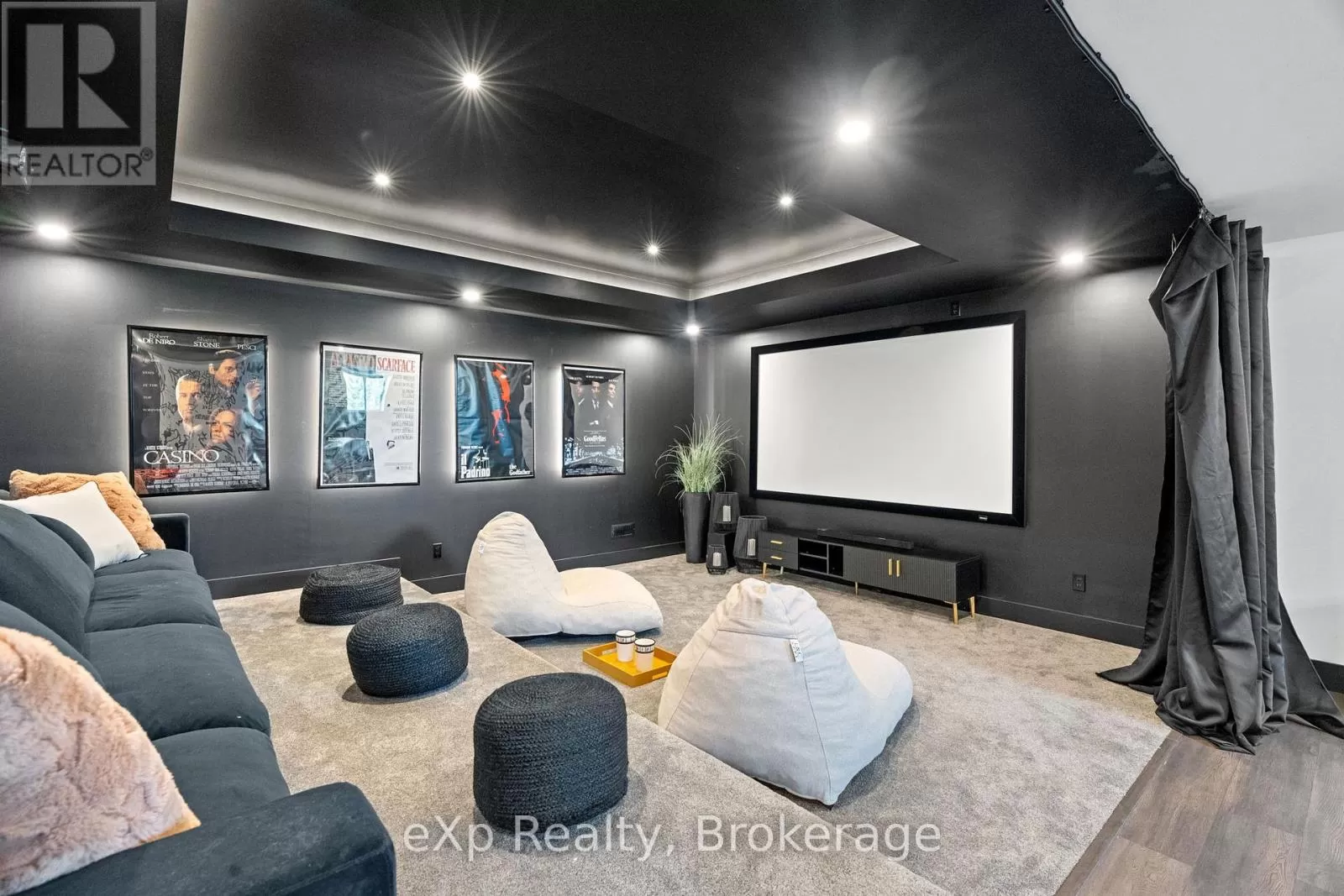 Cross Streets: Mornington St. ** Directions: Mornington St to O.J Gaffney Dr. This standout residence in Stratford is a 3,717 sq ft architectural masterpiece that commands attention from the moment you arrive. Newly built in 2024, this luxury single-detached home blends timeless design with modern sophistication. Every detail has been curated to impress, from its grand curb appeal to its meticulously crafted interior finishes. This fully furnished residence is thoughtfully designed, making it ideal for families seeking both style and functionality. Boasting 4 spacious bedrooms plus a loft and 4.5 bathrooms, this home offers plenty of room for everyone. The open-concept main floor features a stunning kitchen, perfect for culinary enthusiasts and entertaining guests. Convenience is paramount with a main floor laundry area designed to simplify your daily routine. The fully finished basement is an entertainer's dream, complete with a movie room for immersive viewing experiences and a dedicated home gym, allowing you to stay active without leaving the comfort of your own home. Step outside to enjoy two balconies that provide peaceful spots to unwind, plus a large, partially covered back deck perfect for alfresco dining, summer barbecues, or simply relaxing in a beautiful outdoor setting. Located in one of Stratford's newest neighbourhoods, offering convenient access to Kitchener-Waterloo, ideal for commuters looking to enjoy luxury living just outside the city. Move in and start living your dream lifestyle immediately. This home is sold fully furnished with stylish decor that complements the architecture perfectly. (id:27476)