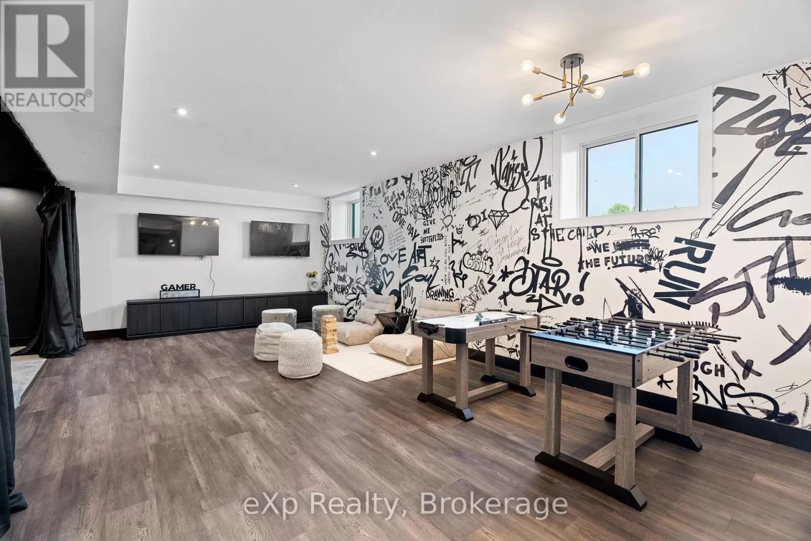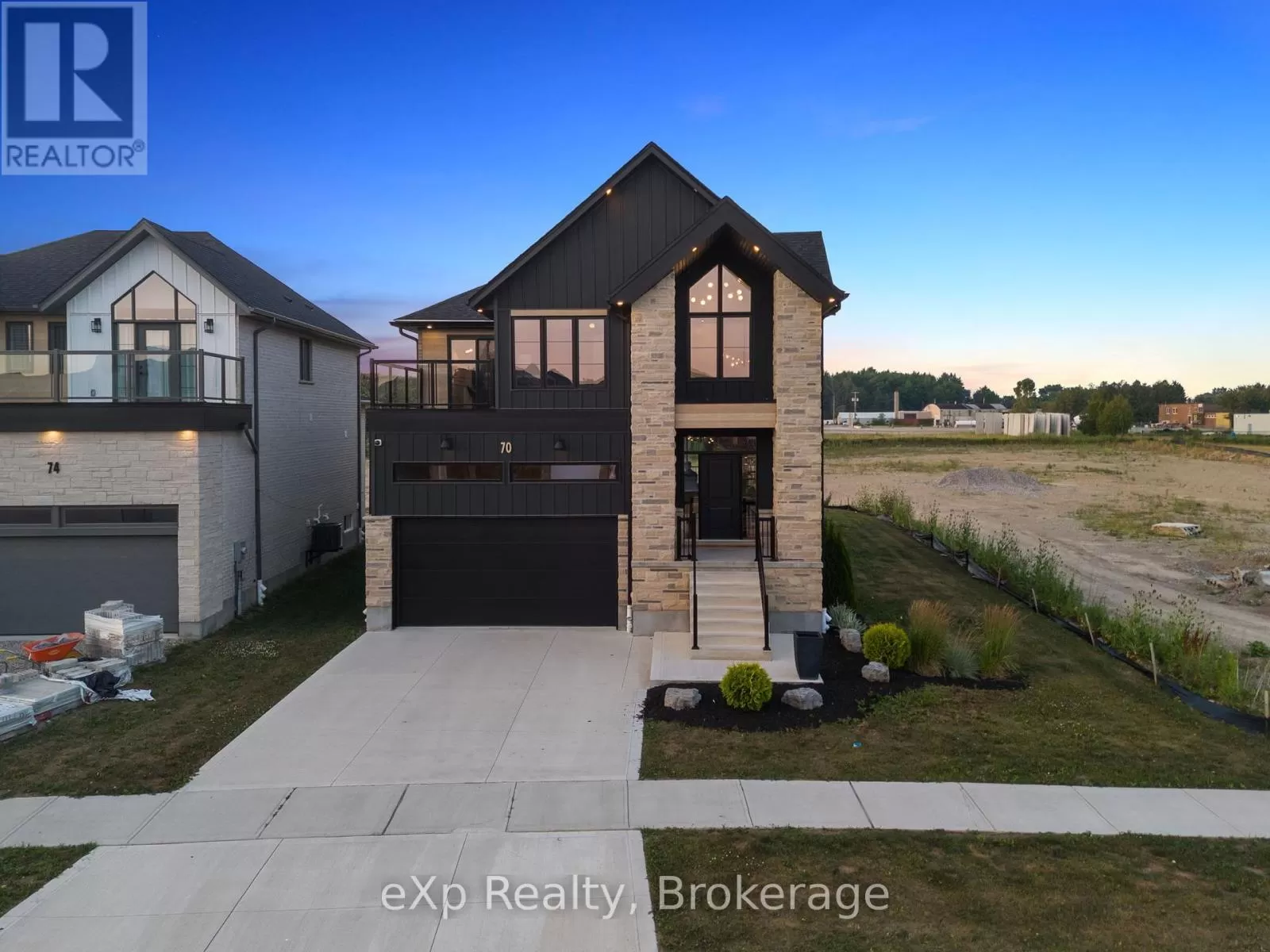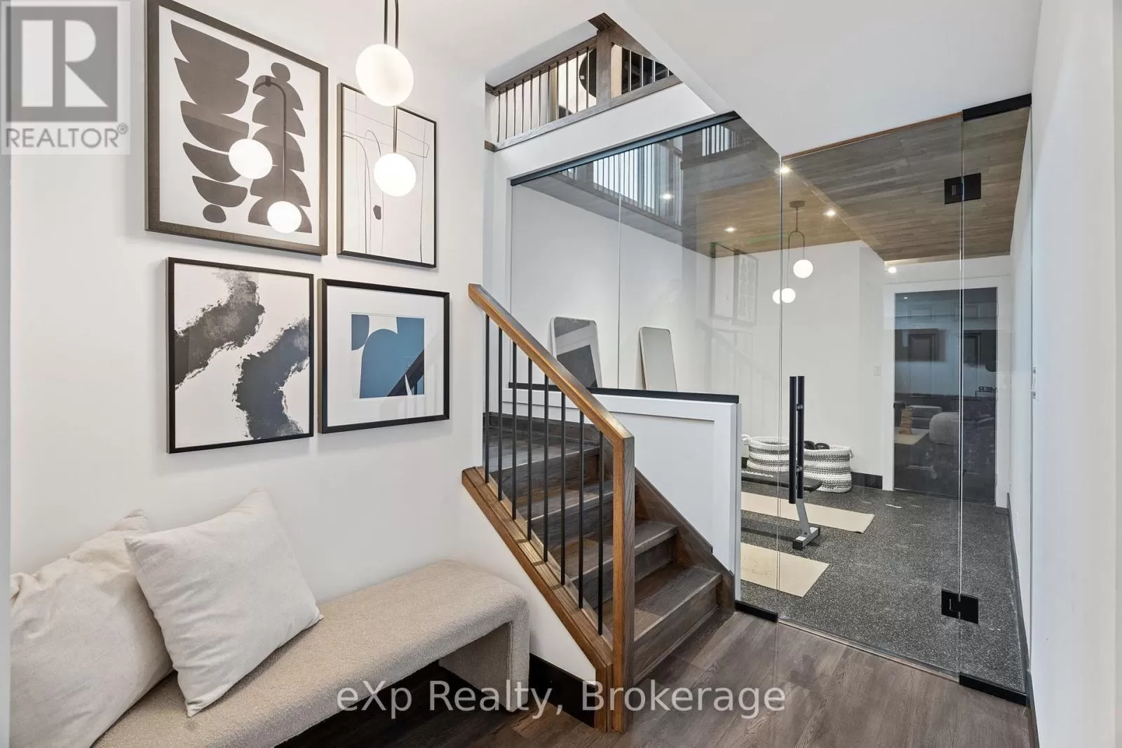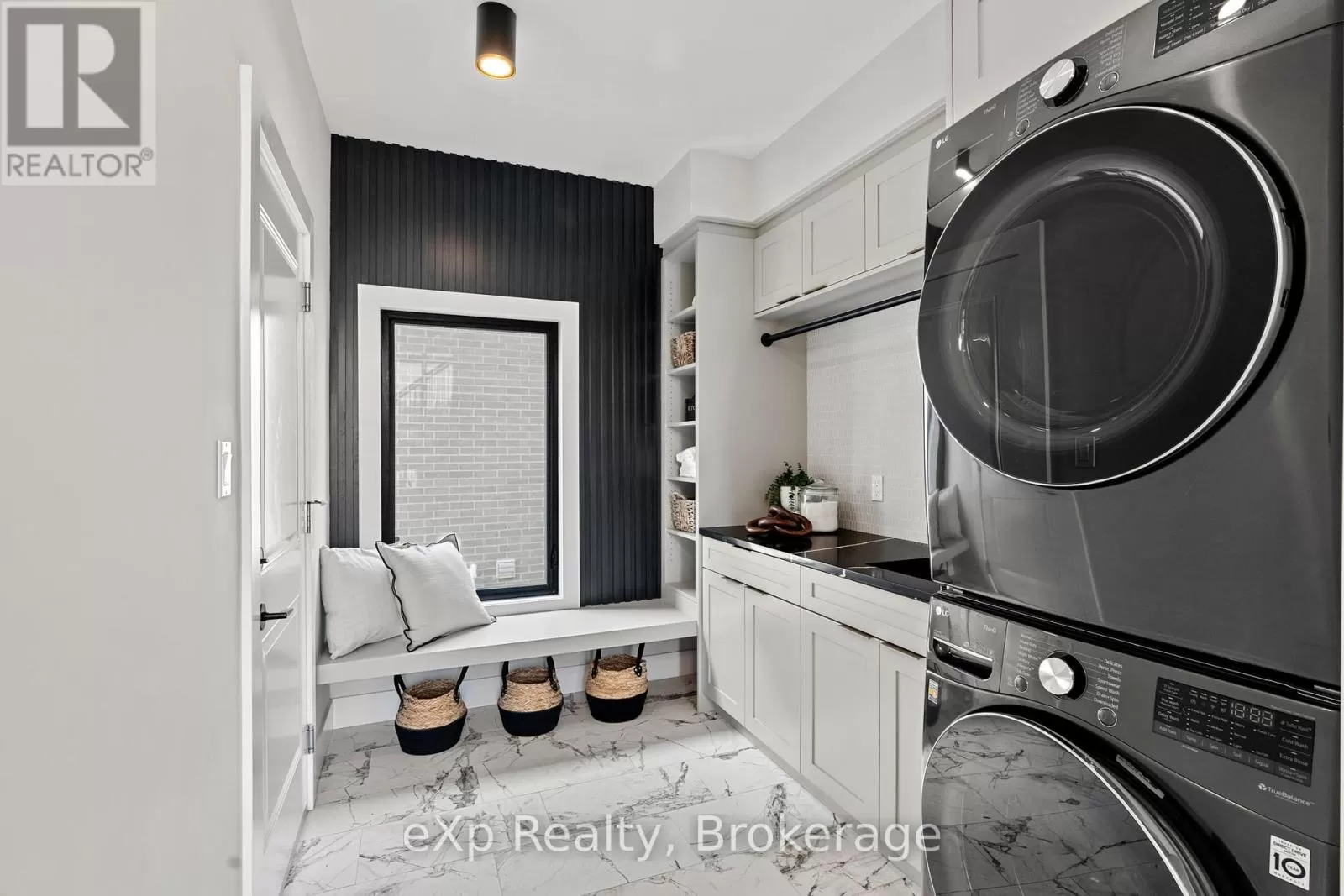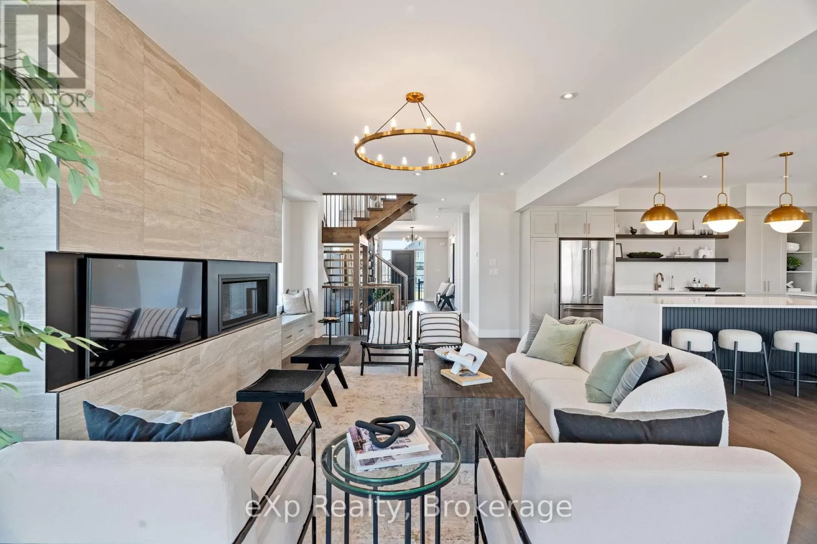 Cross Streets: Mornington St. ** Directions: Mornington St to O.J Gaffney Dr. This standout residence in Stratford is a 3,717 sq ft architectural masterpiece that commands attention from the moment you arrive. Newly built in 2024, this luxury single-detached home blends timeless design with modern sophistication. Every detail has been curated to impress, from its grand curb appeal to its meticulously crafted interior finishes. This fully furnished residence is thoughtfully designed, making it ideal for families seeking both style and functionality. Boasting 4 spacious bedrooms plus a loft and 4.5 bathrooms, this home offers plenty of room for everyone. The open-concept main floor features a stunning kitchen, perfect for culinary enthusiasts and entertaining guests. Convenience is paramount with a main floor laundry area designed to simplify your daily routine. The fully finished basement is an entertainer's dream, complete with a movie room for immersive viewing experiences and a dedicated home gym, allowing you to stay active without leaving the comfort of your own home. Step outside to enjoy two balconies that provide peaceful spots to unwind, plus a large, partially covered back deck perfect for alfresco dining, summer barbecues, or simply relaxing in a beautiful outdoor setting. Located in one of Stratford's newest neighbourhoods, offering convenient access to Kitchener-Waterloo, ideal for commuters looking to enjoy luxury living just outside the city. Move in and start living your dream lifestyle immediately. This home is sold fully furnished with stylish decor that complements the architecture perfectly. (id:27476)
