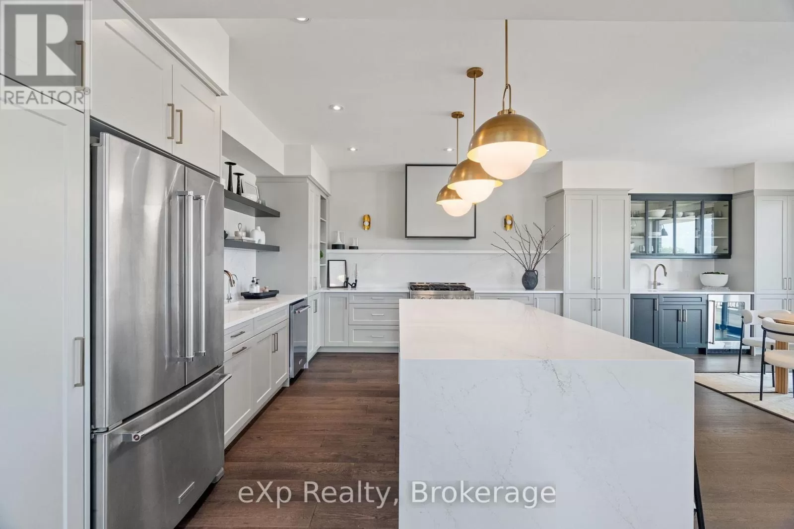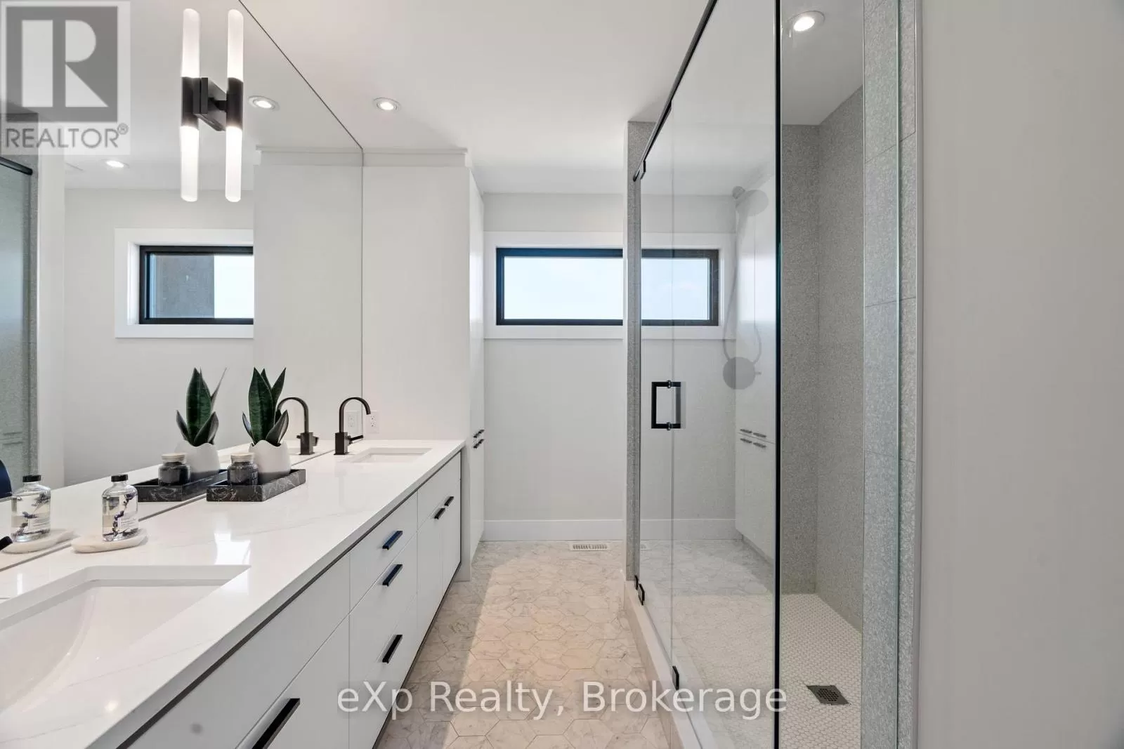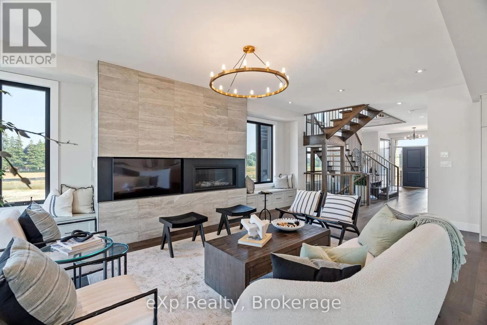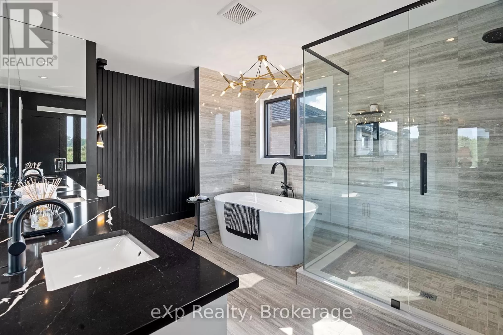 Cross Streets: Mornington St. ** Directions: Mornington St to O.J Gaffney Dr. This standout residence in Stratford is a 3,717 sq ft architectural masterpiece that commands attention from the moment you arrive. Newly built in 2024, this luxury single-detached home blends timeless design with modern sophistication. Every detail has been curated to impress, from its grand curb appeal to its meticulously crafted interior finishes. This fully furnished residence is thoughtfully designed, making it ideal for families seeking both style and functionality. Boasting 4 spacious bedrooms plus a loft and 4.5 bathrooms, this home offers plenty of room for everyone. The open-concept main floor features a stunning kitchen, perfect for culinary enthusiasts and entertaining guests. Convenience is paramount with a main floor laundry area designed to simplify your daily routine. The fully finished basement is an entertainer's dream, complete with a movie room for immersive viewing experiences and a dedicated home gym, allowing you to stay active without leaving the comfort of your own home. Step outside to enjoy two balconies that provide peaceful spots to unwind, plus a large, partially covered back deck perfect for alfresco dining, summer barbecues, or simply relaxing in a beautiful outdoor setting. Located in one of Stratford's newest neighbourhoods, offering convenient access to Kitchener-Waterloo, ideal for commuters looking to enjoy luxury living just outside the city. Move in and start living your dream lifestyle immediately. This home is sold fully furnished with stylish decor that complements the architecture perfectly. (id:27476)