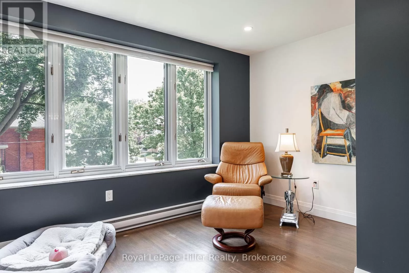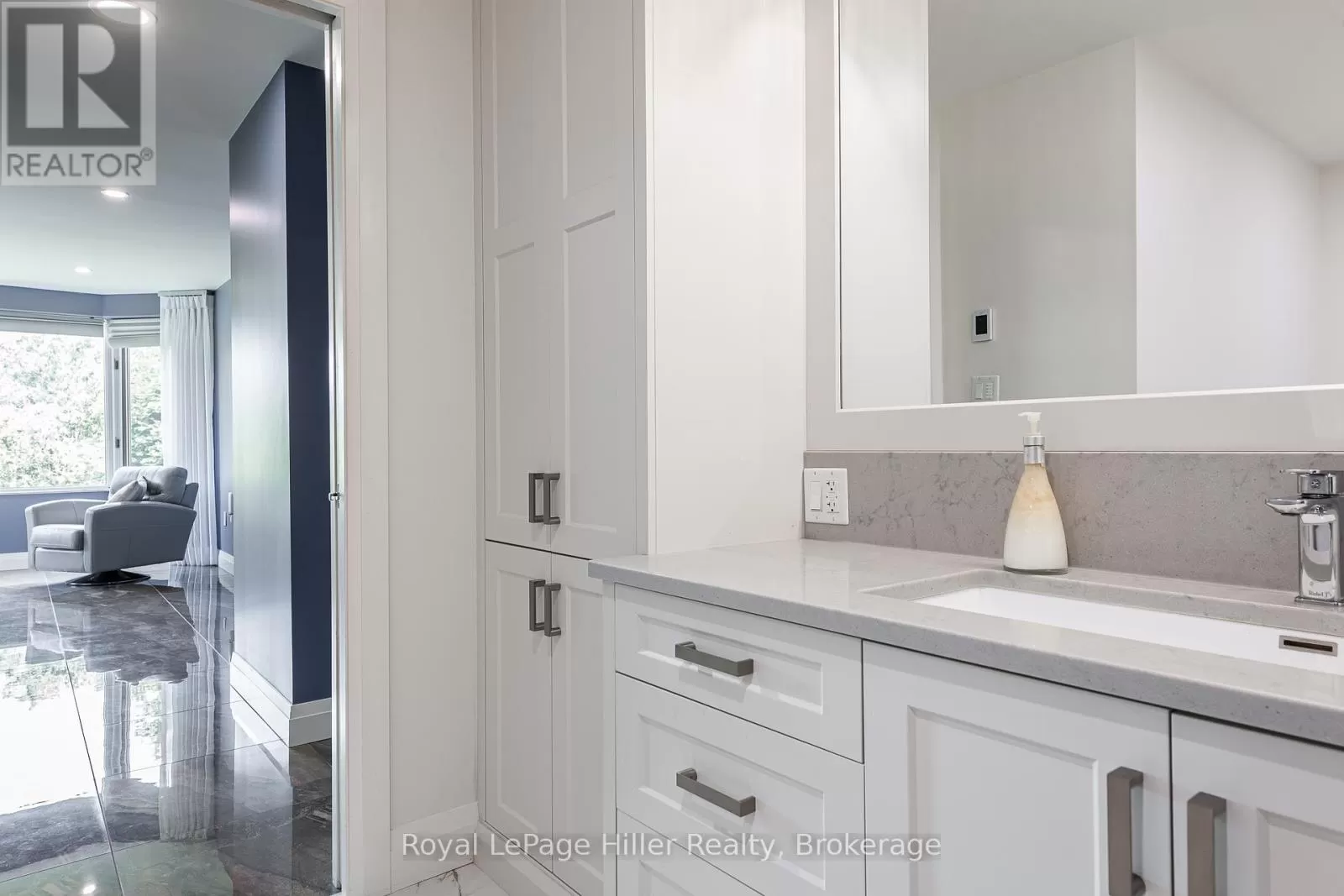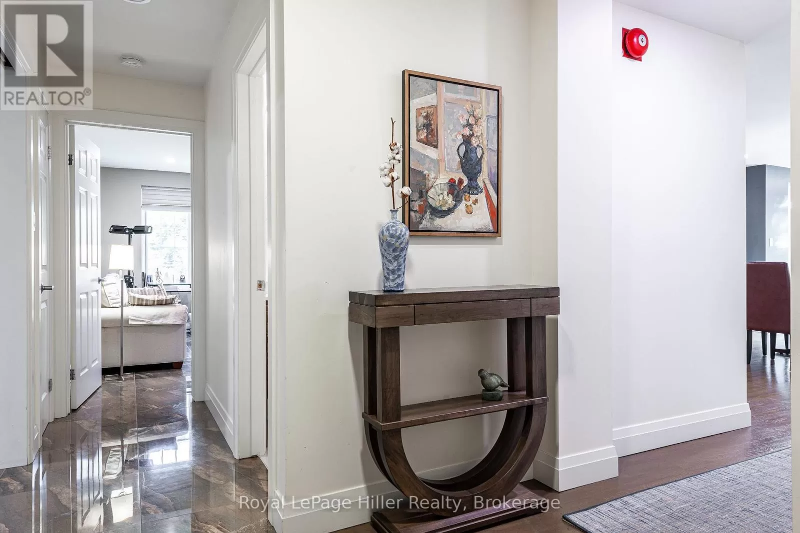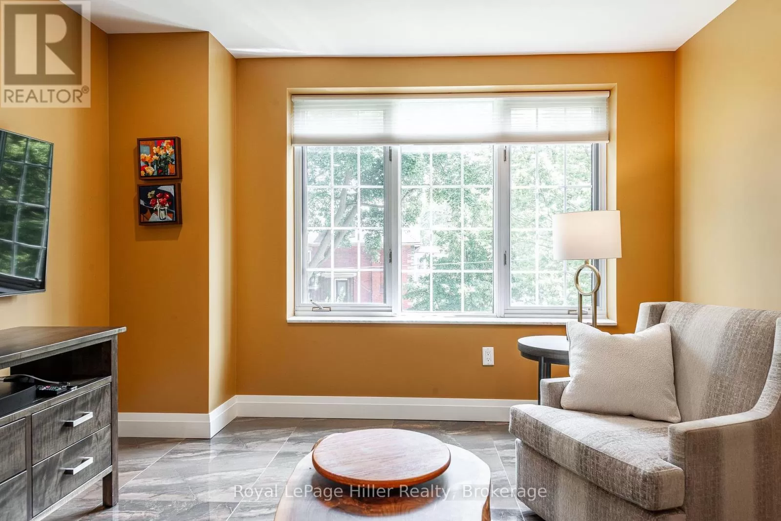 Cross Streets: Corner of Front and Ballantyne. ** Directions: Corner of Front St and Ballantyne St. Sophisticated condo living in Stratford's most sought-after location; The Huntingdon. Overlooks the Avon River and Art in the Park. Steps to the Stratford Festival and the new Tom Patterson Theatre. Minutes from downtown where you can enjoy the local restaurants and shops. This 1841 sq ft condo is on the second floor with both North (river facing) and East (morning sun) exposure. The condo has been extensively renovated in 2019 making this large bright space a piece of art with calming decor throughout. Heated flooring in Bedrooms, Den and Main Bathroom. Upscale kitchen with all new high-end Bosch (2 yrs old) and Miele appliances, new cabinetry and quartz countertops. Pantry area provides storage and laundry with stacked Miele washer/dryer. The office nook/sunroom has an entrance to the East side balcony where you can sit and enjoy the energetic surroundings. The Dining area and Living area boast refinished oak floors and large windows with views of the Avon River. Both bathrooms have been refreshed with high end finishings. The Primary bedroom has lots to offer in space including a dressing room. Includes one underground secured parking spot. This is truly a well designed living space. Nothing is left to do but move in and enjoy ALL that Stratford has to offer. Give your REALTOR a call today to view this beautiful "home". (id:27476)