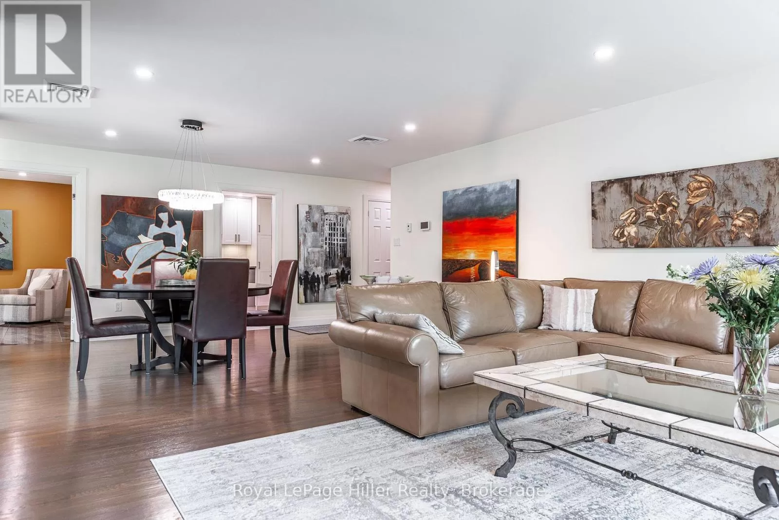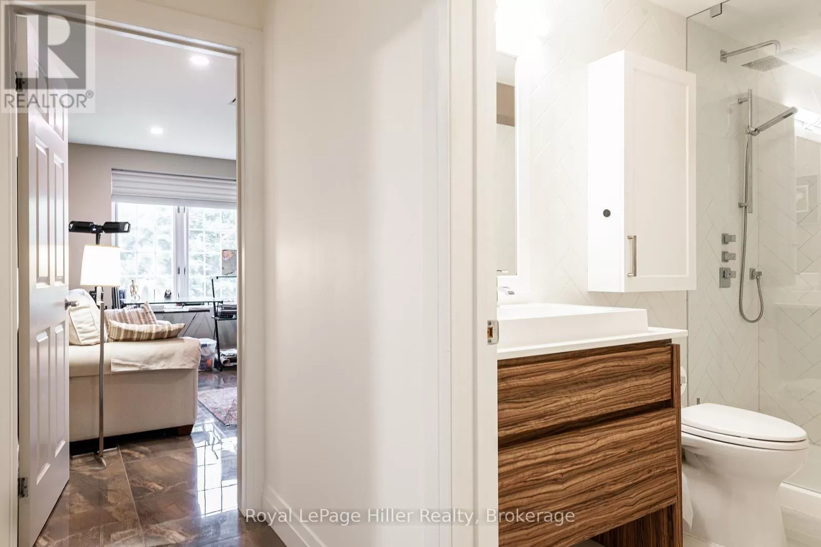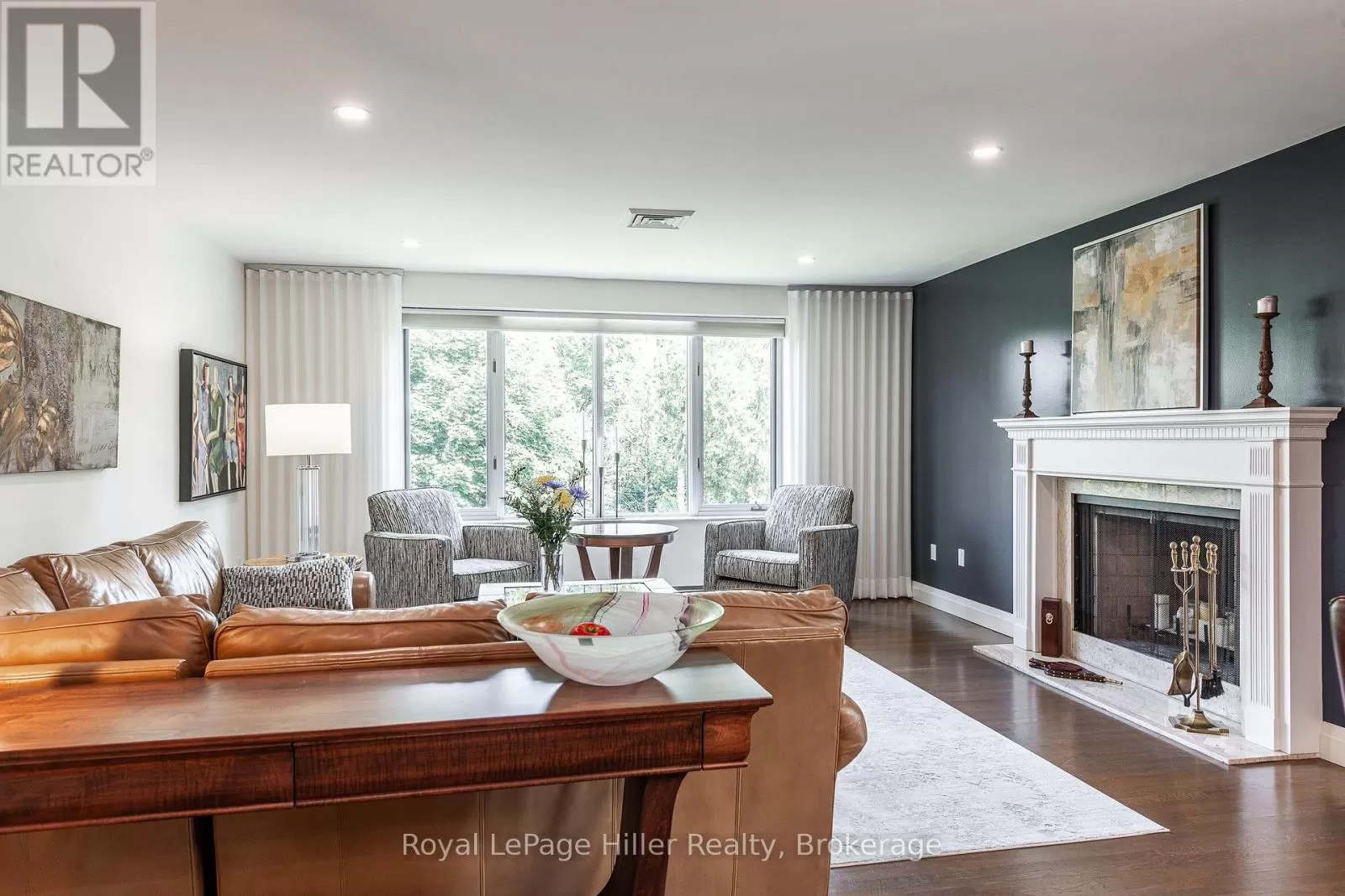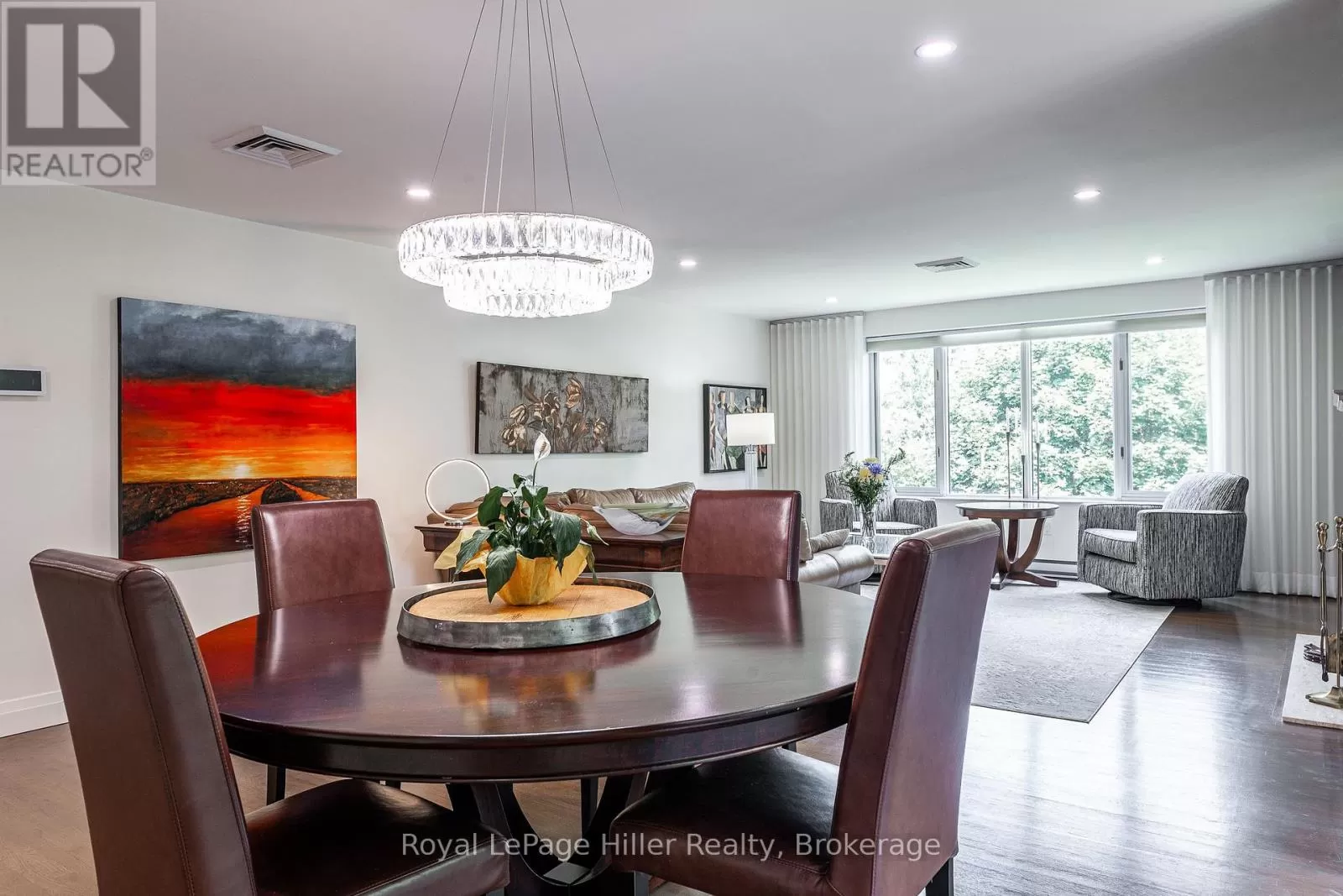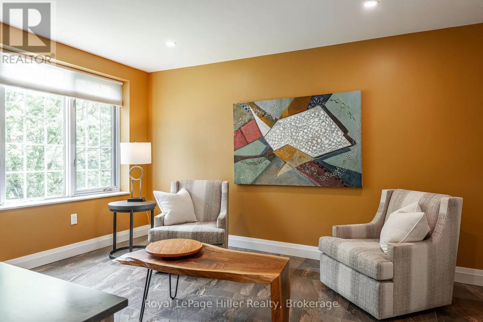Cross Streets: Corner of Front and Ballantyne. ** Directions: Corner of Front St and Ballantyne St. Sophisticated condo living in Stratford's most sought-after location; The Huntingdon. Overlooks the Avon River and Art in the Park. Steps to the Stratford Festival and the new Tom Patterson Theatre. Minutes from downtown where you can enjoy the local restaurants and shops. This 1841 sq ft condo is on the second floor with both North (river facing) and East (morning sun) exposure. The condo has been extensively renovated in 2019 making this large bright space a piece of art with calming decor throughout. Heated flooring in Bedrooms, Den and Main Bathroom. Upscale kitchen with all new high-end Bosch (2 yrs old) and Miele appliances, new cabinetry and quartz countertops. Pantry area provides storage and laundry with stacked Miele washer/dryer. The office nook/sunroom has an entrance to the East side balcony where you can sit and enjoy the energetic surroundings. The Dining area and Living area boast refinished oak floors and large windows with views of the Avon River. Both bathrooms have been refreshed with high end finishings. The Primary bedroom has lots to offer in space including a dressing room. Includes one underground secured parking spot. This is truly a well designed living space. Nothing is left to do but move in and enjoy ALL that Stratford has to offer. Give your REALTOR a call today to view this beautiful "home". (id:27476)