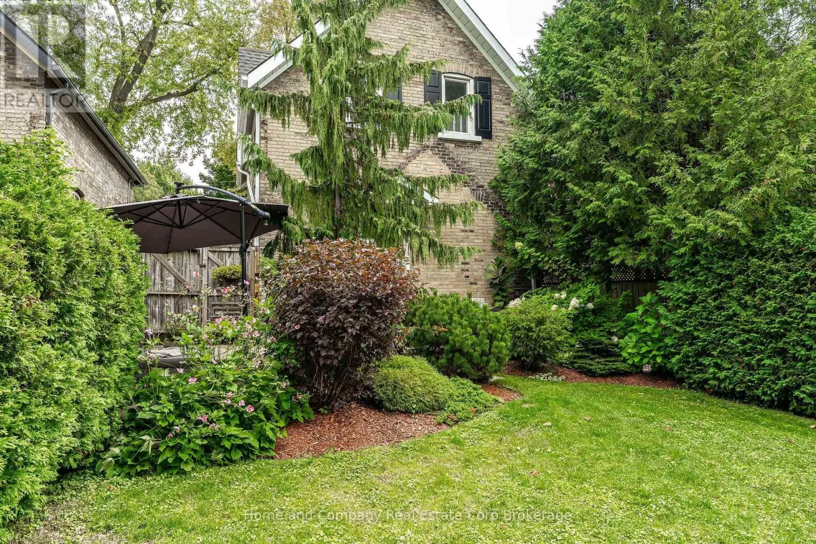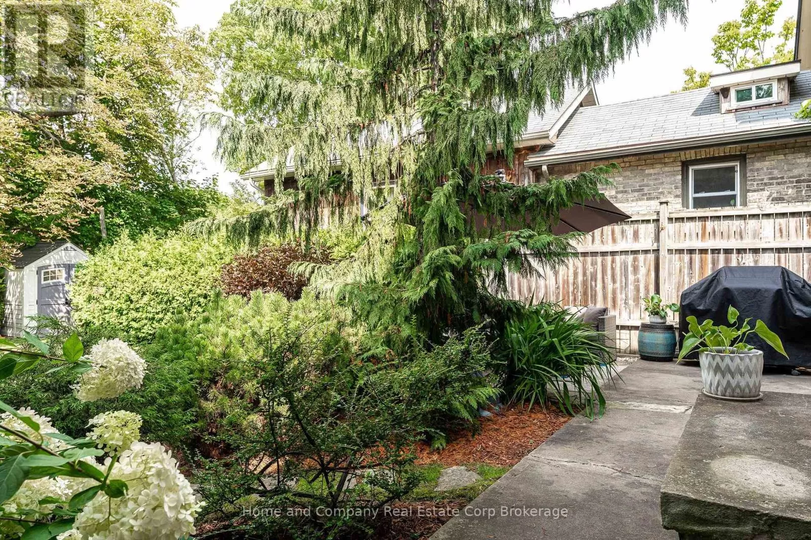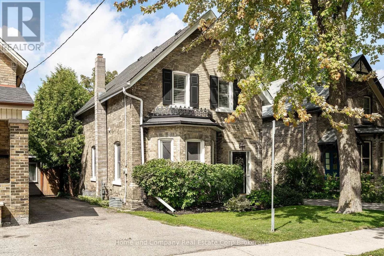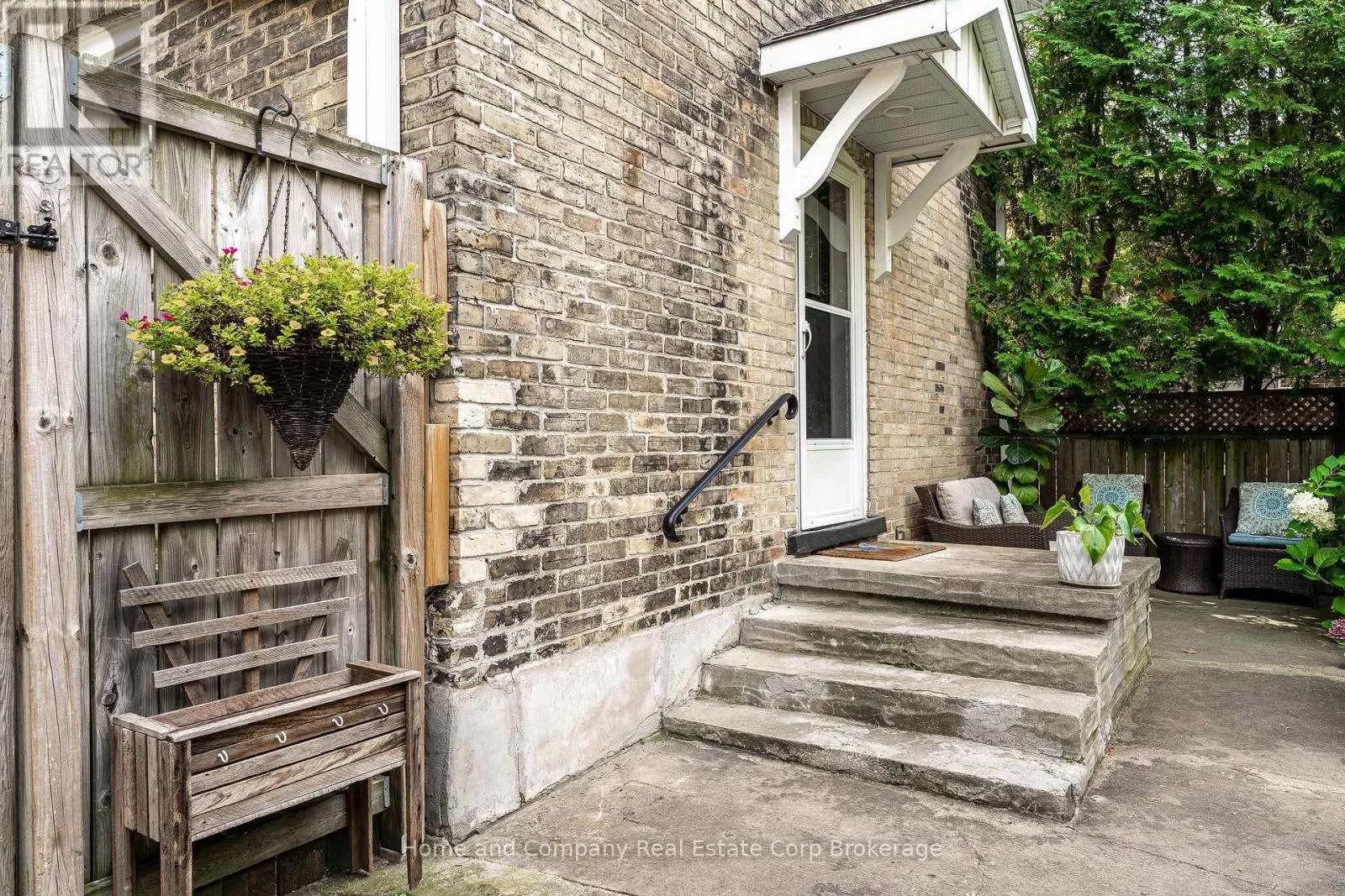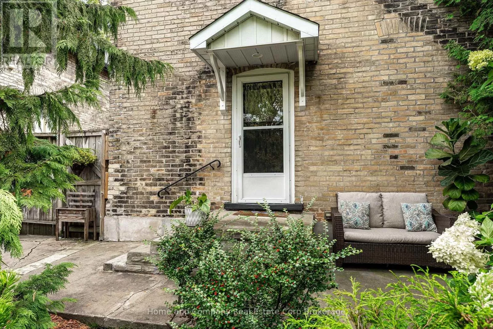 Cross Streets: St. David and Wellington street. ** Directions: South off of St. David. Welcome to this stunning yellow brick century home, perfectly blending timeless charm and modern upgrades, all just walking distance away from the vibrant Stratford downtown core. With beautiful curb appeal, original pine floors, and timeless trim throughout, this home is sure to impress. Step inside to an incredible foyer with stylish black and white tile flooring that flows seamlessly into the updated kitchen that includes a gas stove, quartz countertops, a granite sink, newer appliances, and direct access to a fully fenced backyard where you can enjoy year-round privacy on the spacious concrete patio and lots of green space for kids and pets. The incredible layout also features an inviting living room and a separate dining room perfect for family gatherings and entertaining. Upstairs, the oversized primary bedroom boasts ample closet space, complemented by a second well-sized bedroom. The home includes two updated bathrooms, including an upstairs laundry room for added convenience. Additional highlights include a large basement perfect for storage, shed in the backyard, all new eaves, and private parking. With everything updated and move-in ready, this beautifully maintained home is an exceptional opportunity to be yours! (id:27476)