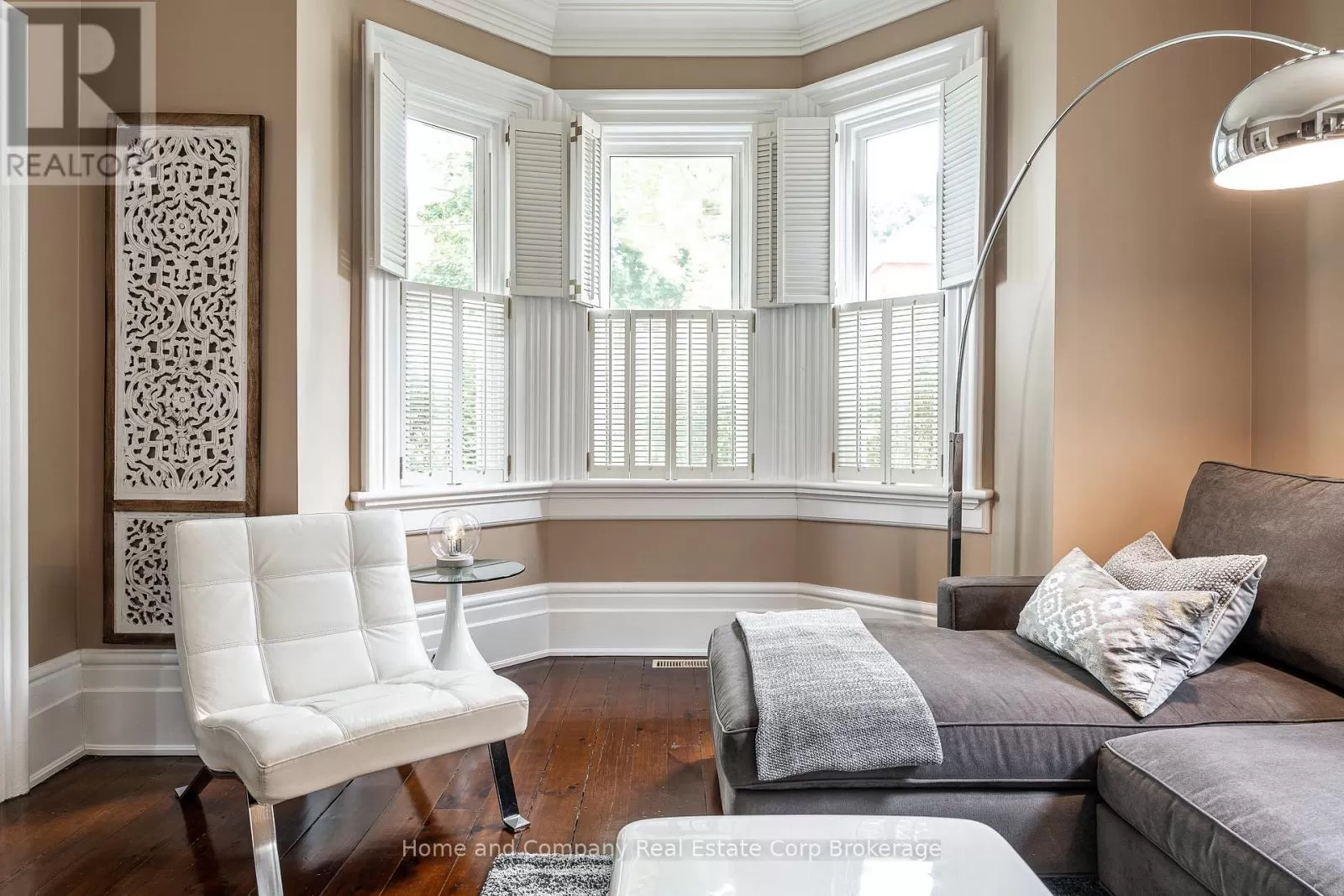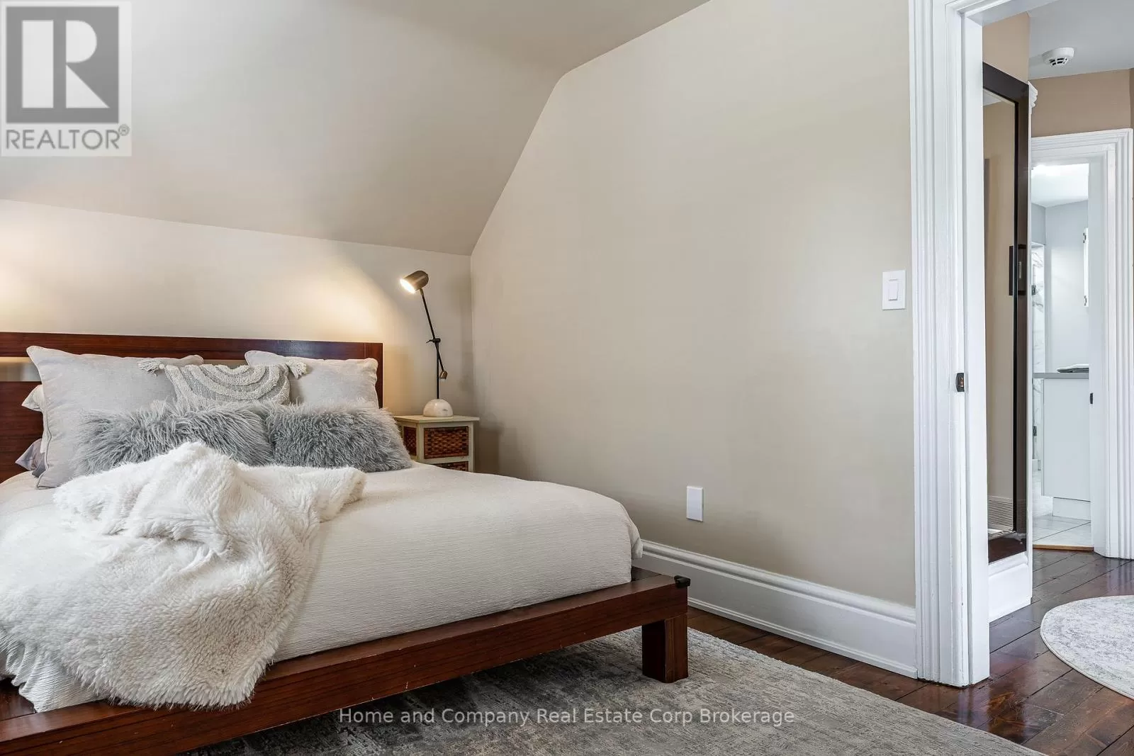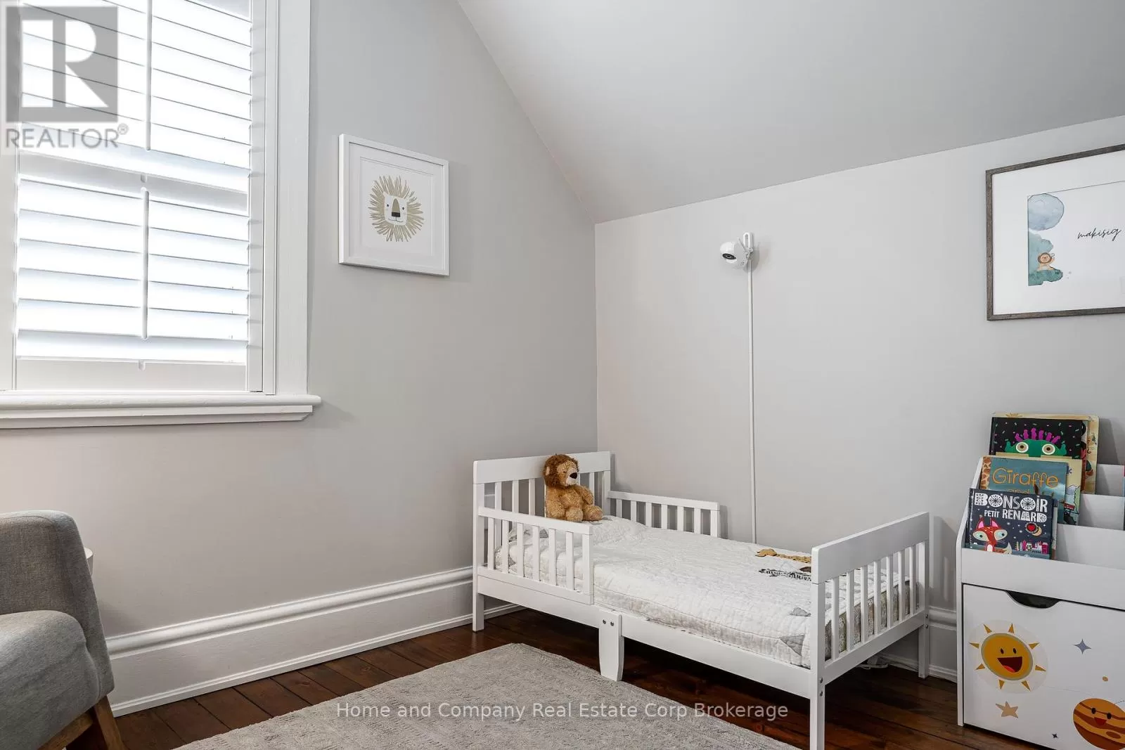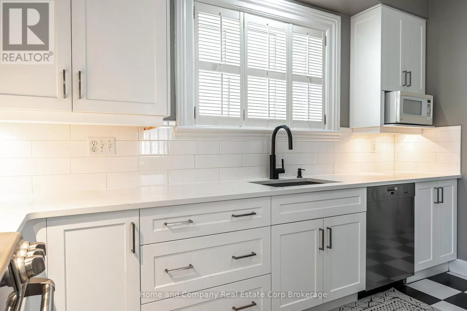 Cross Streets: St. David and Wellington street. ** Directions: South off of St. David. Welcome to this stunning yellow brick century home, perfectly blending timeless charm and modern upgrades, all just walking distance away from the vibrant Stratford downtown core. With beautiful curb appeal, original pine floors, and timeless trim throughout, this home is sure to impress. Step inside to an incredible foyer with stylish black and white tile flooring that flows seamlessly into the updated kitchen that includes a gas stove, quartz countertops, a granite sink, newer appliances, and direct access to a fully fenced backyard where you can enjoy year-round privacy on the spacious concrete patio and lots of green space for kids and pets. The incredible layout also features an inviting living room and a separate dining room perfect for family gatherings and entertaining. Upstairs, the oversized primary bedroom boasts ample closet space, complemented by a second well-sized bedroom. The home includes two updated bathrooms, including an upstairs laundry room for added convenience. Additional highlights include a large basement perfect for storage, shed in the backyard, all new eaves, and private parking. With everything updated and move-in ready, this beautifully maintained home is an exceptional opportunity to be yours! (id:27476)