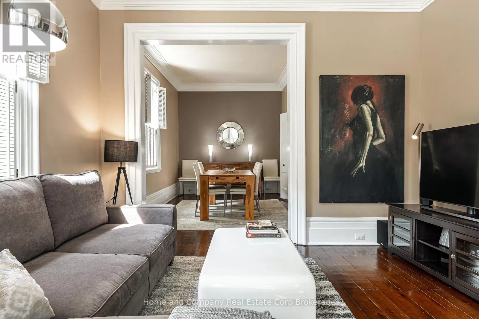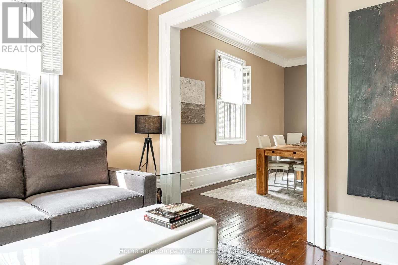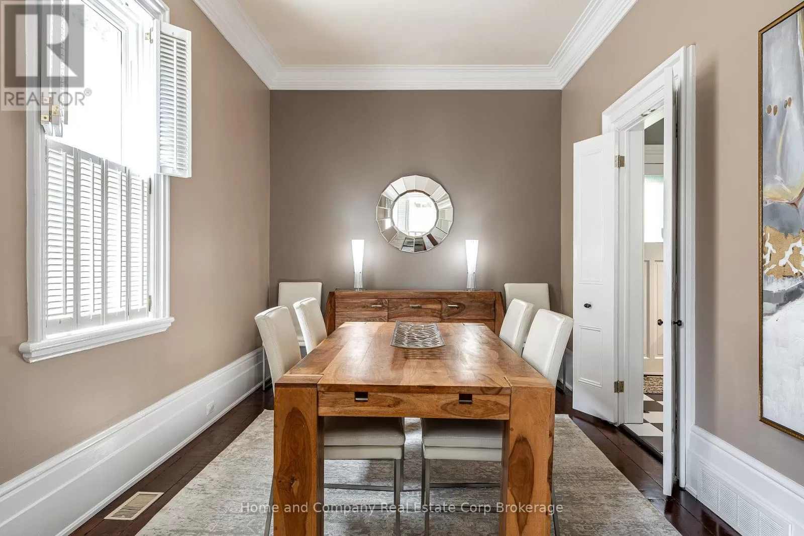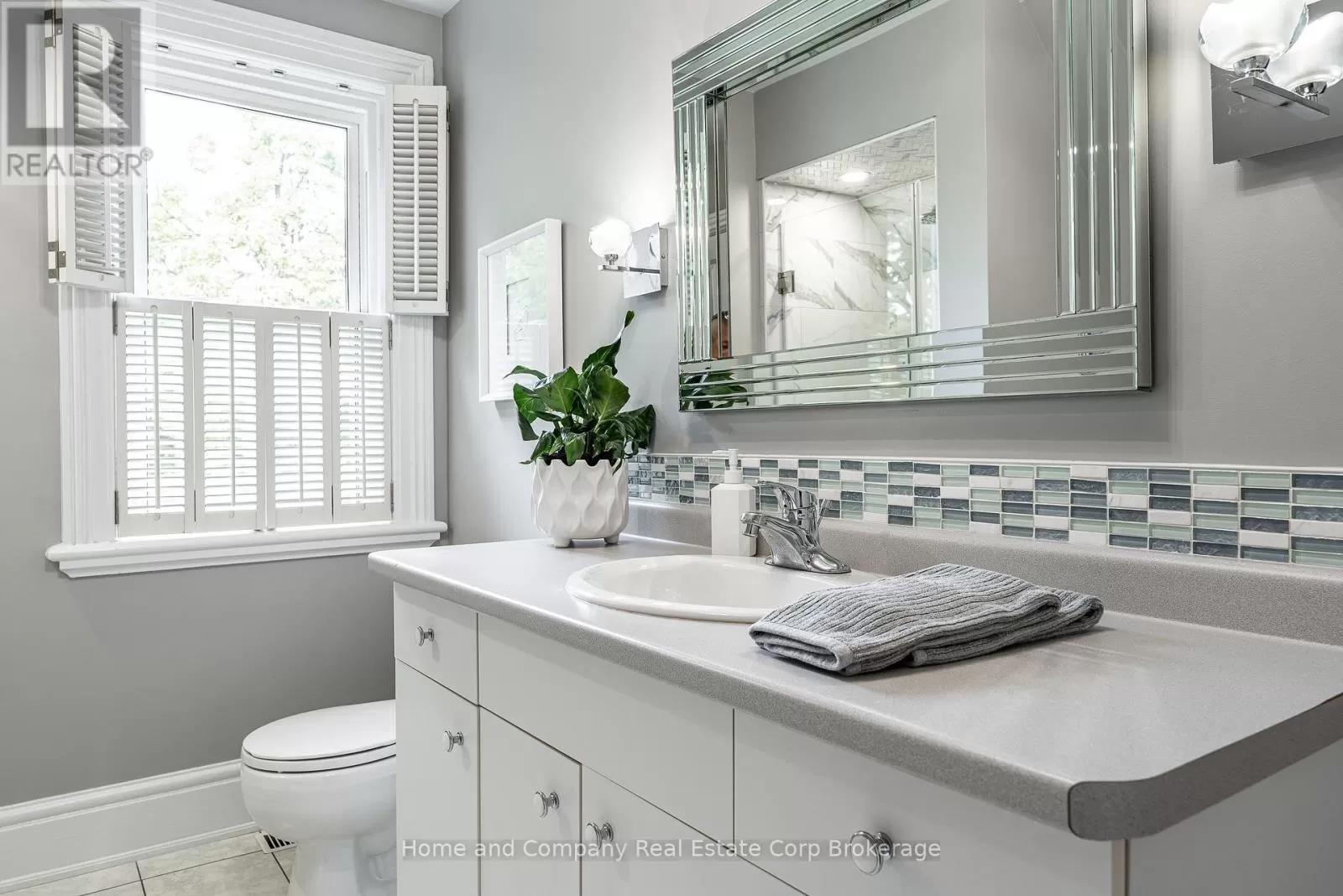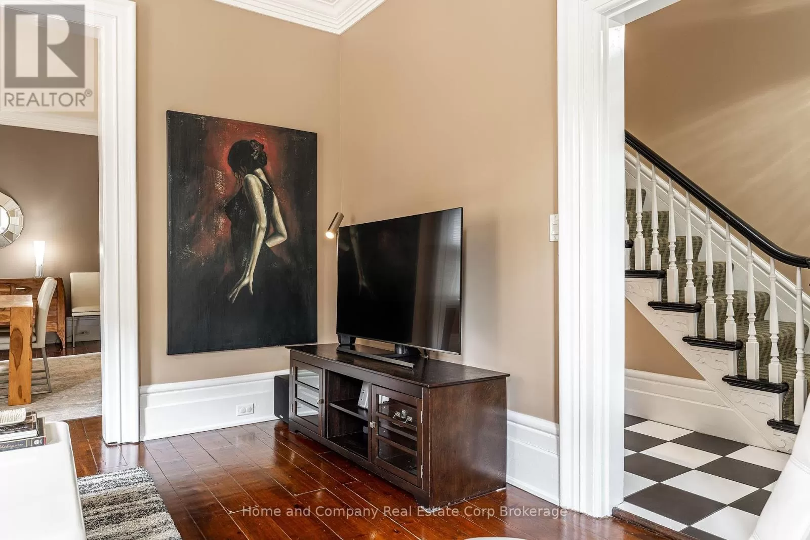 Cross Streets: St. David and Wellington street. ** Directions: South off of St. David. Welcome to this stunning yellow brick century home, perfectly blending timeless charm and modern upgrades, all just walking distance away from the vibrant Stratford downtown core. With beautiful curb appeal, original pine floors, and timeless trim throughout, this home is sure to impress. Step inside to an incredible foyer with stylish black and white tile flooring that flows seamlessly into the updated kitchen that includes a gas stove, quartz countertops, a granite sink, newer appliances, and direct access to a fully fenced backyard where you can enjoy year-round privacy on the spacious concrete patio and lots of green space for kids and pets. The incredible layout also features an inviting living room and a separate dining room perfect for family gatherings and entertaining. Upstairs, the oversized primary bedroom boasts ample closet space, complemented by a second well-sized bedroom. The home includes two updated bathrooms, including an upstairs laundry room for added convenience. Additional highlights include a large basement perfect for storage, shed in the backyard, all new eaves, and private parking. With everything updated and move-in ready, this beautifully maintained home is an exceptional opportunity to be yours! (id:27476)