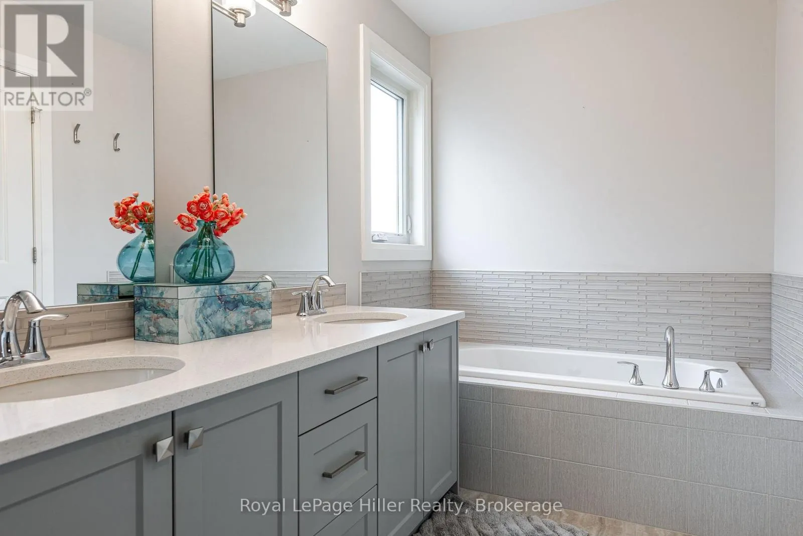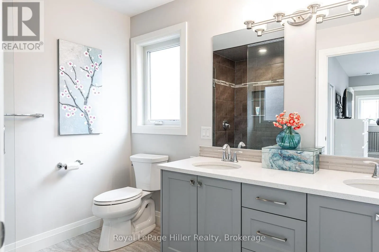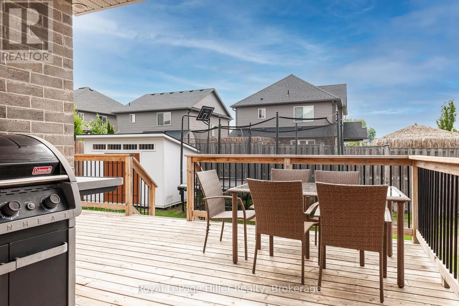 Cross Streets: Forman Ave and Orr Street. ** Directions: Off Forman Avenue, turn North onto Orr. Street. This nearly new build, move-in-ready home offers modern design, premium finishes, and comfort. Built by Pinnacle Quality Homes, this corner-lot residence in one of Stratfords family neighbourhoods delivers approximately 2,500 sq. ft. of stylish living space.The open-concept main floor boasts a chef-inspired kitchen with stone countertops, a chic tile backsplash, and abundant prep and storage space. The kitchen flows seamlessly into the dining and living rooms, anchored by a cozy gas fireplace. Sliding doors open to a wrap-around deck overlooking a fully fenced backyard, complete with gas BBQ hookup and private hot tub ideal for entertaining or unwinding under the stars. Upstairs, four generous bedrooms include a luxurious primary suite with walk-in closet and spa-like 5-piece ensuite featuring a glass shower and oversized soaking tub. The finished lower level adds 750 sq. ft. of versatile living, perfect for family movie nights with a built-in projector, drop-down screen, and convenient 2-piece bath. Additional features include main floor laundry/mudroom, a double car garage, private driveway, Avon school district, parks, advanced water filtering system and neighbourhood amenities. This home is truly move-in ready just unpack and start living. Don't miss your chance to own this exceptional property in a vibrant, family-friendly community. Contact your REALTOR today to schedule a private showing! (id:27476)