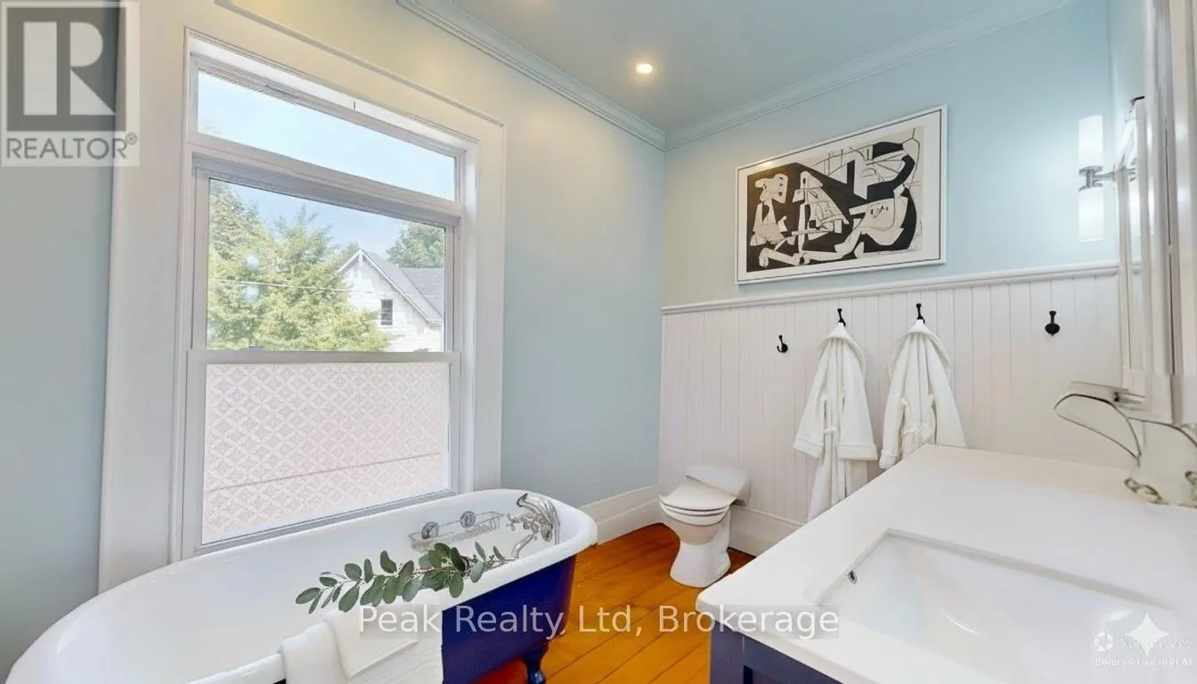 Cross Streets: Huron St. & Douglas St. ** Directions: Huron St. at Turn West onto Douglas St. look for sign. Also Parking off of T.J. dolan Dr. on back of property. Charming 1869 Home with River Views in Stratford. Enjoy tranquil views of the Avon River from your sunroom, deck, or second-floor balcony in this beautifully maintained 1869 home. Perfectly located just a short walk from downtown, you will have fine restaurants, boutique shops, and the city's vibrant cultural amenities right at your doorstep. Thoughtful updates blend seamlessly with the home's timeless historic character. The main floor welcomes you with an open staircase, a renovated kitchen and dining area, and a spacious living room with a cozy fireplace. A bright back addition adds convenience and charm, offering a main floor bathroom and a family room overlooking the river. Upstairs, the generous primary suite includes its own ensuite, complemented by two additional bedrooms and a full bathroom. Step out onto the upper balconies to enjoy panoramic views. Outside, relax on your private rear deck with gas fire pit and enjoy the mature landscaped gardens with direct access to the scenic River Walk Trails system, just minutes from Stratford's world-renowned Festival Theatre. (id:27476)