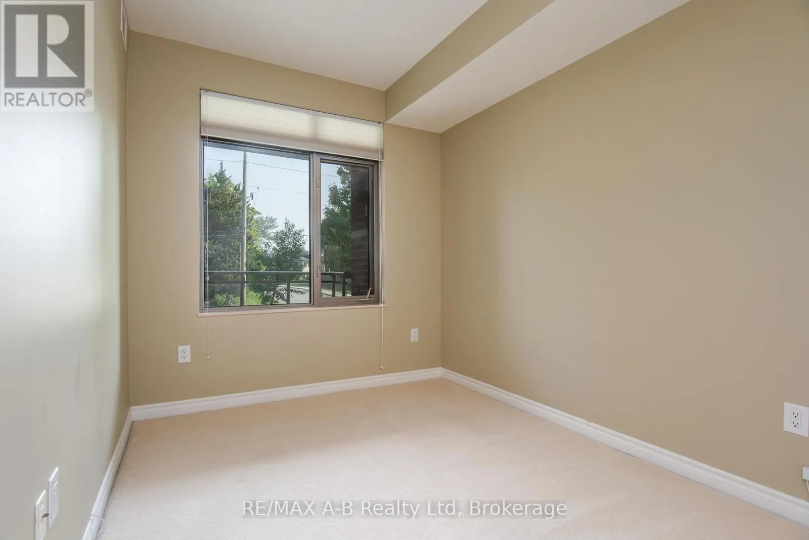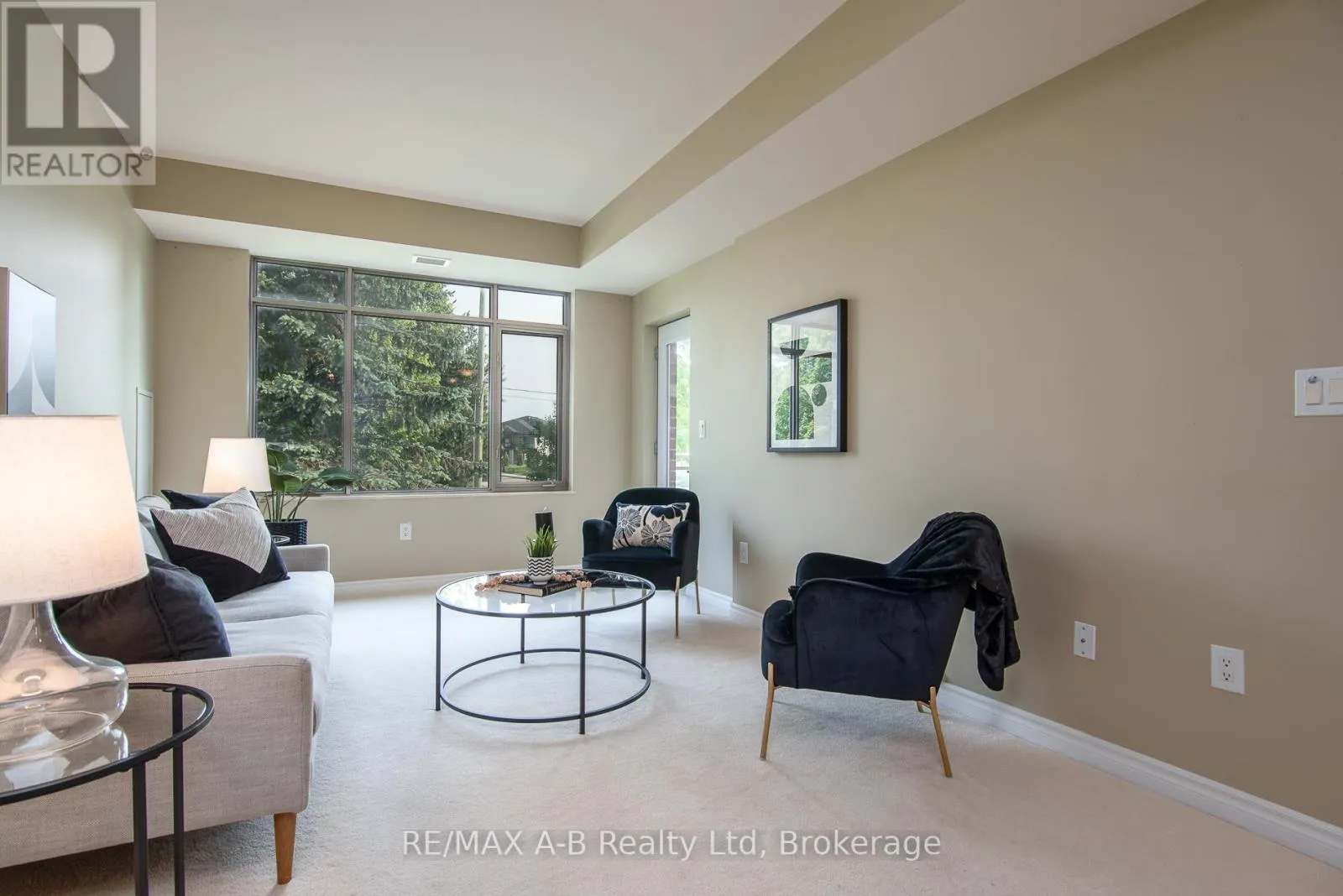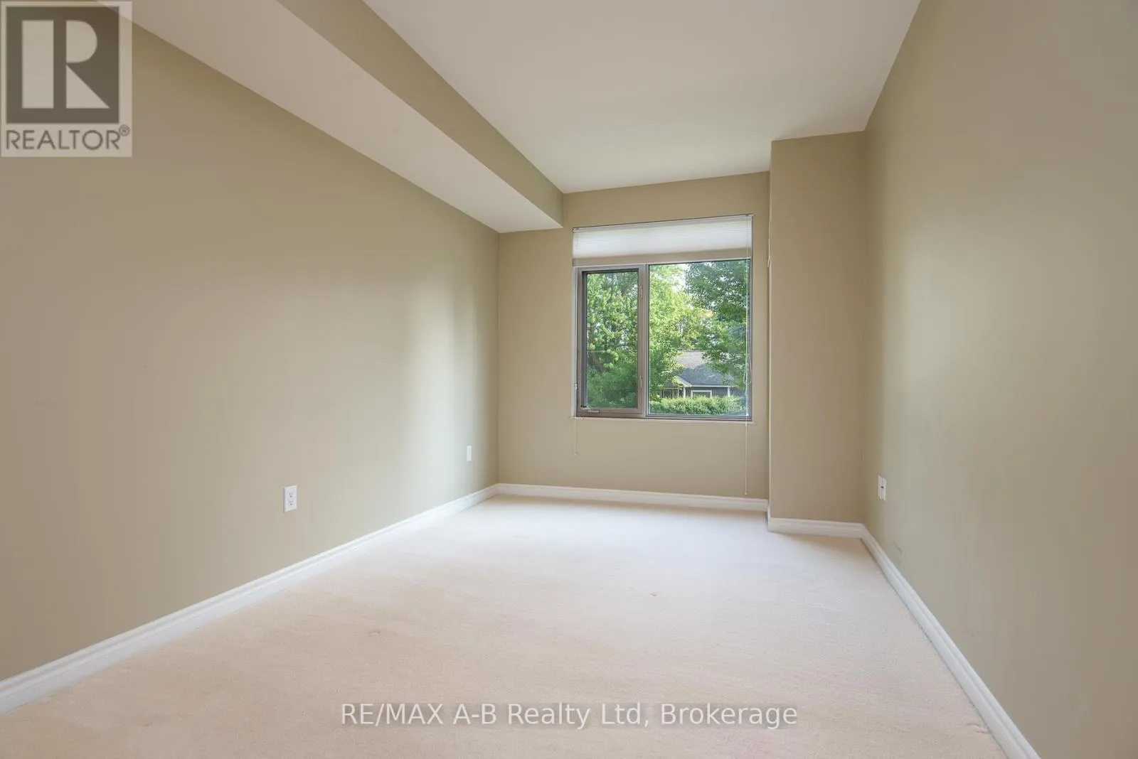 Cross Streets: Vivian/Line 37 and Romeo Street N. ** Directions: North on Romeo, building is at the end on the corner of Romeo and Vivian on the left-hand side. Situated in Stratford's growing north end, Stratford Terraces, offers you the best of condo living: a carefree lifestyle! With ground and interior maintenance, you're free to relax and enjoy the many amenities of this building; including underground parking, a party room with its own kitchen, a charming library room, an exercise room, as well as "in-coming/out-going" mail service. As for the unit itself... Welcome to unit 202! A 2-bedroom, 2-bath unit just under 1000 sq ft, with a spacious living/dining combination that provides access to your balcony. The kitchen comes with all appliances and a handy sit-at peninsula. The primary bedroom features a double, walk-through closet leading to the 4-piece ensuite. Your guests will be happy with the second bedroom and the main 3-piece bath. Add to this, the in-suite laundry and a flex room that makes for the perfect den or office. Feel safe and secure with this building's controlled entry and community-minded residents. (id:27476)