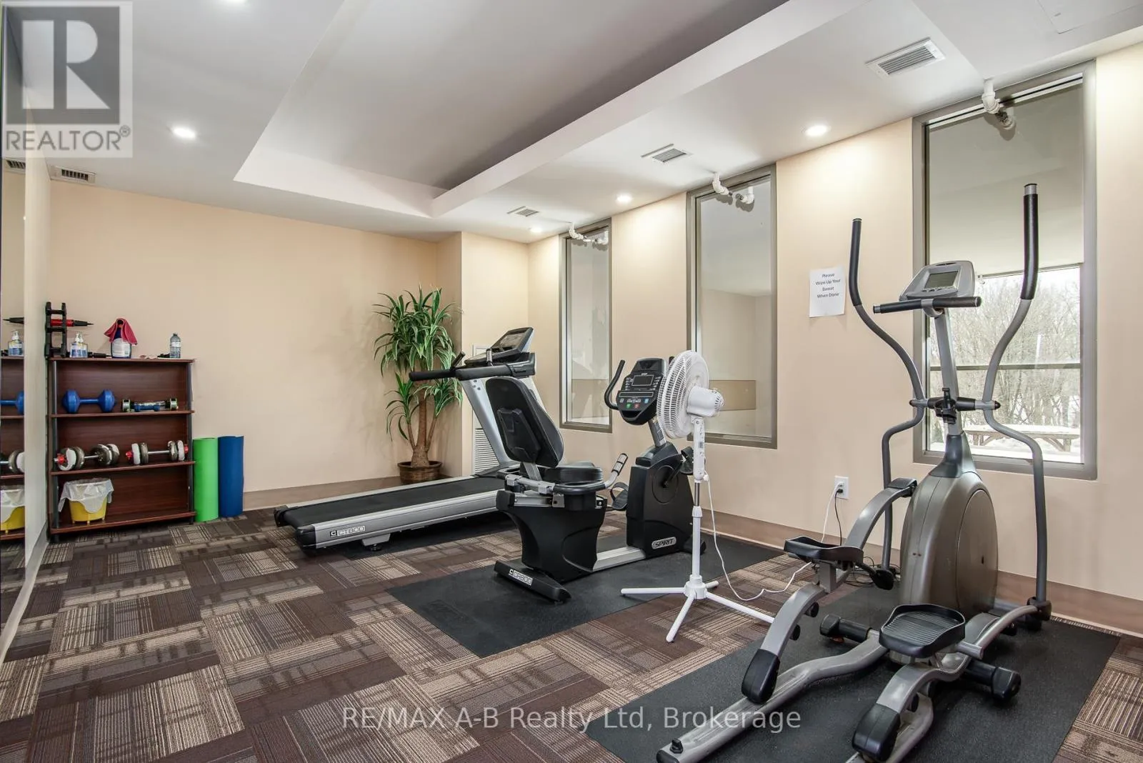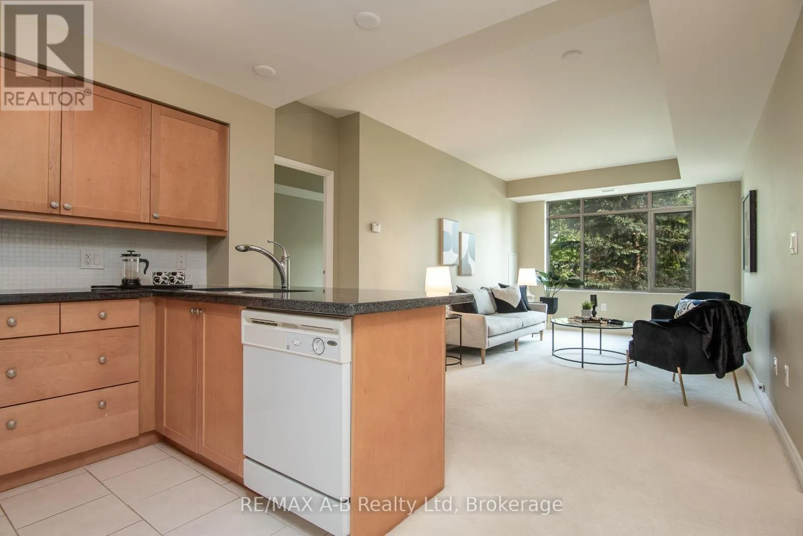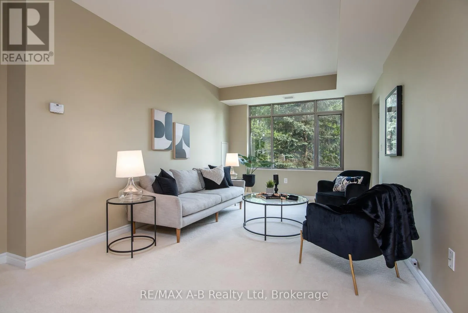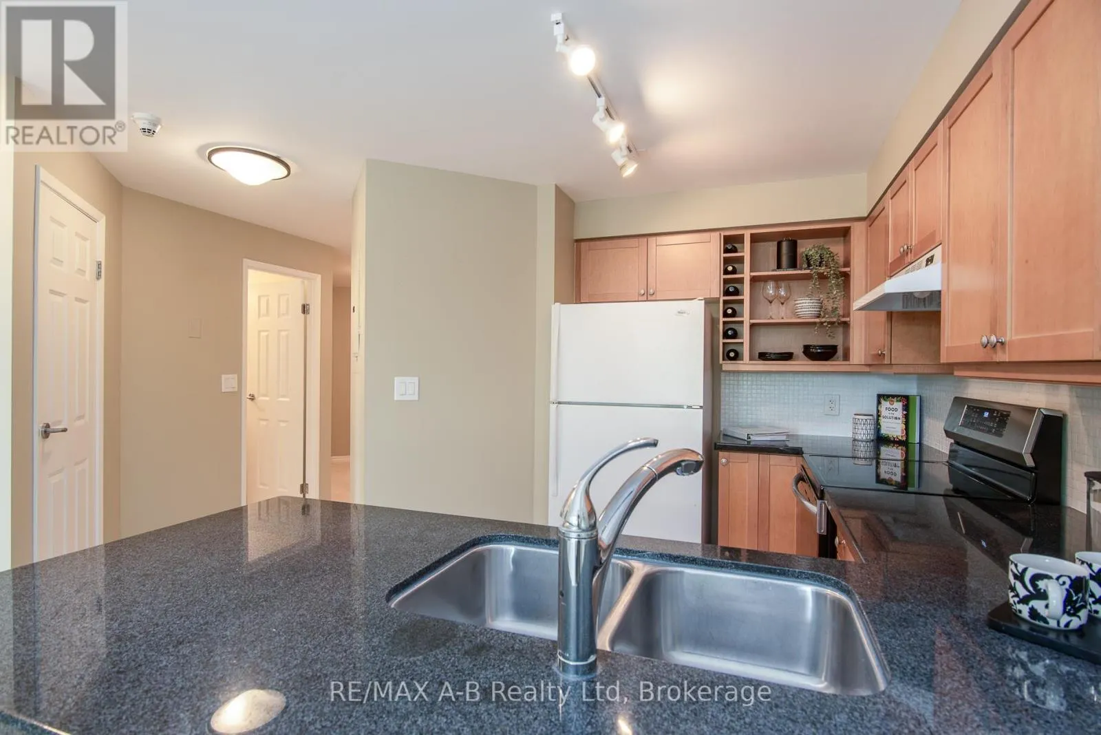 Cross Streets: Vivian/Line 37 and Romeo Street N. ** Directions: North on Romeo, building is at the end on the corner of Romeo and Vivian on the left-hand side. Situated in Stratford's growing north end, Stratford Terraces, offers you the best of condo living: a carefree lifestyle! With ground and interior maintenance, you're free to relax and enjoy the many amenities of this building; including underground parking, a party room with its own kitchen, a charming library room, an exercise room, as well as "in-coming/out-going" mail service. As for the unit itself... Welcome to unit 202! A 2-bedroom, 2-bath unit just under 1000 sq ft, with a spacious living/dining combination that provides access to your balcony. The kitchen comes with all appliances and a handy sit-at peninsula. The primary bedroom features a double, walk-through closet leading to the 4-piece ensuite. Your guests will be happy with the second bedroom and the main 3-piece bath. Add to this, the in-suite laundry and a flex room that makes for the perfect den or office. Feel safe and secure with this building's controlled entry and community-minded residents. (id:27476)