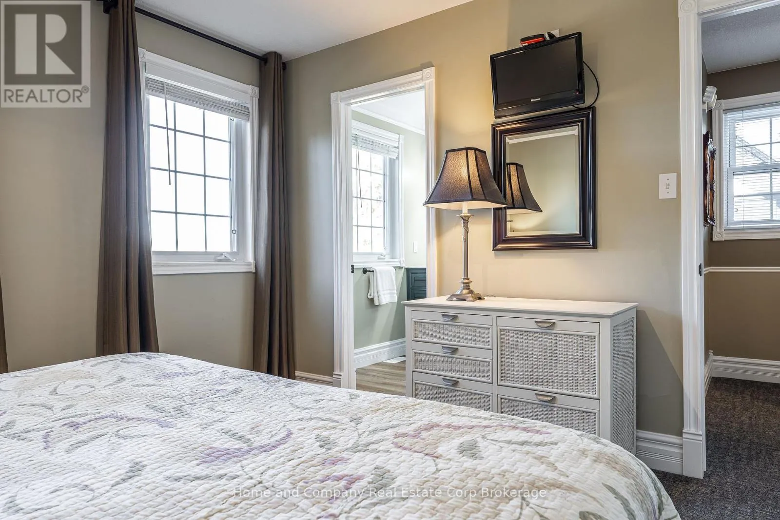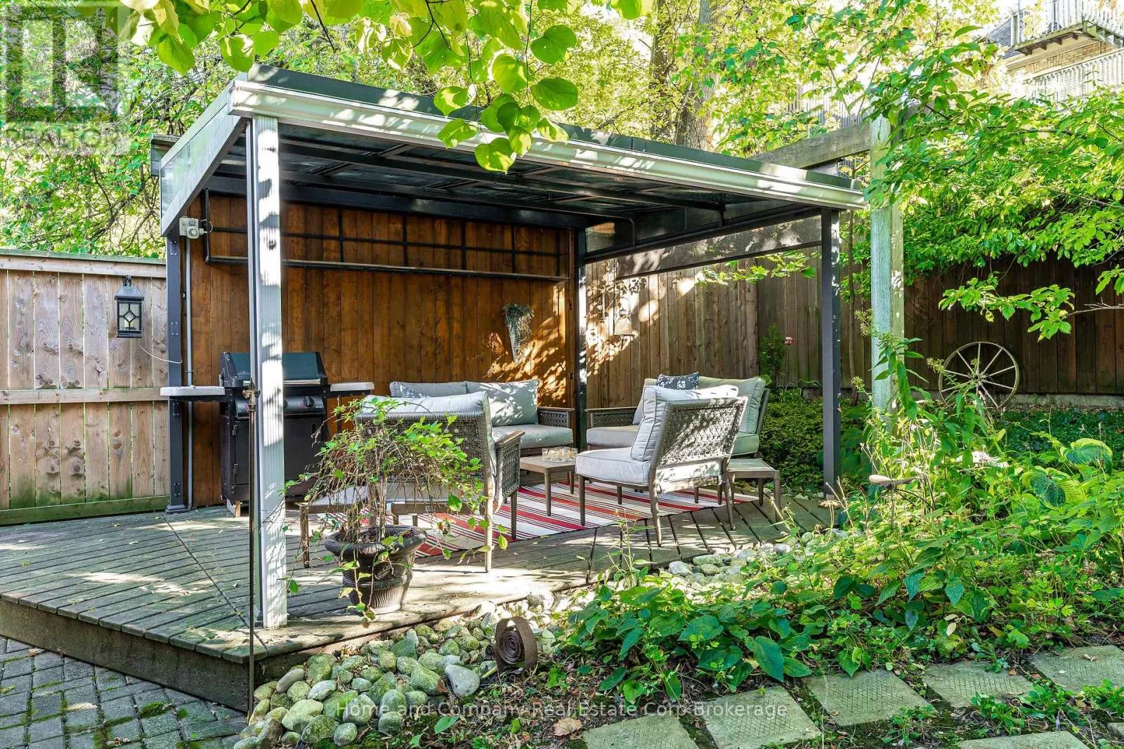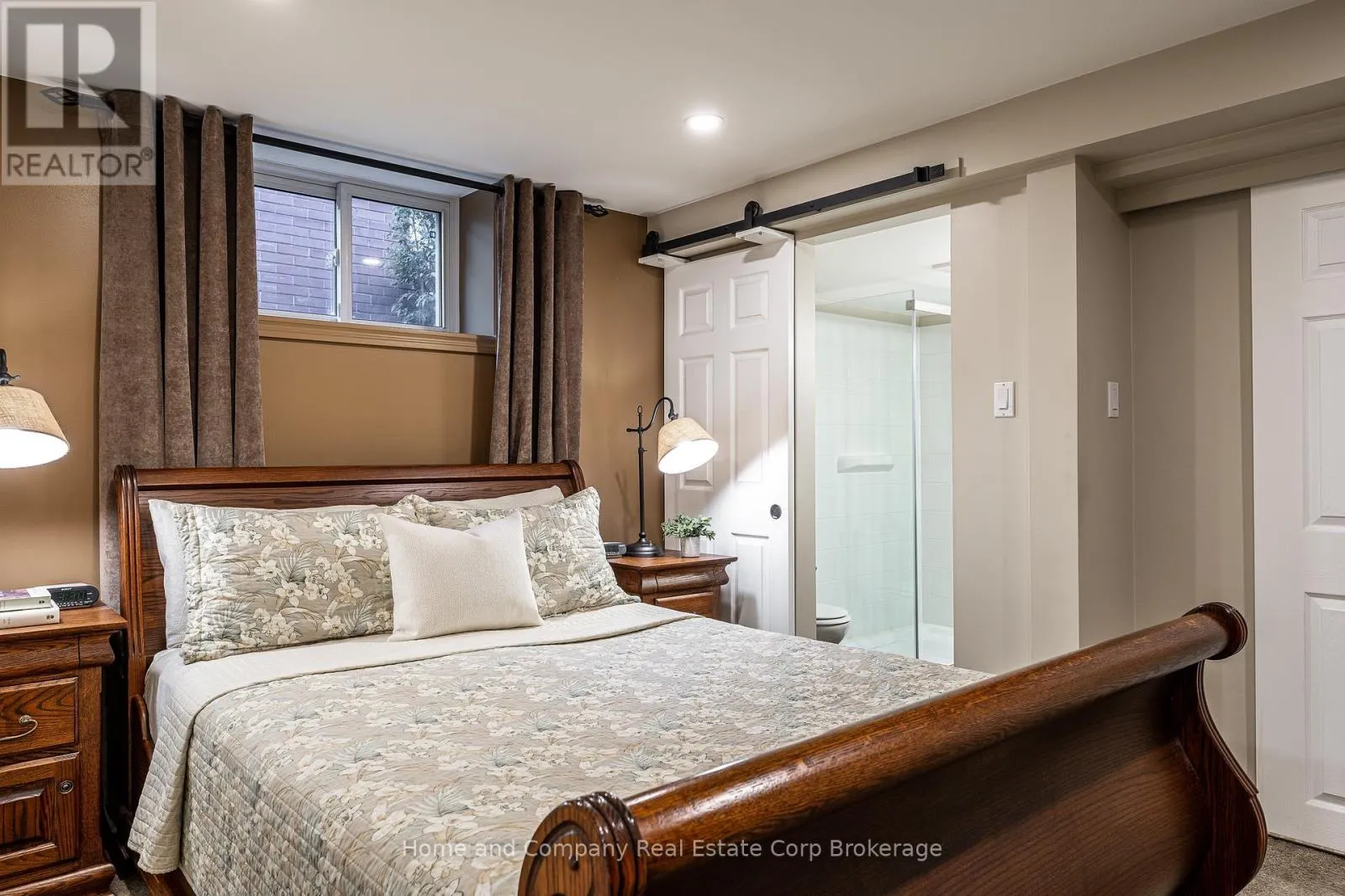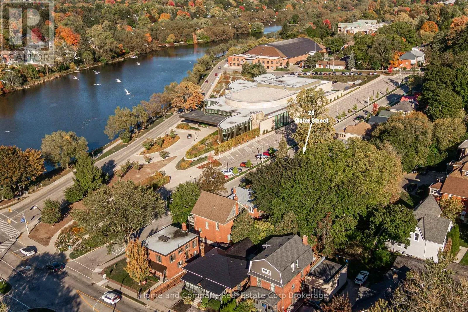 Cross Streets: Waterloo St. ** Directions: East on Water St from Waterloo St. Welcome to 25 Water Street, perfectly situated just steps from Stratford's beautiful Avon River and directly across from the world-renowned Tom Patterson Theatre. Formerly known as The Harrington House Bed and Breakfast, this well-appointed 5-bedroom, 4.5-bath home, built in 1995, now serves as a stunning residential property - ideal for families, entertainers, or those dreaming of a live/work opportunity in one of Stratford's most sought-after locations. The property features an extra deep single-car attached garage with four convenient entry points and ample space for a small workshop or storage, along with comfortable parking for up to six cars in the driveway, a rare find in this desirable downtown setting. Inside, a welcoming sitting room with serene river views offers a flexible space for an office or guest room, while across the foyer, a recently updated powder room adds a stylish touch. The open-concept kitchen and dining area form the heart of the home, perfect for gatherings and entertaining. The adjoining living room features tall ceilings, skylights, and large windows that flood the space with natural light. A versatile flex room, located beside the living area, offers even more possibilities, serving as a family room, home office, or space for a small business, with direct access to both the garage and the private backyard. Upstairs, three spacious bedrooms include two with ensuites, plus an additional full bath. The primary suite showcases peaceful river views and a beautifully updated ensuite retreat. The finished lower level offers a guest suite complete with a bedroom, 4-piece bath, walk-in closet, and rec room-ideal for extended family or host living quarters. Outside, the low-maintenance backyard has a private courtyard feel with a covered gazebo and garden shed for added workspace and storage. A rare opportunity in the heart of Stratford's downtown core, just steps from boutique shopping, fine dining, scenic river walks, and world-class theatre. (id:27476)