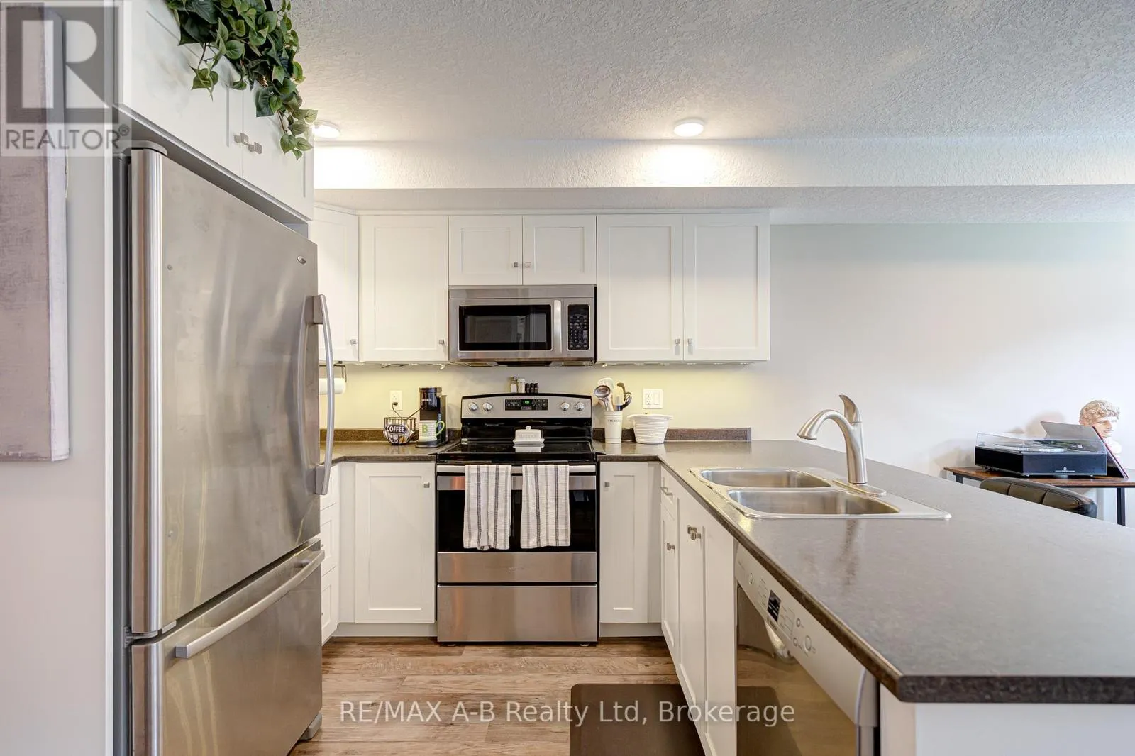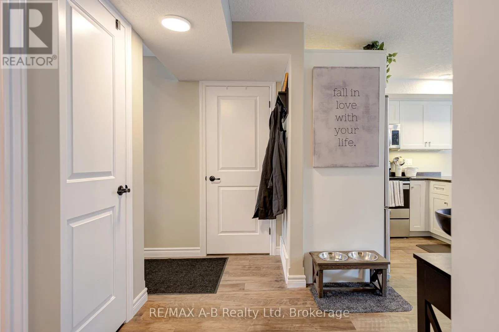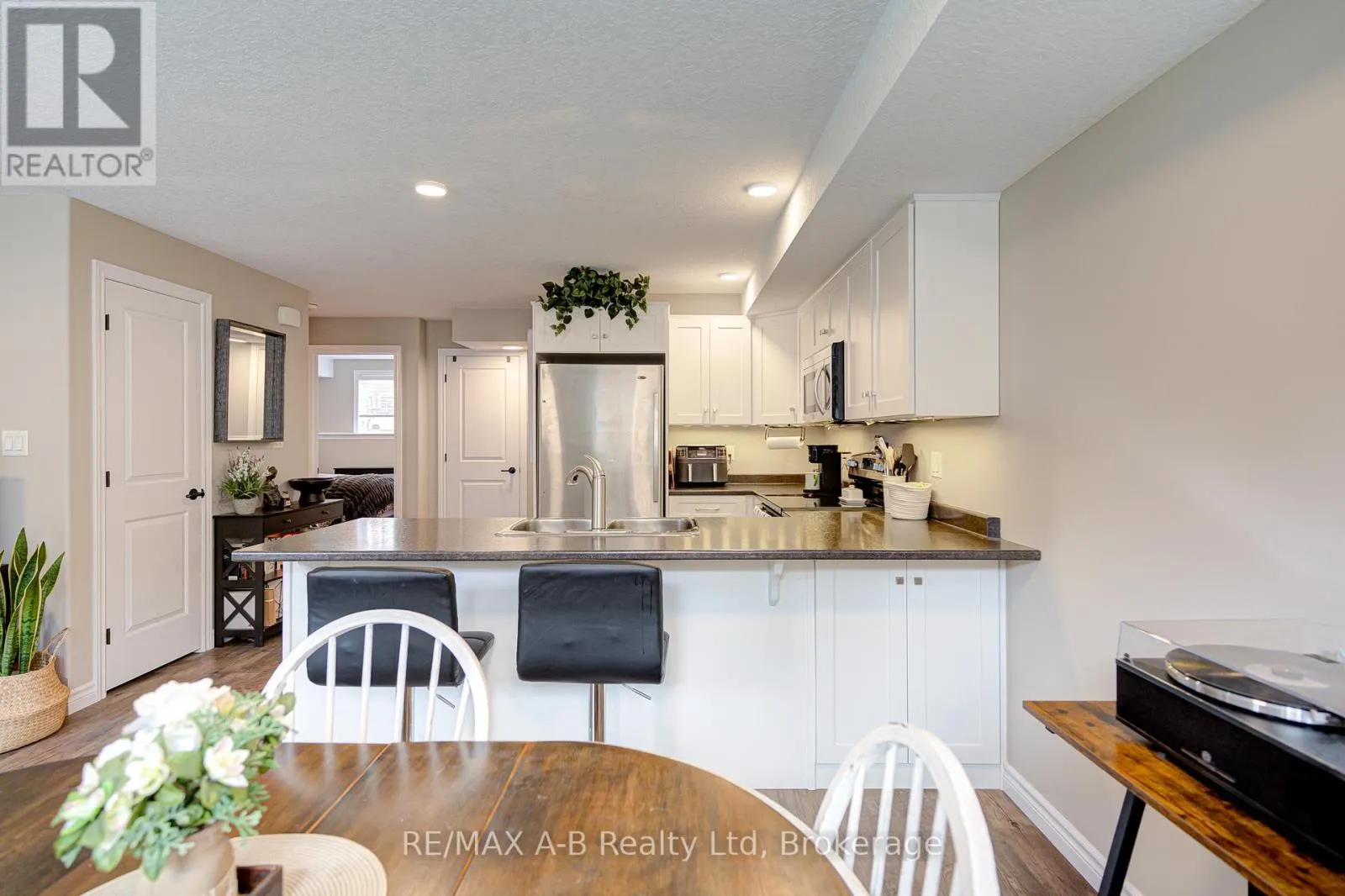 Cross Streets: Vivian Line 37. ** Directions: Continue down Romeo St N, Condominium building is located on the corner or Romeo St N and Vivian Line 37. Built in 2019 by award-winning builder Pol Quality Homes, this beautifully finished 1-bedroom condo offers modern living in one of Stratford's most desirable north-end locations. Step inside to an open-concept kitchen, living, and dining area featuring stainless steel appliances, premium vinyl plank flooring, and ample counter space and cabinetry perfect for both cooking and entertaining. The primary bedroom includes a large closet and direct access to the bathroom, which is equipped with a full-size in-suite stacked washer and dryer for your convenience. Designed with efficiency in mind, each suite is fitted with on-demand water heaters, hydronic heating systems, and a water softener to ensure comfort and cost-effectiveness year-round. This unit also includes one exclusive parking space and a private storage locker, offering both practicality and peace of mind. Located on the north end of Stratford, you'll enjoy convenient access to major routes making travel in and out of town a breeze. Whether you're a first-time buyer, downsizer, or investor, this condo combines modern finishes, efficient design, and exceptional build quality in one perfect package. (id:27476)
