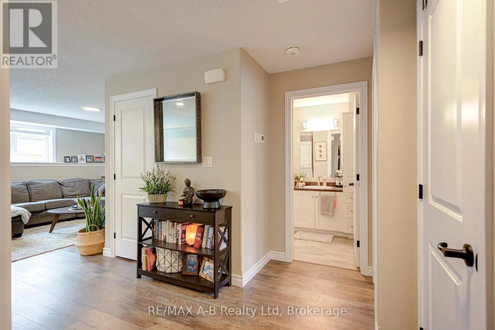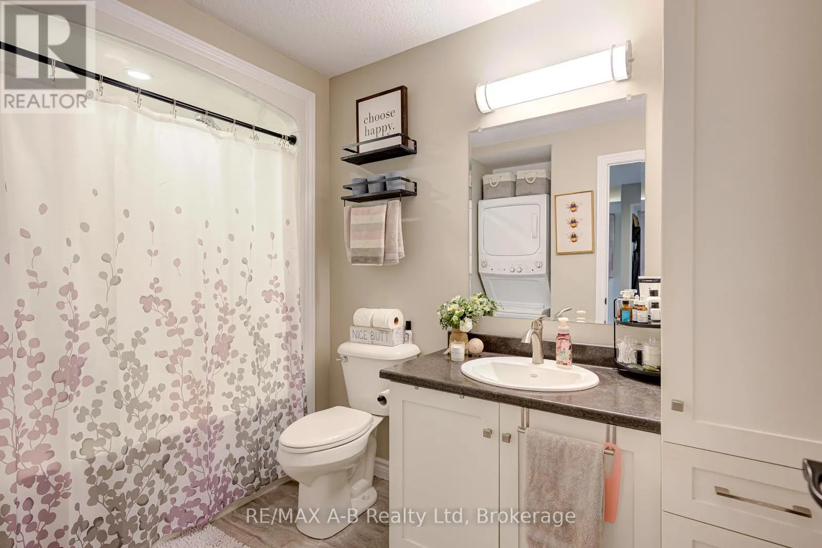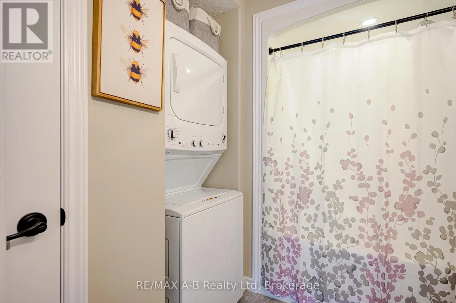 Cross Streets: Vivian Line 37. ** Directions: Continue down Romeo St N, Condominium building is located on the corner or Romeo St N and Vivian Line 37. Built in 2019 by award-winning builder Pol Quality Homes, this beautifully finished 1-bedroom condo offers modern living in one of Stratford's most desirable north-end locations. Step inside to an open-concept kitchen, living, and dining area featuring stainless steel appliances, premium vinyl plank flooring, and ample counter space and cabinetry perfect for both cooking and entertaining. The primary bedroom includes a large closet and direct access to the bathroom, which is equipped with a full-size in-suite stacked washer and dryer for your convenience. Designed with efficiency in mind, each suite is fitted with on-demand water heaters, hydronic heating systems, and a water softener to ensure comfort and cost-effectiveness year-round. This unit also includes one exclusive parking space and a private storage locker, offering both practicality and peace of mind. Located on the north end of Stratford, you'll enjoy convenient access to major routes making travel in and out of town a breeze. Whether you're a first-time buyer, downsizer, or investor, this condo combines modern finishes, efficient design, and exceptional build quality in one perfect package. (id:27476)