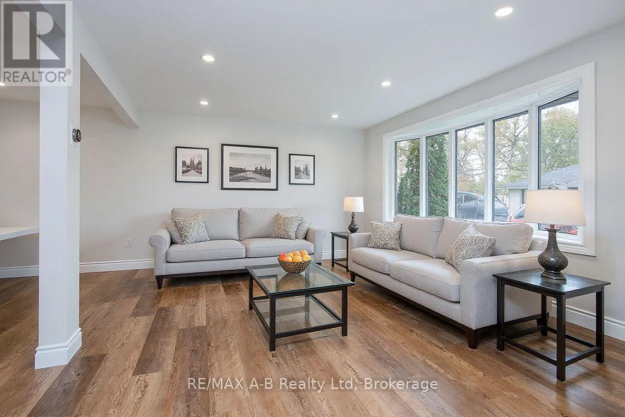 Cross Streets: Downine. ** Directions: Romeo or Downie To Norfolk. Just Completed Renovation by a Renowned Stratford Construction Company! Step into this beautifully updated 3-bedroom, 2-bathroom home showcasing exceptional craftsmanship and modern design throughout. The stylish, contemporary kitchen features sleek finishes and brand-new cabinetry with quartz countertops and island flowing seamlessly into the bright and spacious living room with abundant natural light , dining room offers walk-out to a patio and large, fully fenced backyard - perfect for relaxing, entertaining or just enjoying the outdoors. Enjoy multiple living spaces-the spacious family/rec room offers plenty of natural light and a cozy fireplace, creating a warm and inviting relaxation space. A convenient laundry room is located just off the rec room, offering privacy and practicality. Major updates ensure peace of mind are : Metal roof on both the home and the large storage shed, updated furnace, roof, central air, and windows, new kitchen, flooring, and bathrooms. Every inch of this home showcases impeccable workmanship and modern style and appeal. Truly a pleasure to view-and an absolute comfort to live in.. Make a appointment to view it today. Some pictures are AI staged. (id:27476)