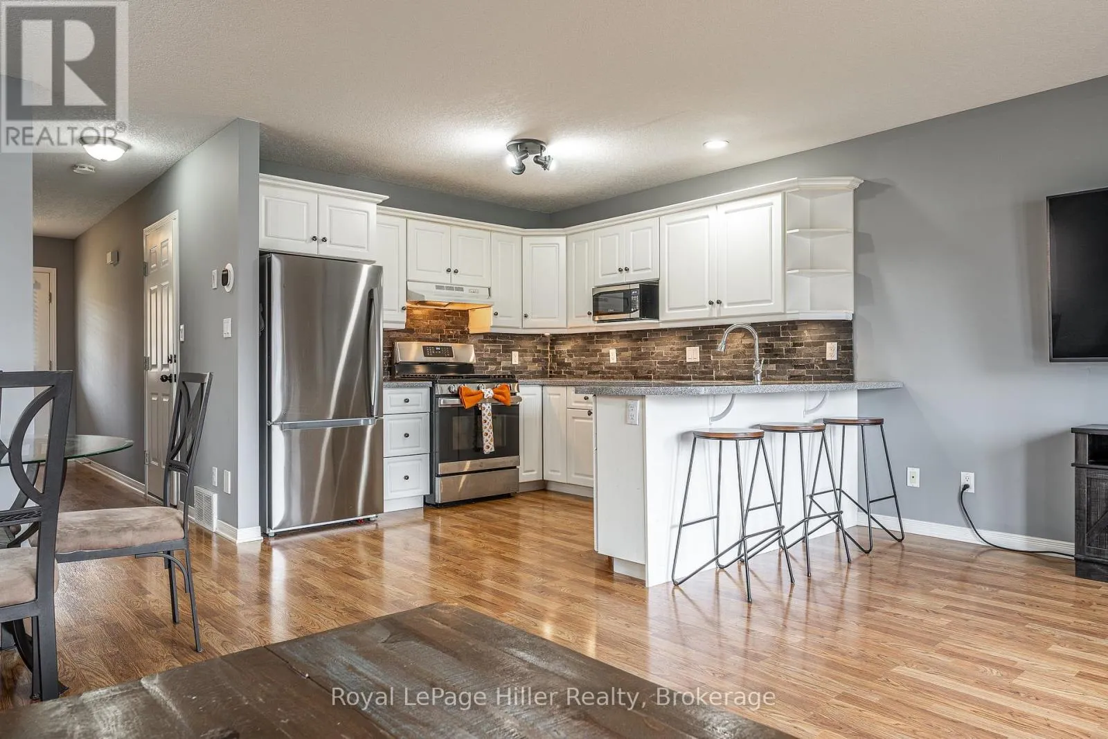Cross Streets: McCarthy & Mornington. ** Directions: Mornington St - McCarthy - Hyde. Desirable end-unit townhome offering an abundance of natural light with additional windows compared to interior units. The main level showcases an open-concept design featuring a modern kitchen with new appliances, an inviting dining area, and a spacious living room with convenient access to a large deck and backyard-ideal for gatherings or quiet relaxation. The upper level includes a generous primary bedroom with a walk-in closet and cheater ensuite, along with two additional well-sized bedrooms and the convenience of second-floor laundry. The lower level is unfinished and awaiting your personal design and finishing touches. An excellent opportunity to own a bright, well-appointed home in a sought-after location. Call today to book your private showing! (id:27476)