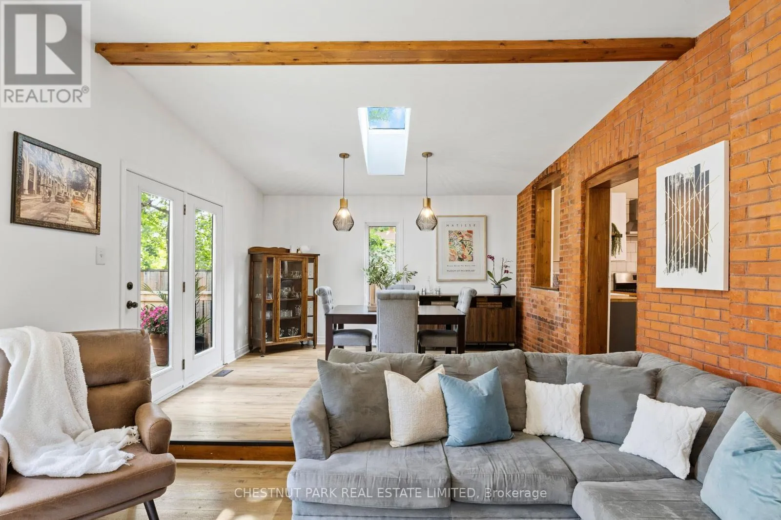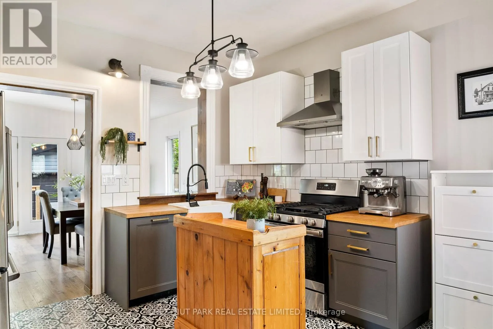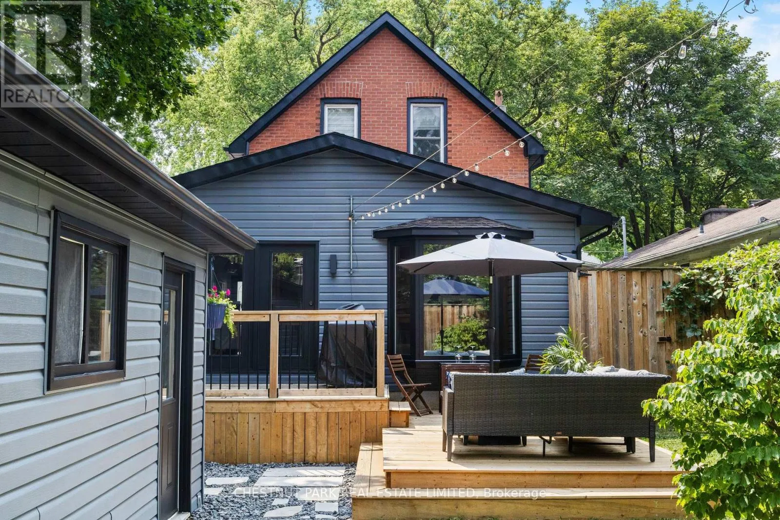 Mornington & Princess Welcome to 13 Princess Street, where Stratford's heritage and modern elegance meet in perfect harmony. Built in 1900 and lovingly restored, this red-brick residence is nestled on a quiet, tree-lined street in the sought-after North Shore-just moments from the Avon River, the Festival Theatre, and the city's vibrant cafes and boutiques. A gracious covered porch sets the tone for what's inside-inviting, graceful, and timeless. Beyond the front door, soaring 9-foot ceilings and warm hardwood floors create a sense of openness and flow throughout the main level. The living and breakfast rooms offer intimate spaces for entertaining or quiet mornings, complemented by a convenient two-piece powder room for guests. Upstairs, three thoughtfully scaled bedrooms and a four-piece bath offer comfort and flexibility, ideal for a couple seeking a guest room and a dedicated workspace. At the heart of the home, the updated kitchen blends modern efficiency with classic design, leading seamlessly to a spectacular 300 sq. ft. rear addition-a vaulted dining and family area filled with natural light from skylights and French doors. Step outside to a private, fully-fenced backyard surrounded by mature trees-an outdoor retreat for summer dinners and quiet reflection. The restored detached garage provides heated workshop space for creative pursuits, fitness, or year-round hobbies, while a two-car driveway and side entrance enhance convenience. This is more than a home-it's a way of living. Morning walks along the river, evenings at the theatre, and weekends spent exploring Stratford's celebrated culinary scene-all from the comfort of your own historic sanctuary. (id:27476)