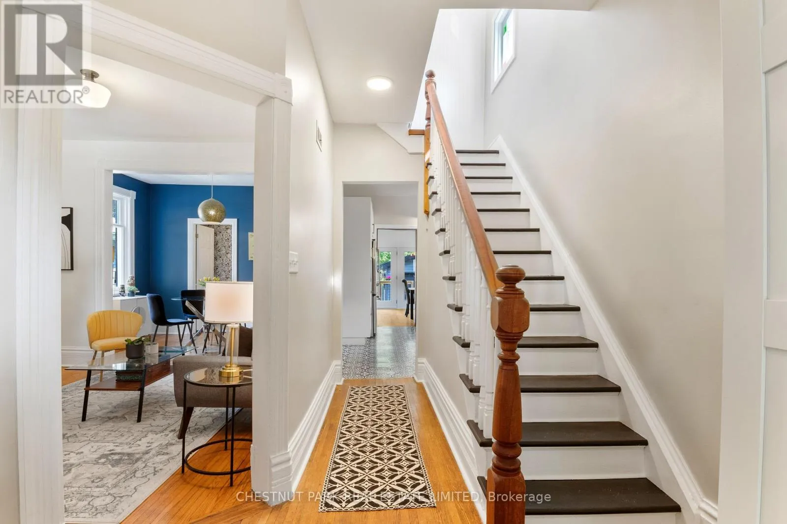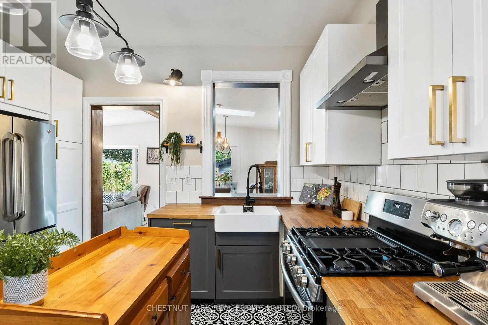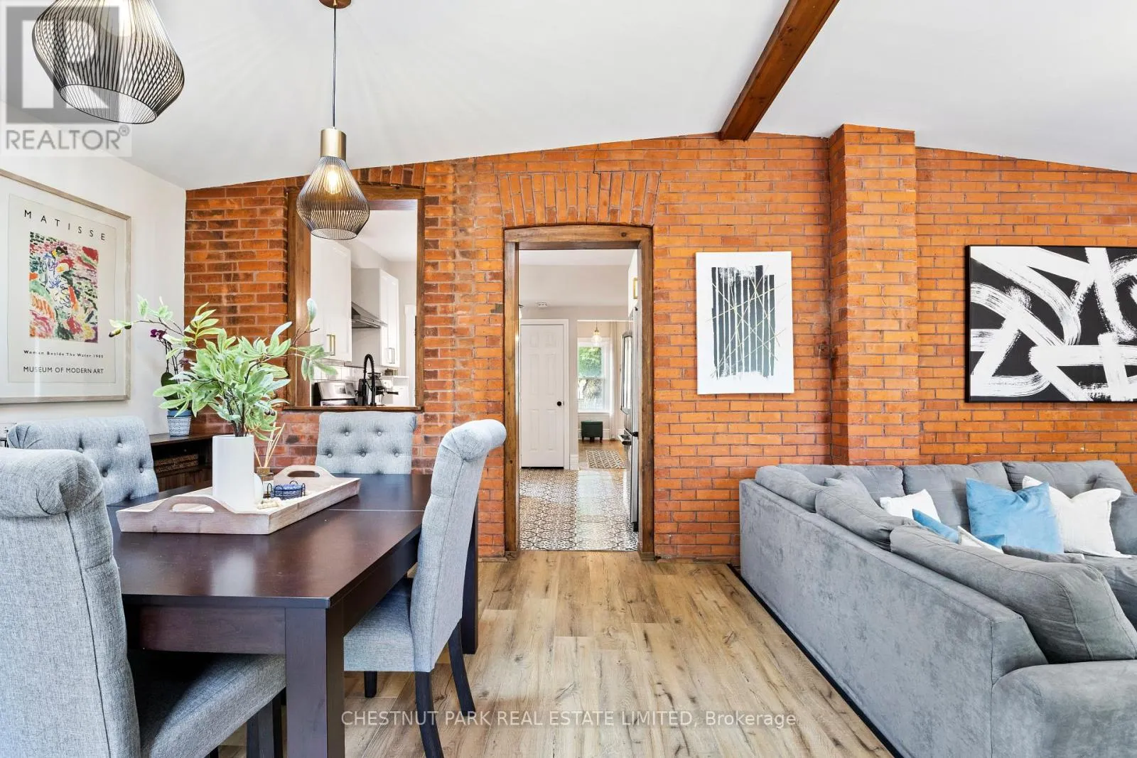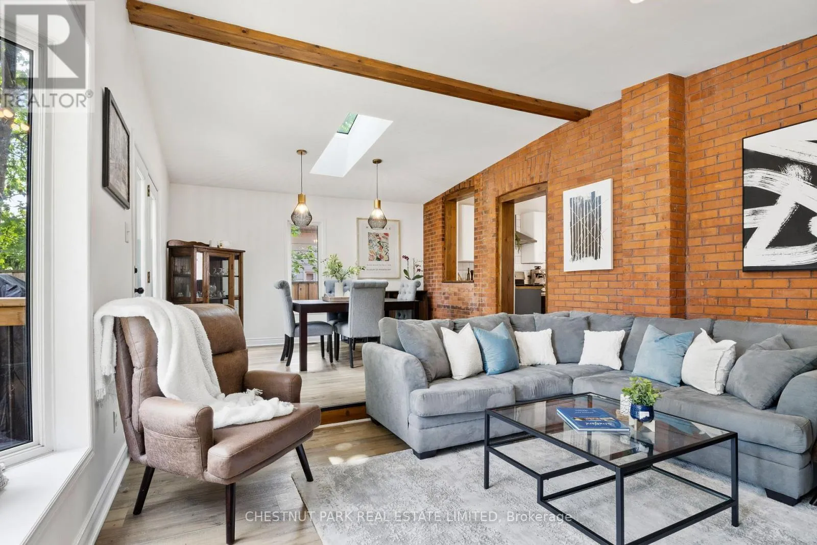 Mornington & Princess Welcome to 13 Princess Street, where Stratford's heritage and modern elegance meet in perfect harmony. Built in 1900 and lovingly restored, this red-brick residence is nestled on a quiet, tree-lined street in the sought-after North Shore-just moments from the Avon River, the Festival Theatre, and the city's vibrant cafes and boutiques. A gracious covered porch sets the tone for what's inside-inviting, graceful, and timeless. Beyond the front door, soaring 9-foot ceilings and warm hardwood floors create a sense of openness and flow throughout the main level. The living and breakfast rooms offer intimate spaces for entertaining or quiet mornings, complemented by a convenient two-piece powder room for guests. Upstairs, three thoughtfully scaled bedrooms and a four-piece bath offer comfort and flexibility, ideal for a couple seeking a guest room and a dedicated workspace. At the heart of the home, the updated kitchen blends modern efficiency with classic design, leading seamlessly to a spectacular 300 sq. ft. rear addition-a vaulted dining and family area filled with natural light from skylights and French doors. Step outside to a private, fully-fenced backyard surrounded by mature trees-an outdoor retreat for summer dinners and quiet reflection. The restored detached garage provides heated workshop space for creative pursuits, fitness, or year-round hobbies, while a two-car driveway and side entrance enhance convenience. This is more than a home-it's a way of living. Morning walks along the river, evenings at the theatre, and weekends spent exploring Stratford's celebrated culinary scene-all from the comfort of your own historic sanctuary. (id:27476)