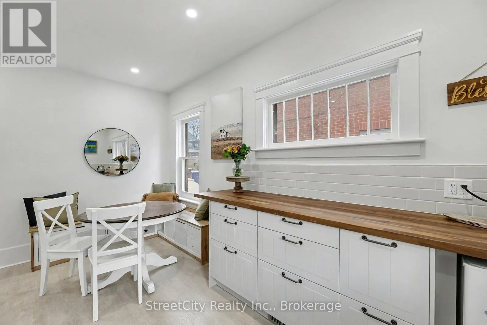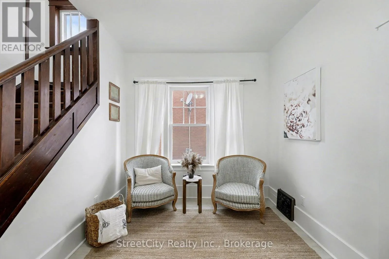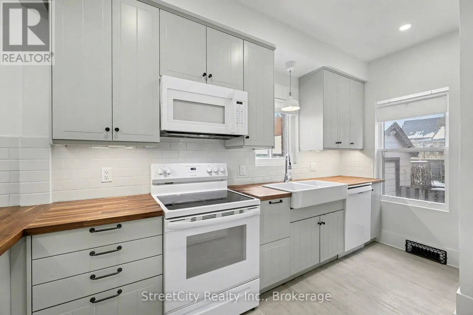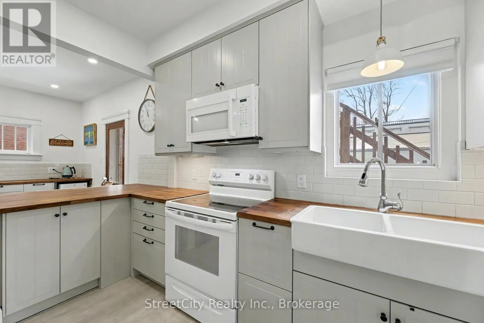 Cross Streets: Nelson and Cambria. ** Directions: From Erie St turn east onto Cambria St, house is on right hand (south) side of street. **Open house this Saturday from 10:30 am to noon** Updated in the right places and still rich with original Stratford character, this move-in-ready home feels welcoming and full of personality from the moment you walk in. The renovated main floor features fresh flooring and paint, as well as a fully updated kitchen with butcher block countertops, subway tile backsplash, farmhouse sink, bar seating, and newer appliances. The dining area has a convenient coffee/drink station with a mini fridge. There is also a full washroom on the main level for added convenience. Throughout the home, original details like the stained-glass window, antique heat vents, and classic trim add warmth and personality. The second floor offers four bedrooms and the convenience of laundry upstairs, making daily routines much easier. Outside, there's a welcoming front porch and a rear deck for easy outdoor living. The partially finished basement provides practical extra space for a kids' playroom or home office, along with added storage, a second set of laundry machines, and a partial washroom ready for your finishing touches. Just a short walk from Stratford's cafes, parks, theaters, and schools, this home is perfect for first time buyers and offers plenty of room for growing families. Contact your Realtor today for more information or to arrange a private showing. (id:27476)