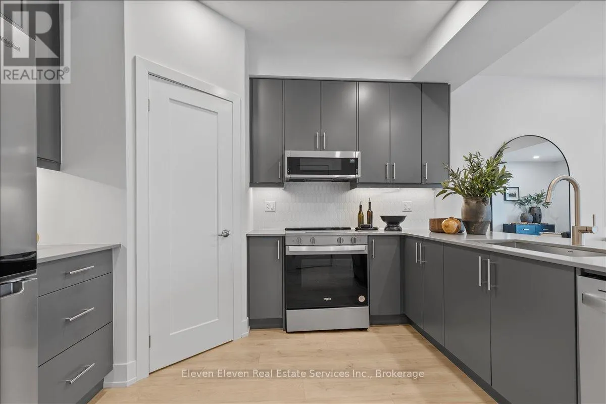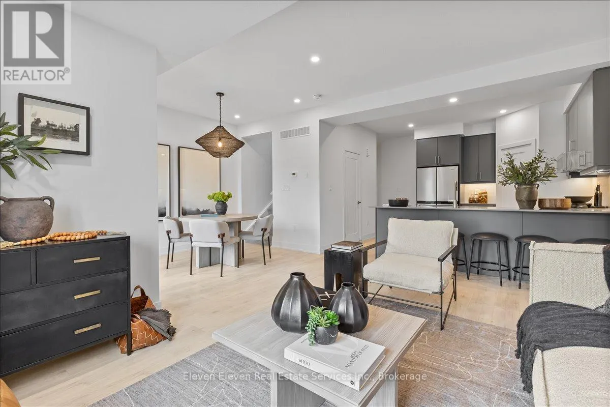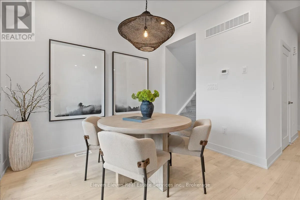 Quinlan and O'Loane Introducing "The Nest", an elegant back-to-back townhome offering 2 bedrooms, 1.5 bathrooms, and parking for two vehicles. With 1,394 sq. ft. of beautifully designed living space, this home blends modern comfort with timeless style. Enjoy 9 ft ceilings on the main level, a bright open-concept layout, and a chef-inspired kitchen complete with quartz countertops, stainless steel appliances, and a walk-in pantry. Thoughtfully planned throughout, The Nest features two walk-in closets, two private balconies, and refined finishes that you can personalize to suit your taste. Built with the exceptional craftsmanship and care that define Reid's Heritage Homes' 45+ year legacy, this home offers outstanding quality in a community known for nature, trails, dining, and Stratford's celebrated theatre scene. Stylish. Comfortable. Crafted for modern living - welcome to The Nest at Poet & Perth. (id:27476)