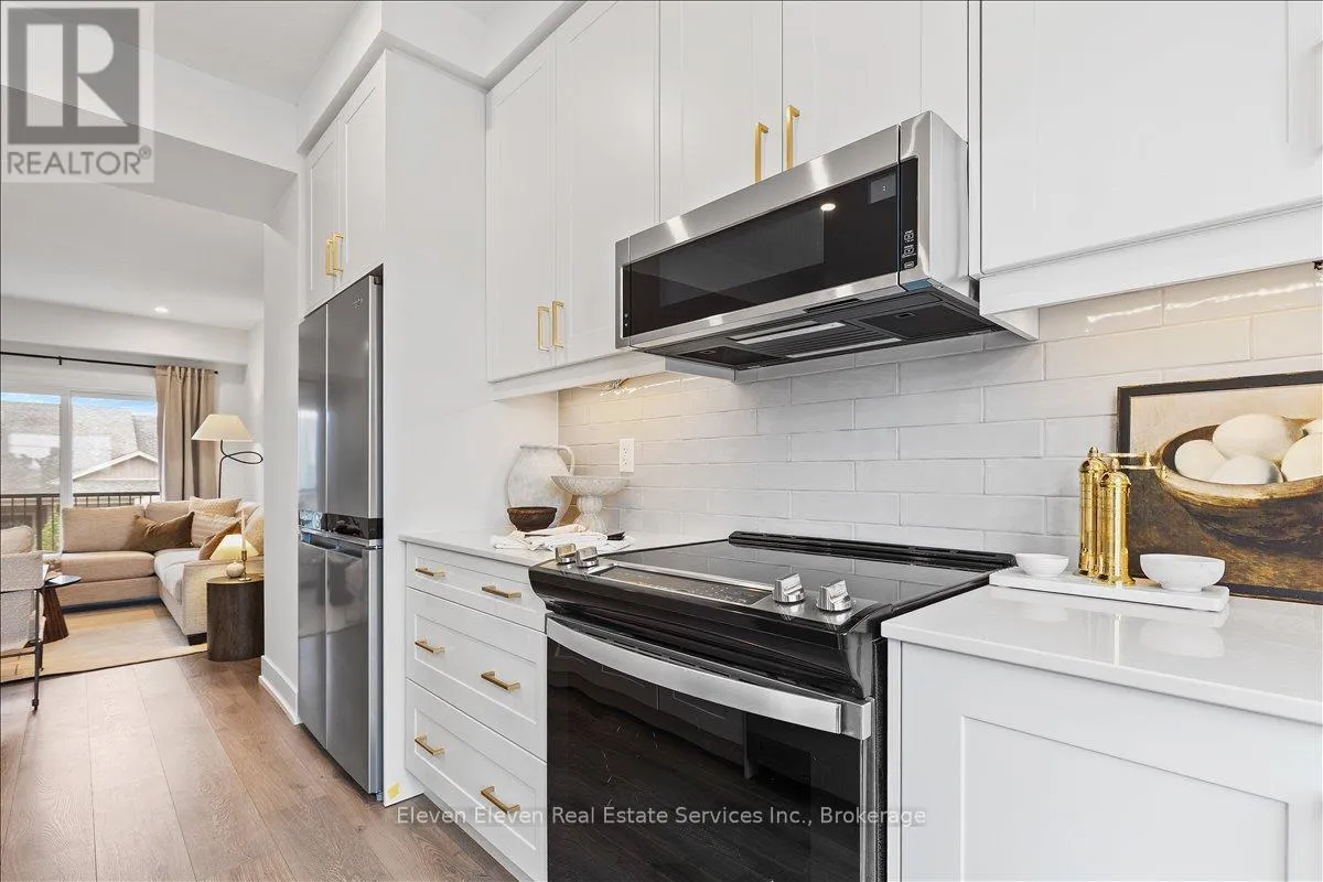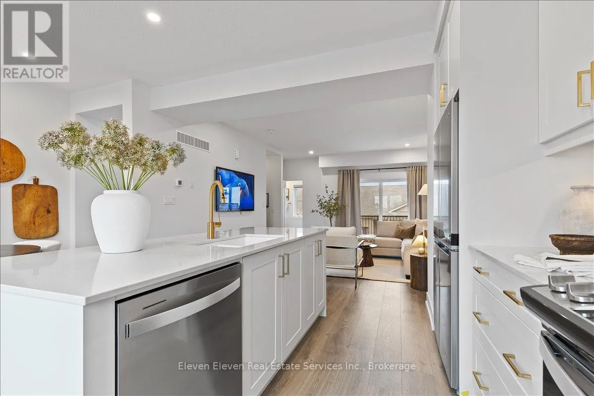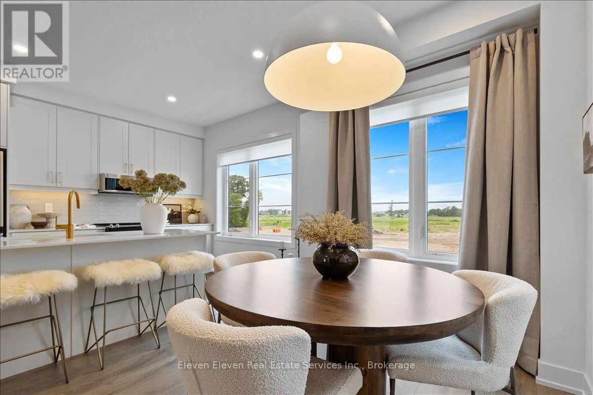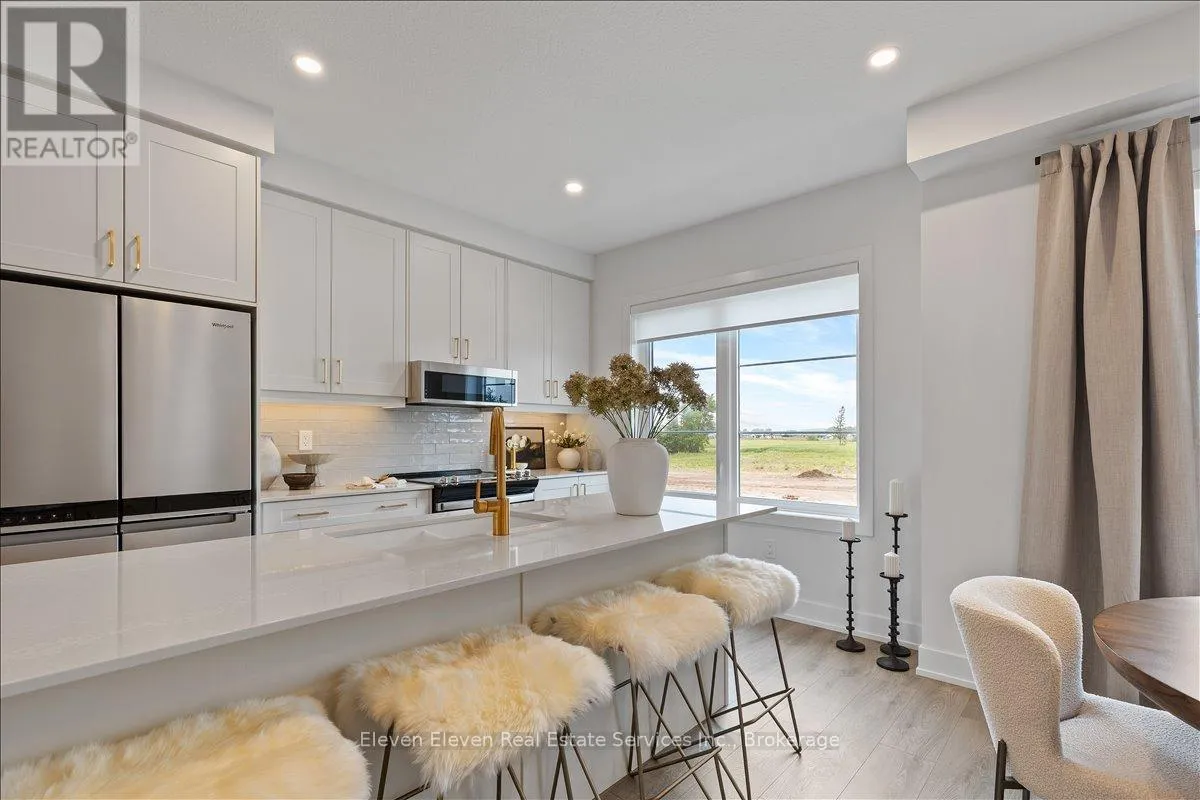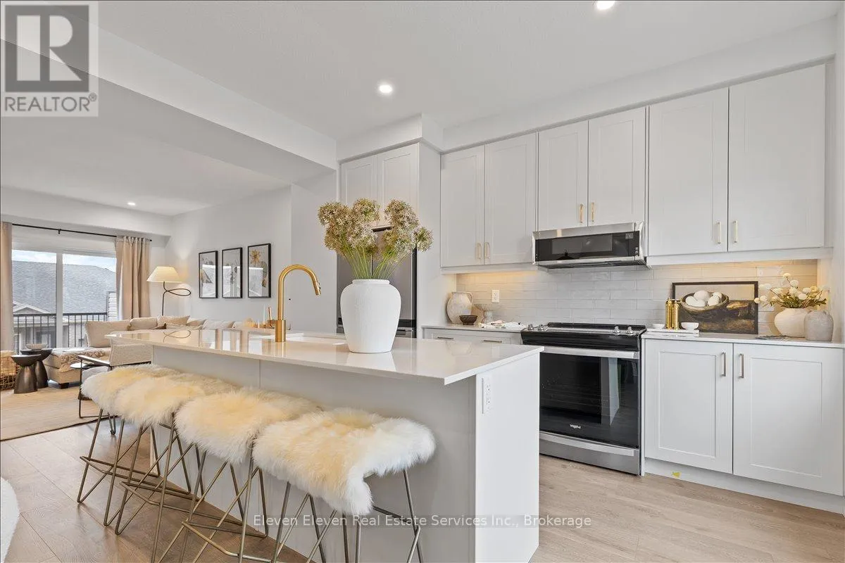 Quinlan and O'Loane Discover "The Haven", a beautifully designed Rear Lane Townhome offering 3 bedrooms, 3.5 bathrooms, and parking for two with a single-car garage and private driveway. With 1,538 sq. ft. of thoughtfully planned living space, this home blends modern comfort with stylish functionality. Enjoy 9 ft ceilings on the main level, quartz countertops throughout, and a bright open-concept layout perfect for everyday living. The kitchen features stainless steel appliances, contemporary cabinetry, and a well-sized island ideal for cooking and gathering. Upstairs, you'll find two bedrooms with their own ensuites, plus a third full bedroom for family, guests, or a home office. Two balconies extend your living space and fill the home with natural light. Built with the quality and care that defines Reid's Heritage Homes' 45+ year legacy, The Haven offers exceptional craftsmanship in a growing neighbourhood close to parks, trails, dining, and Stratford's vibrant theatre district. Modern living meets small-town charm - welcome to The Haven at Poet & Perth. (id:27476)
