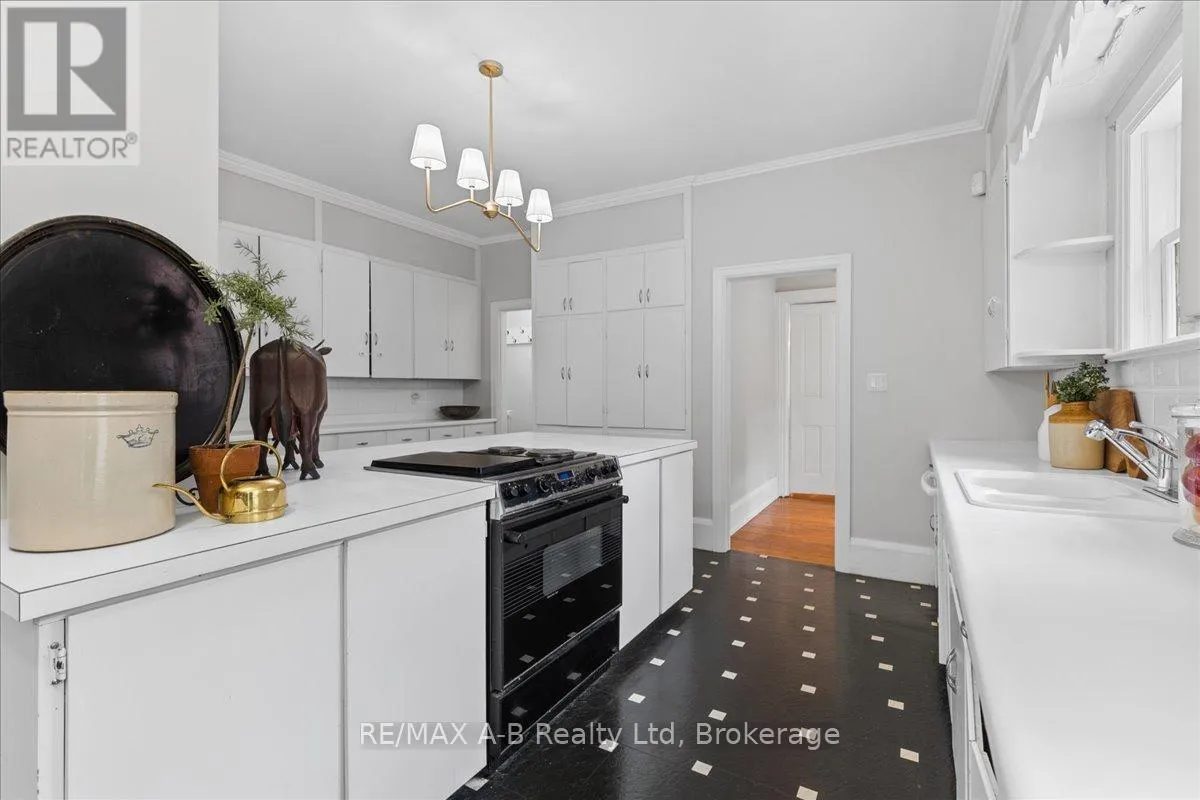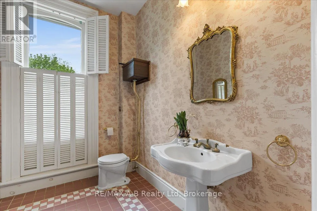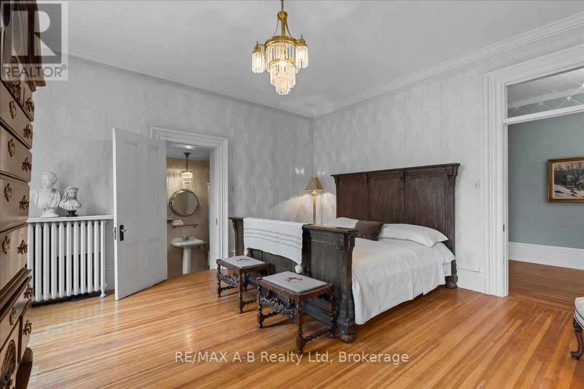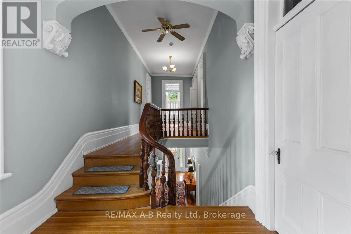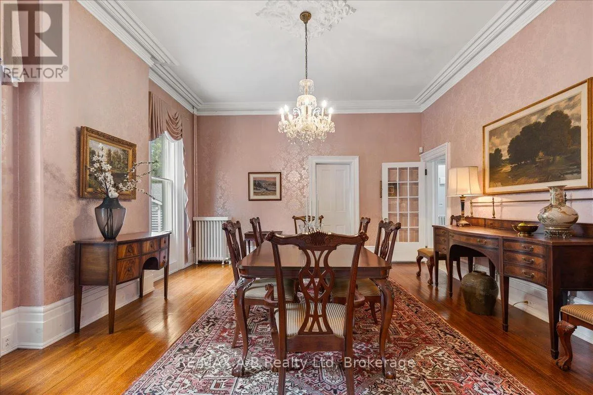 Cross Streets: Douglas Street. ** Directions: Heading South on John St N, Turn Right onto John Street. Property on Immediate Left. Welcome to this distinguished century home, rich with character and cultural heritage, nestled in one of Stratford's most desirable neighbourhoods. Once a charming bed and breakfast, this prominent residence has hosted many actors of the world-renowned Stratford Festival, echoing a legacy of warmth and elegance.Step into the grand front foyer, where the impressive staircase sets the tone for the craftsmanship found throughout. Stunning tigerwood flooring carries through the main level, enhancing each room with warmth and sophistication. The expansive great room, filled with natural light, opens through classic French doors to a picturesque stone patio. The main floor also includes a cozy sitting room, an elegant formal dining room, and a spacious kitchen with a walk-through pantry and original swinging door-a nod to the home's storied past. Upstairs, the second floor blends charm and functionality with the original maids' quarters, complete with den, bedroom, 3-piece bath, and private staircase. Three additional bedrooms include a generous primary with ensuite featuring a vintage clawfoot tub. A second clawfoot tub and a rare high-tank pull-chain toilet highlight the main bathroom. The third floor offers exceptional flexibility with two additional rooms suited for bedrooms, offices, or creative spaces, plus a large family room and storage. Outside, the landscaped backyard is a private retreat with an inground pool. A detached two-car garage and durable metal roof complete this exceptional property. Whether drawn to its history, space, or Stratford's vibrant arts scene, this home offers a rare opportunity to own a piece of the city's cultural fabric. (id:27476)