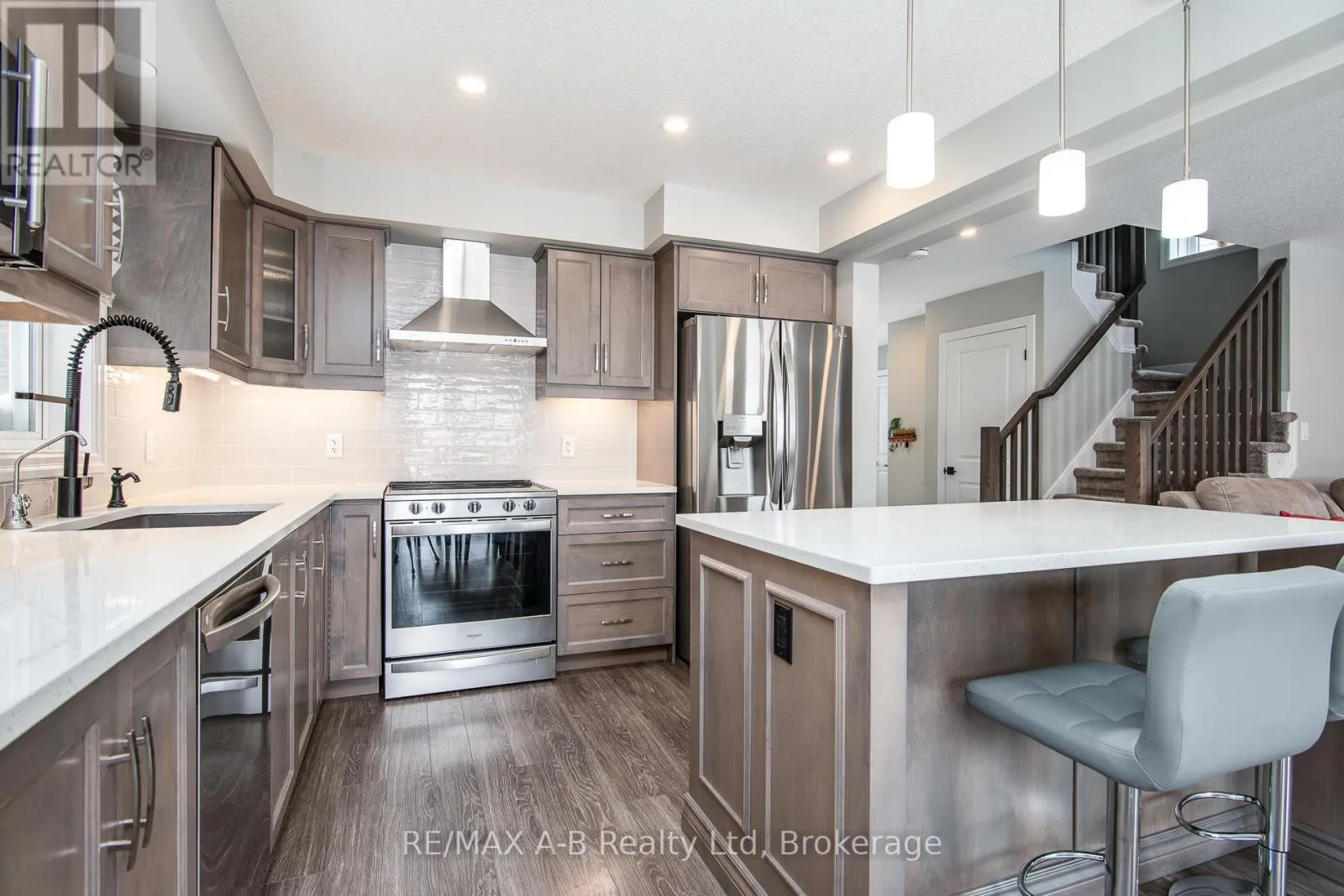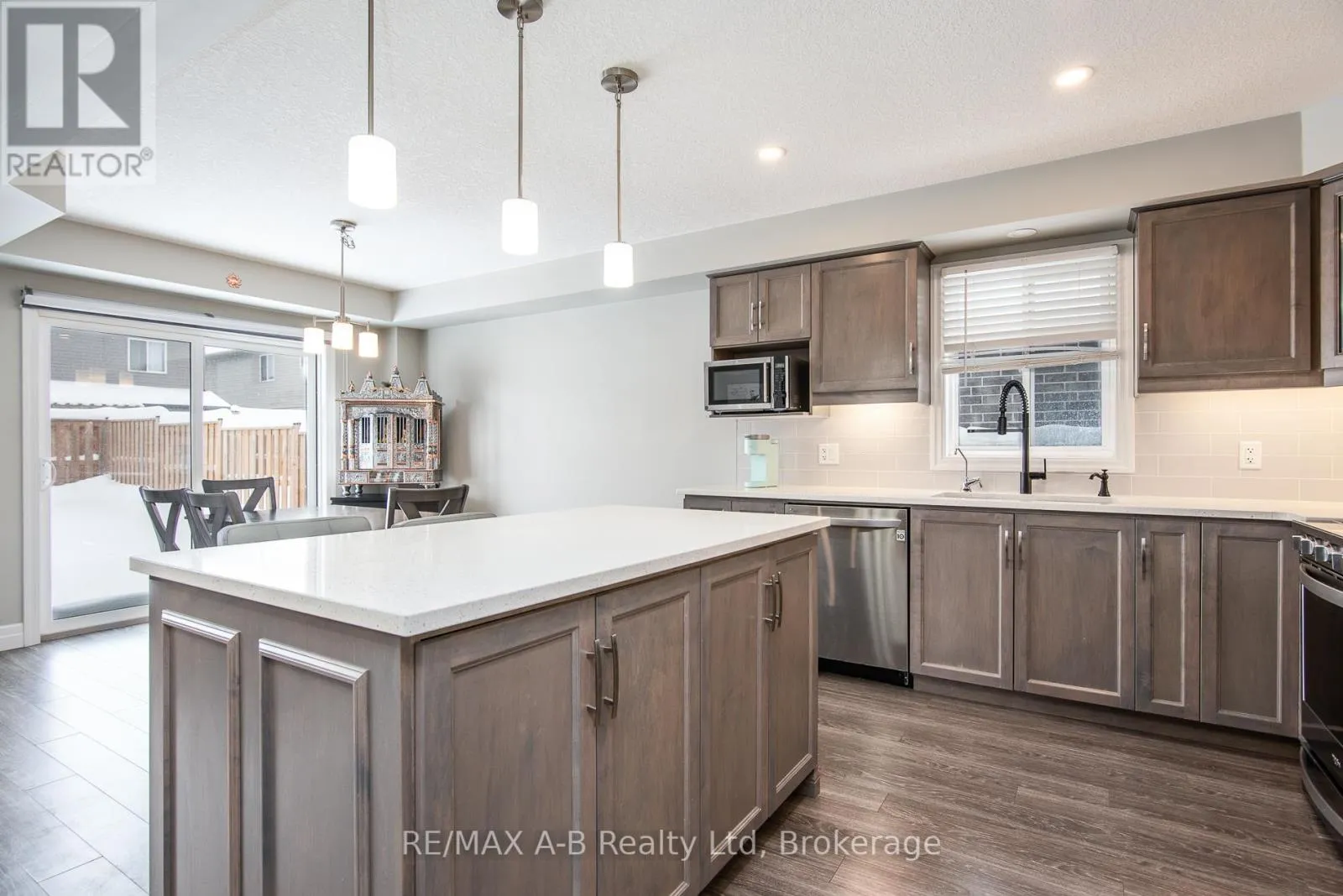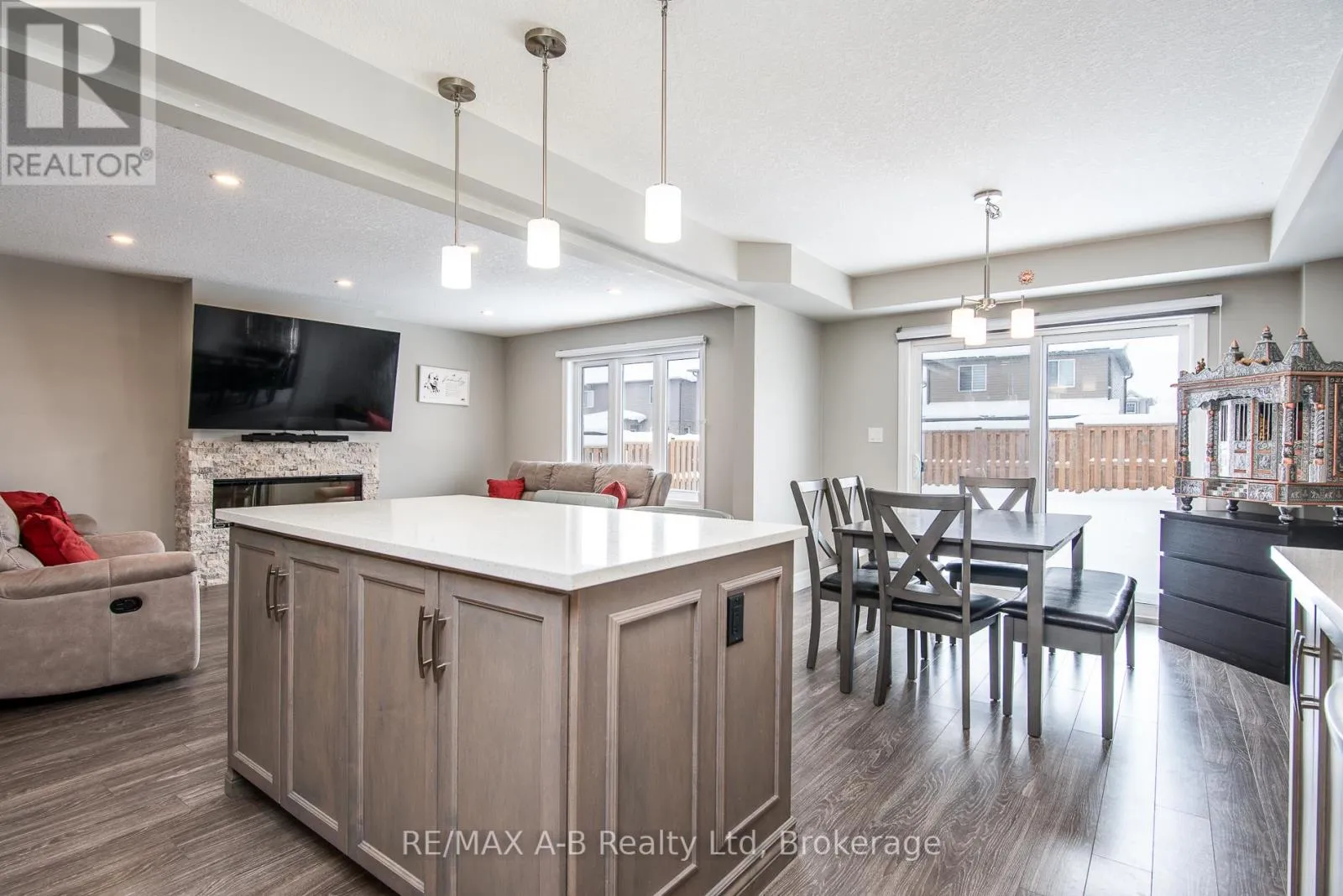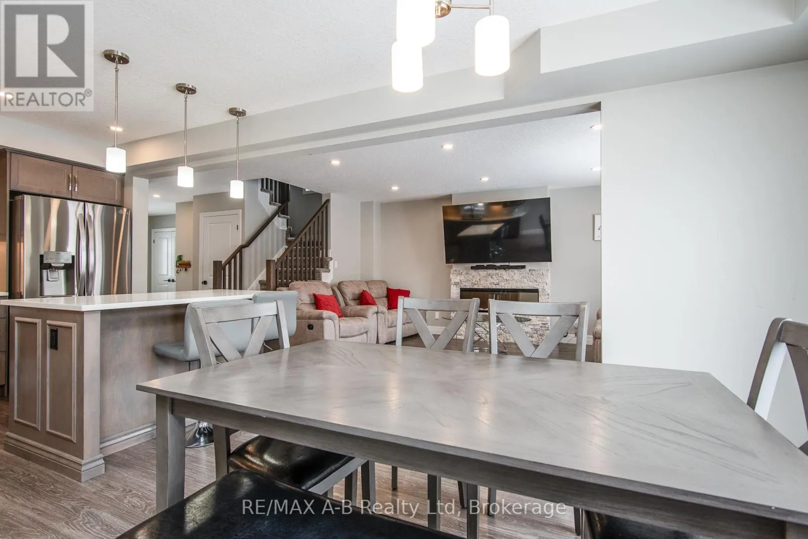 Cross Streets: Fraser and Davidson Dr. ** Directions: McCarthy Rd to Fraser Dr to Davidson Dr. This beautiful, immaculate 5-year-old, 1,630 sq. ft. family home is located in a highly desirable neighbourhood. The main floor features a bright open-concept layout with an abundance of windows that flood the home with natural light. The family room showcases an electric fireplace surrounded by elegant stonework, creating a warm and inviting space.The kitchen offers a spacious island, ample upgraded cabinetry, quartz countertops, stainless-steel appliances, and a sliding door with walk-out to the fully fenced backyard. The main floor also includes a powder room, a generously sized dining/living area, and a large number of upgraded pot lights throughout .Upstairs, you will find three spacious bedrooms, including a primary bedroom with a large closet and a 3-piece ensuite featuring an upgraded glass shower door. A second 4-piece bathroom completes the upper level. This lovely residence offers numerous upgrades, including: subway tile backsplash, extended kitchen cabinetry, brushed cabinet hardware, Blanco kitchen sink, soft-close drawers, additional pot lights, steel range hood, laminate flooring, black faucets throughout, upgraded bathroom and foyer tiles, railings and plush shag carpeting, black shower heads and door handles, two bidets, water line to fridge, built-in soap dispenser, owned water softener, water purification and water heater system. The large basement features oversized windows and a bathroom rough-in, offering endless possibilities for future development. Additional highlights include a large garage, very generous concrete driveway, concreate sidewalk all the way to the backyard and patio -2025 plus heat pump that acts like a heat and central air. .Conveniently located close to a community center, farmers' market, public transit, schools, and shopping. Flexible closing (id:27476)
