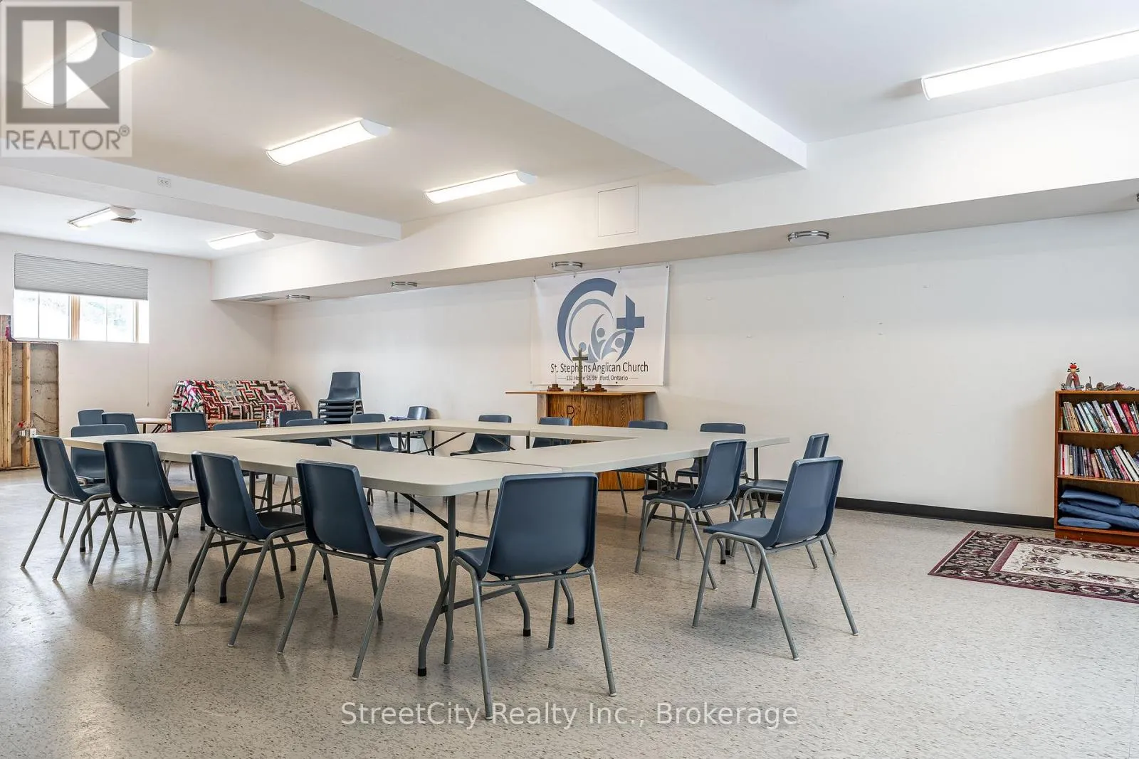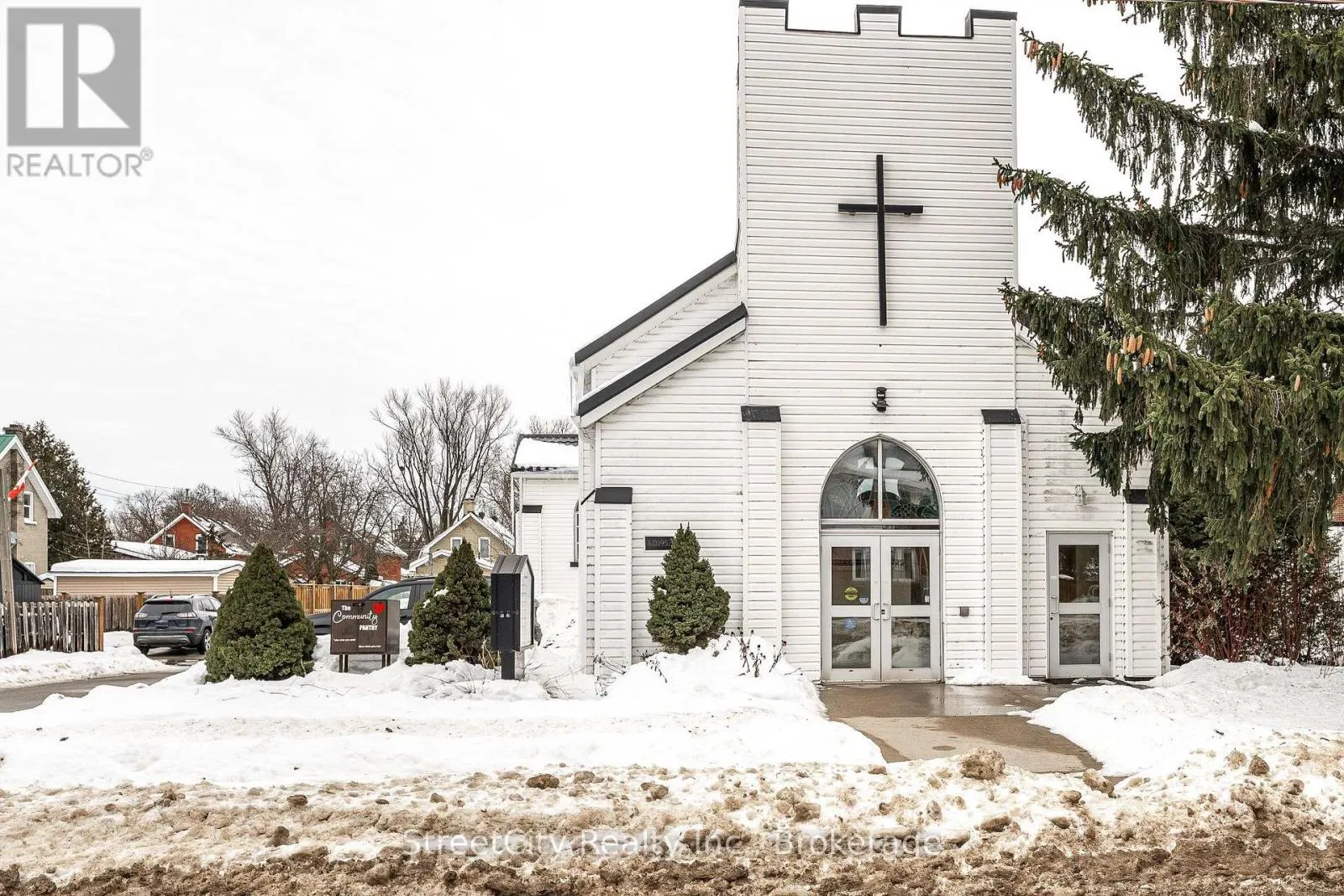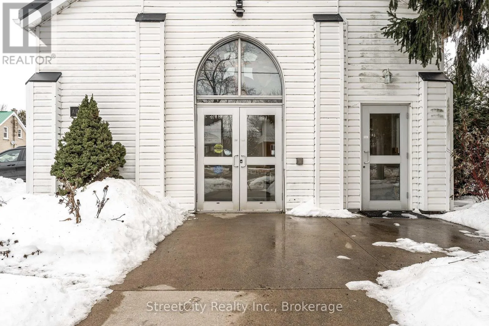 Cross Streets: Brydges & Downie. ** Directions: Home @ Brydges. Anglican Church centrally located just south of downtown in Stratford. Offering flexibility in potential development or repurposing options. Nearly a half acre lot with over 100' frontage on Home St. & 43' frontage on Brydges St. (164' depth off Home St). Zoned R2. More than 4800 sqft of interior space over the 2 levels, featuring large rooms with clear spans and high clearance ceiling heights. The entryway features an elevator that services both the Chapel level up, and the basement level below. Parking for 10-12 cars under current configuration. Potential for severance of a residential building lot off Brydges, leaving a large remaining lot fronting on Home St. where the building currently resides, potential for multi unit residential redevelopment, commercial or institutional application. Buyers to confirm viability of intended use or zoning change. Updated and serviced mechanicals. Call for more information or to schedule a private showing. (id:27476)