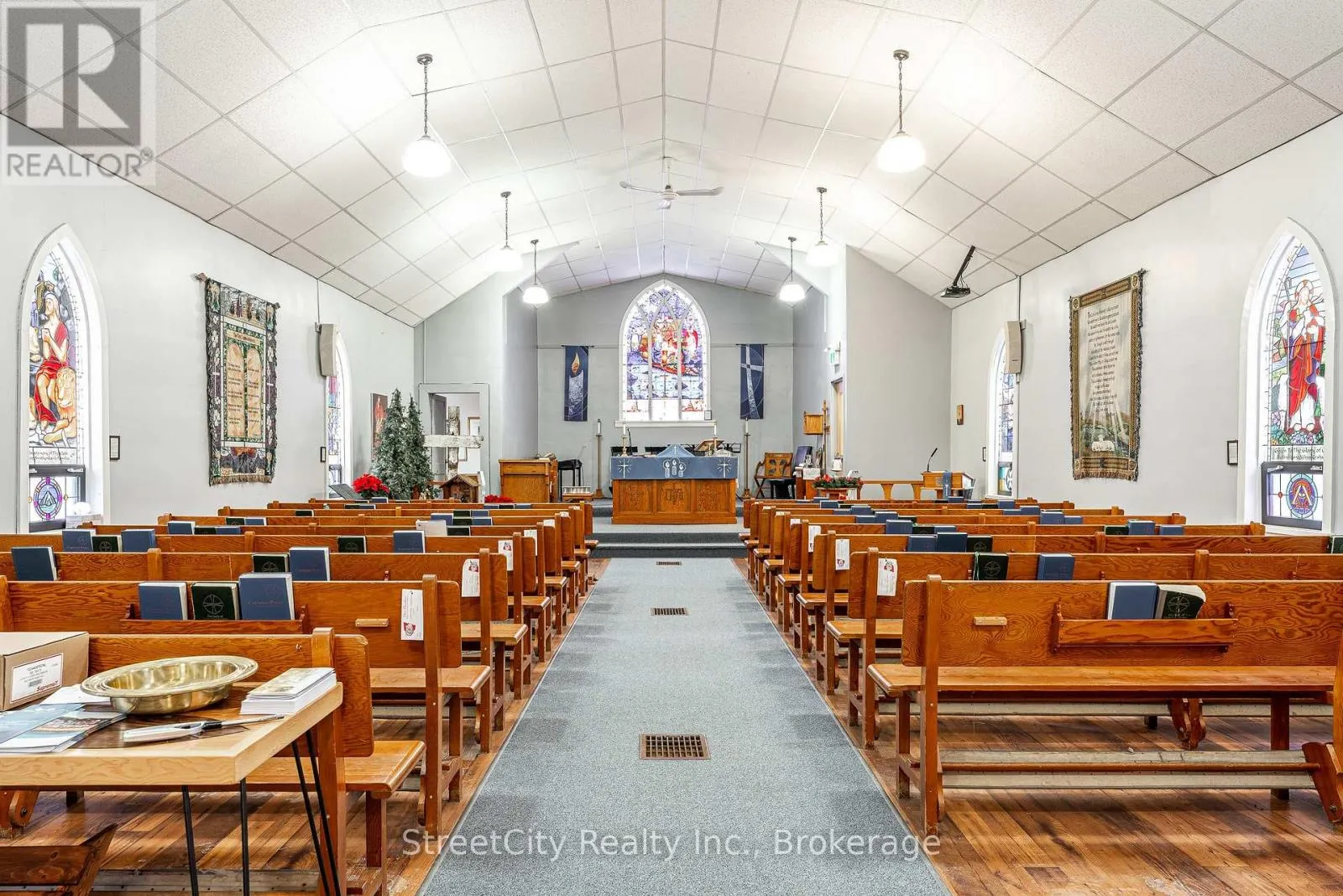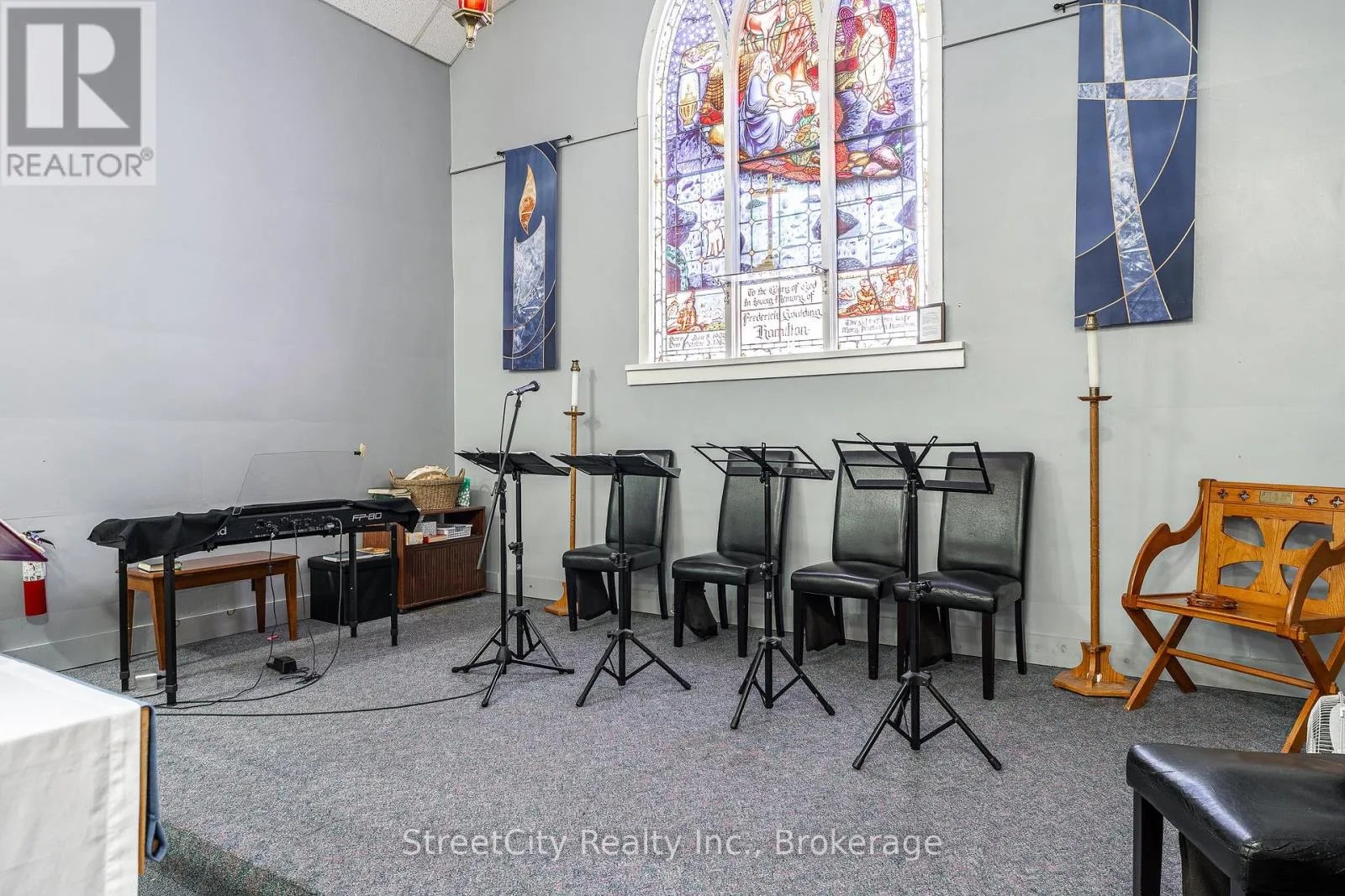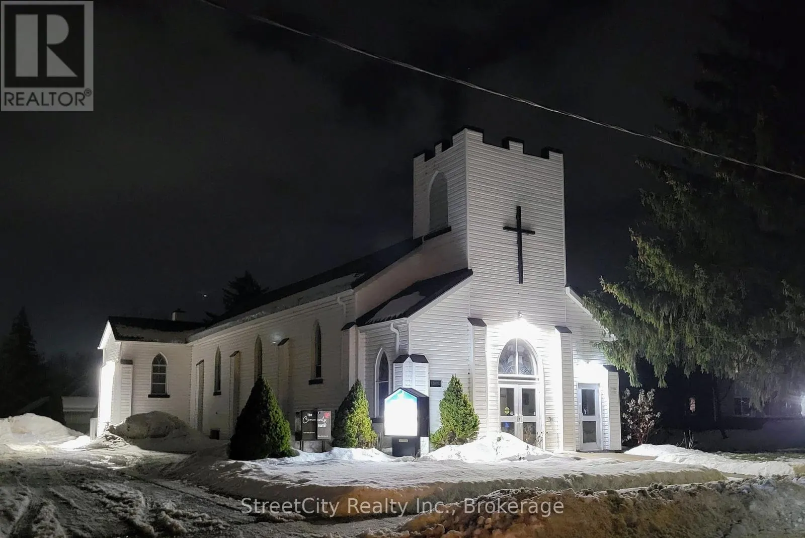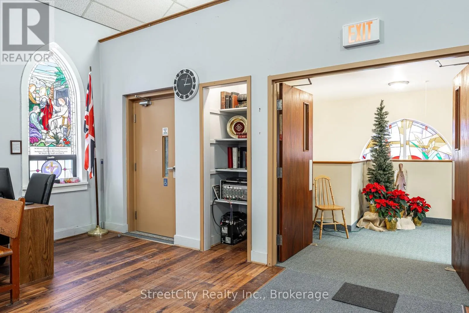 Cross Streets: Brydges & Downie. ** Directions: Home @ Brydges. Anglican Church centrally located just south of downtown in Stratford. Offering flexibility in potential development or repurposing options. Nearly a half acre lot with over 100' frontage on Home St. & 43' frontage on Brydges St. (164' depth off Home St). Zoned R2. More than 4800 sqft of interior space over the 2 levels, featuring large rooms with clear spans and high clearance ceiling heights. The entryway features an elevator that services both the Chapel level up, and the basement level below. Parking for 10-12 cars under current configuration. Potential for severance of a residential building lot off Brydges, leaving a large remaining lot fronting on Home St. where the building currently resides, potential for multi unit residential redevelopment, commercial or institutional application. Buyers to confirm viability of intended use or zoning change. Updated and serviced mechanicals. Call for more information or to schedule a private showing. (id:27476)