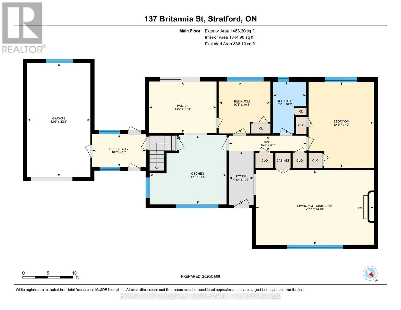 Cross Streets: Churchill Circle & Mercer Street. ** Directions: Hwy 8 W/ON-7 to Stratford. Continue onto Ontario St, right on John St, right on Churchill Circle, then right on Britannia St to 137 Britannia St. This beauty on Britannia Street is set on a rare third of an acre double lot (80.5' x 176.5') in Stratford's desirable Avon Ward. The well-maintained 2+1 bedroom, sprawling mid-century bungalow offers the best of in-town living with space to grow. Just a short walk to downtown shops, restaurants, and the theatre, the property is surrounded by mature trees and established gardens. From the moment you arrive, you're welcomed by a large front porch and a charming breezeway that connects the home to the 1.5-car attached garage, adding both character and everyday convenience. The main floor features original oak hardwood flooring, a bright great room with a gas fireplace and built-in cabinetry, a spacious eat-in kitchen, and a generously sized primary bedroom with two large closets. The sliding doors off the family room lead to a deck overlooking the generous backyard, ideal for relaxing, gardening or future expansion. The lower level includes additional living space plus a self-contained one-bedroom suite with its own kitchenette, living room, gas fireplace, and 4-piece bath - perfect for guests or added flexibility. The brand new asphalt shingles were installed in November 2025 in a handsome charcoal tone, complementing the brick exterior and offering peace of mind for years to come. There is plenty of opportunity to personalize this unique property while honouring its mid-century character. This is a truly special home in a quiet, sought-after neighbourhood. (id:27476)