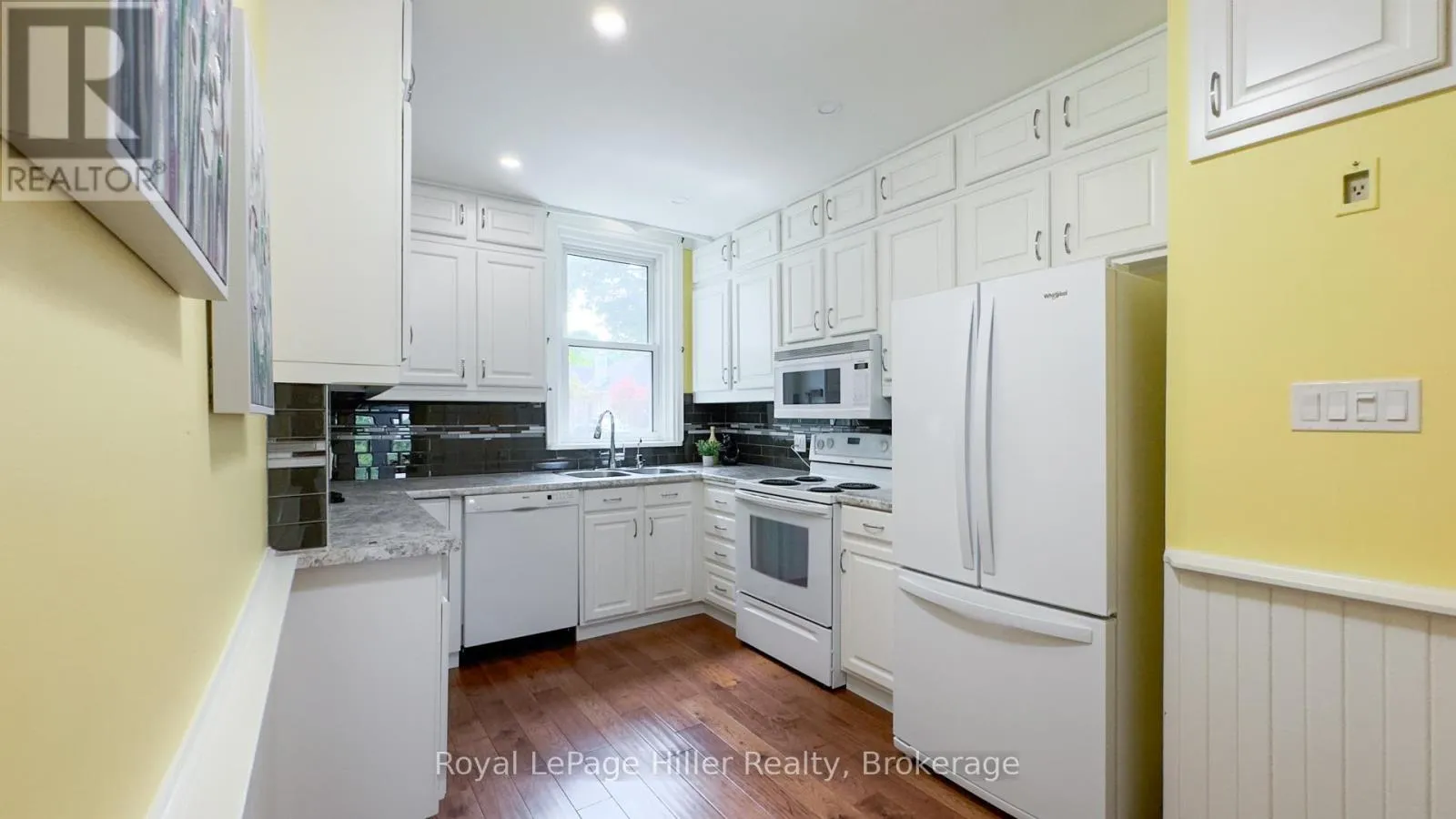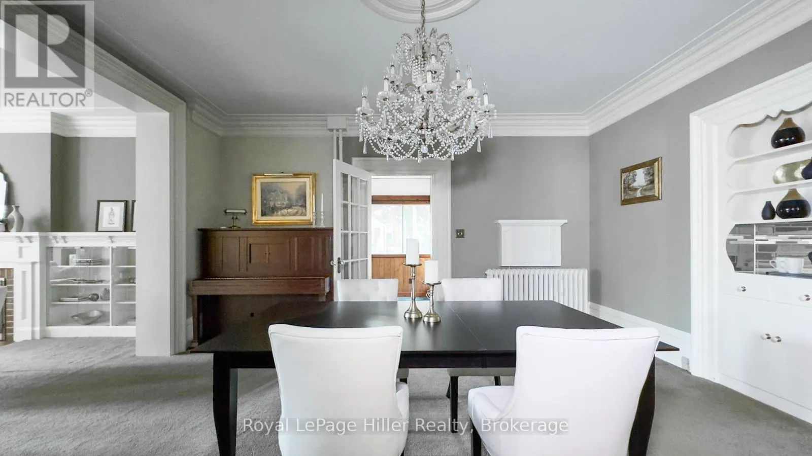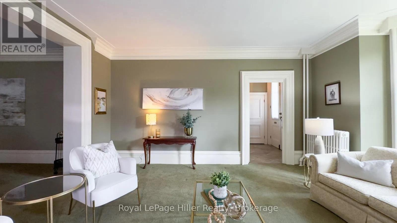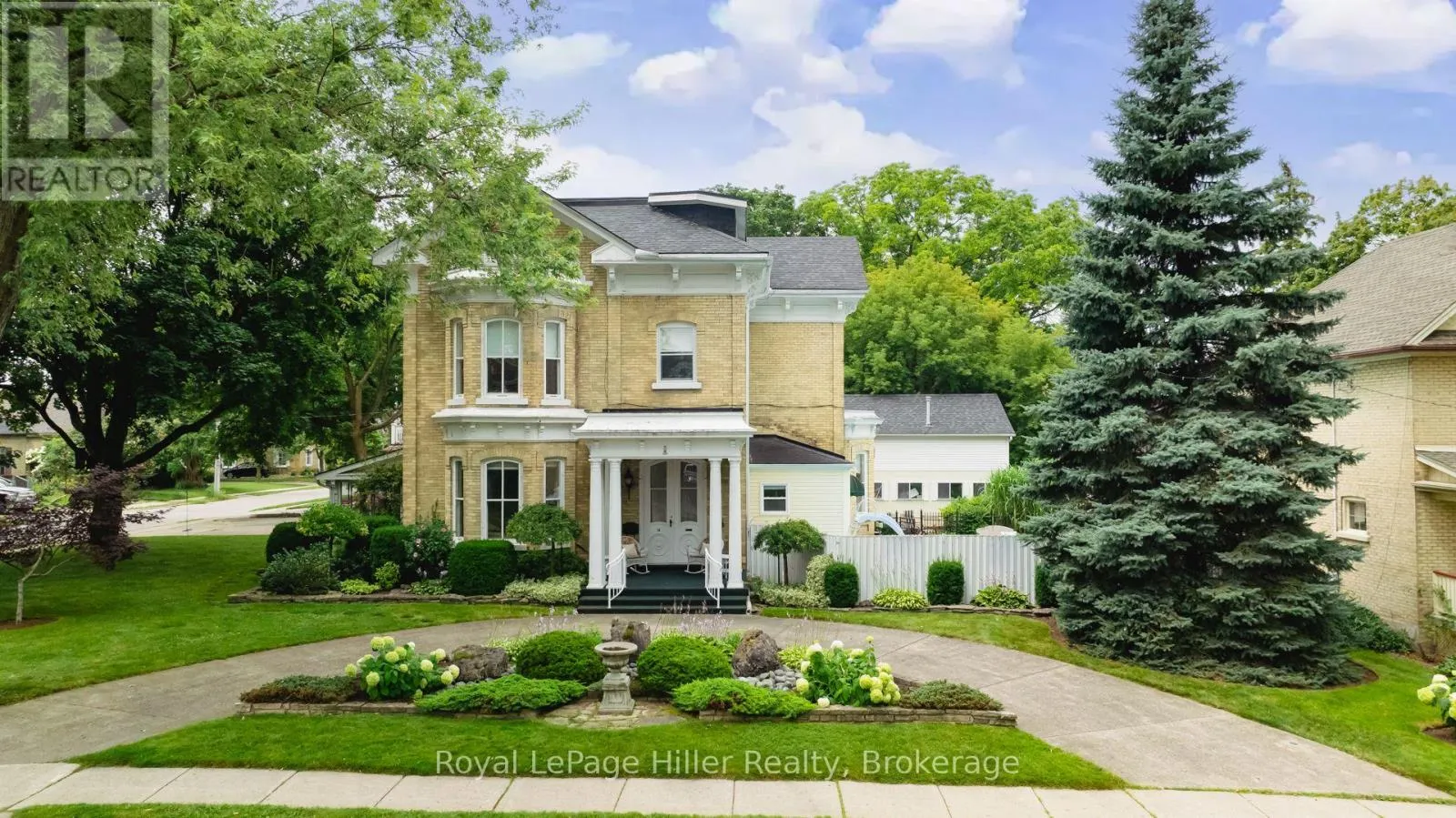 Cross Streets: Ontario Street to Nile Street Property is on the corner of Nile and Cobourg. ** Directions: Corner of Nile St and Cobourg St. A stately Multi-Residential, Multi-Use property in the heart of Stratford, Ontario. Prominently situated at the corner of Nile and Cobourg Streets, this exceptional property offers dual driveway access and sits just steps from Lake Victoria, Stratfords park system, world-renowned Festival Theatres, and a wealth of fine dining and boutique shopping destinations.This versatile property features a grand main-floor residence accessible via the formal circular drive off Nile Street, a charming front porch, or the rear yard entrance off the expansive tenant parking area on Cobourg Street. The 3-bedroom main residence showcases an efficient kitchen with generous storage and prep space, two ensuite bathrooms, a 4-piece bath, and a sun-filled front sitting room complete with a gas fireplace and mini bar ideal for entertaining. The elegant principal dining and living areas are adorned with gorgeous original trim and moldings, creating the perfect setting for gatherings and special occasions.An additional casual dining space opens to a tranquil backyard garden and pool patio retreat. The basement level includes a two-piece bathroom, laundry area, spacious recreation zone, and well-organized mechanical systems offering endless customization potential. Located on the second and third floors, separate from the main home, are three generously sized self-contained apartments, each with a private entrance providing strong income all rented to the Stratford Festival. Outdoor amenities include a private in-ground pool, beautifully landscaped garden areas, and a detached four-car garage with a full second level and separate access perfect for future residential development, a studio, office, or workshop. Whether you're seeking an elegant personal residence with income support or a lucrative investment opportunity in one of Ontarios most charming cultural cities, this property offers endless possibilities. (id:27476)