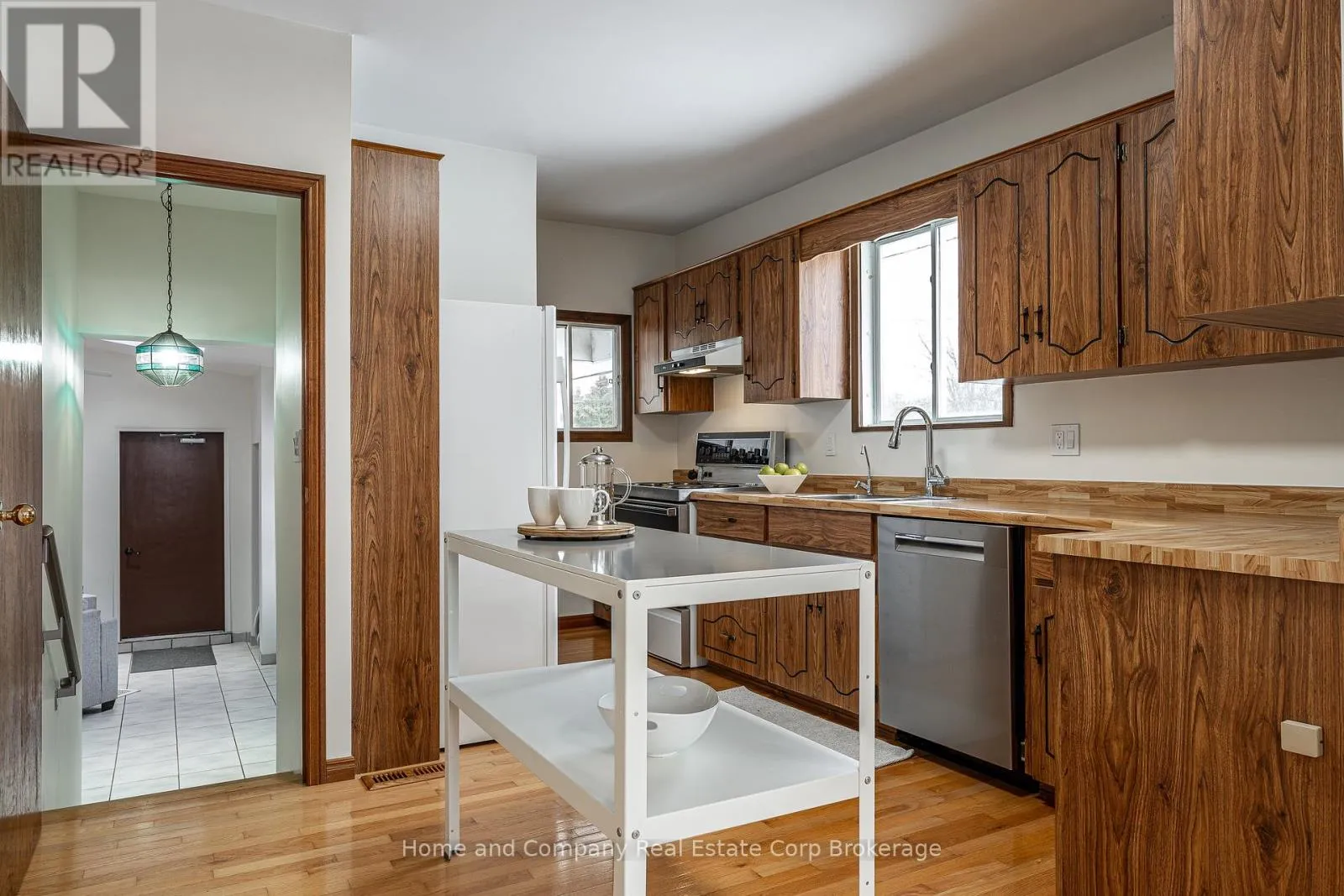 Cross Streets: Romeo and Mornington. ** Directions: Vivan Line 37 between Romeo and Mornington Streets. This well-maintained four-bedroom, two-bath bungalow offers a comfortable blend of space, practicality, and lifestyle, set on a generous 0.44-acre lot at the edge of beautiful Stratford is being offered for the first time. Inside, you'll find updated windows that bring in abundant natural light, and well-cared-for hardwood floors that add warmth and character. With main floor laundry and a primary suite with walk-in closet and ensuite along with a family room addition offering a soaring ceiling with skylights and a welcoming gas fireplace with stone surround, your family and guests will enjoy making memories here. A durable steel roof provides long-term peace of mind, while outside, the property truly shines with an exceptional six-vehicle garage (39' x 30.11') and an oversized driveway offering parking for six more-ideal for hobbyists, multi-vehicle households, or those who love to entertain. With room to breathe and easy access to city amenities, this property offers a relaxed setting without sacrificing convenience. (id:27476)